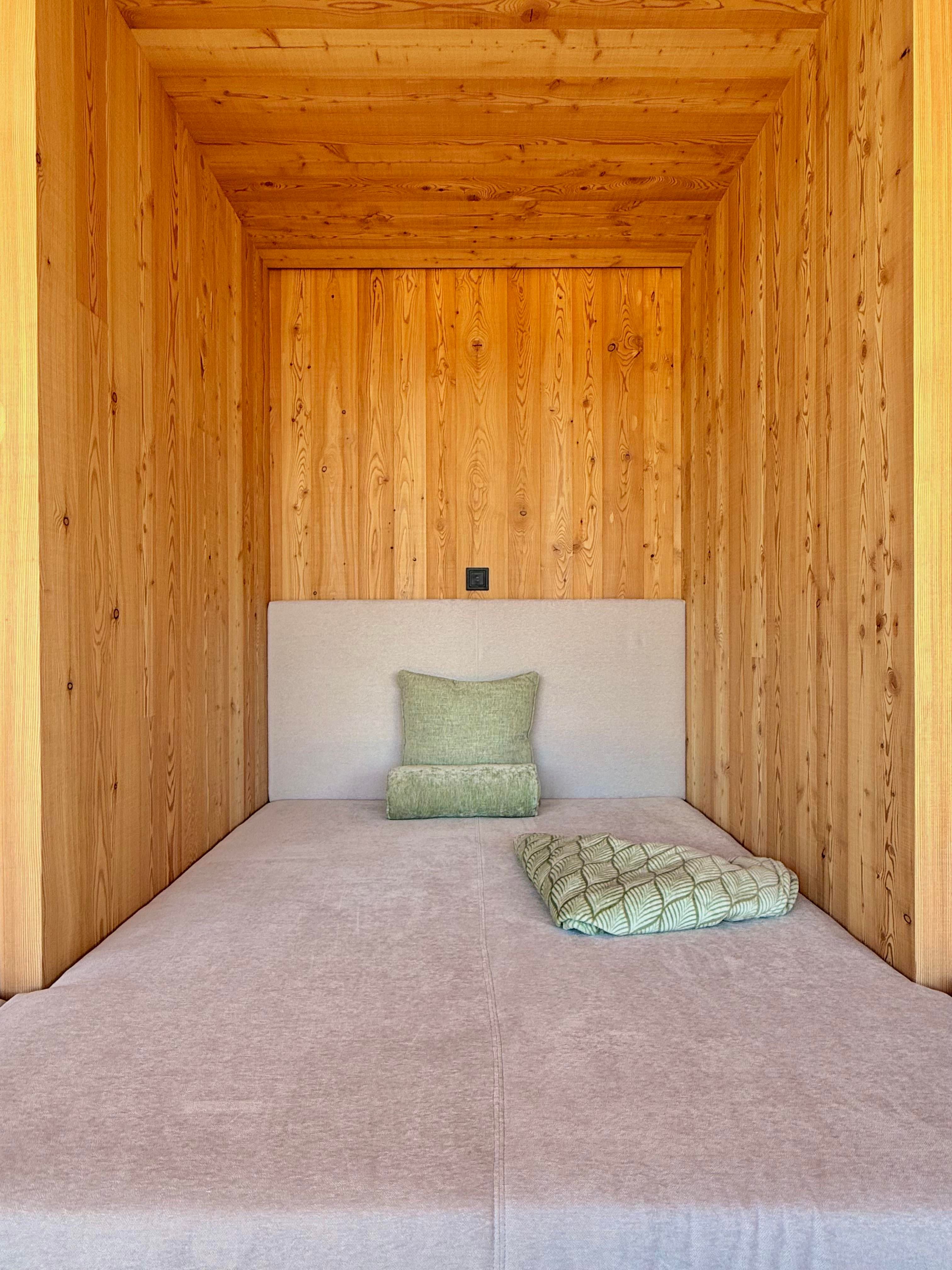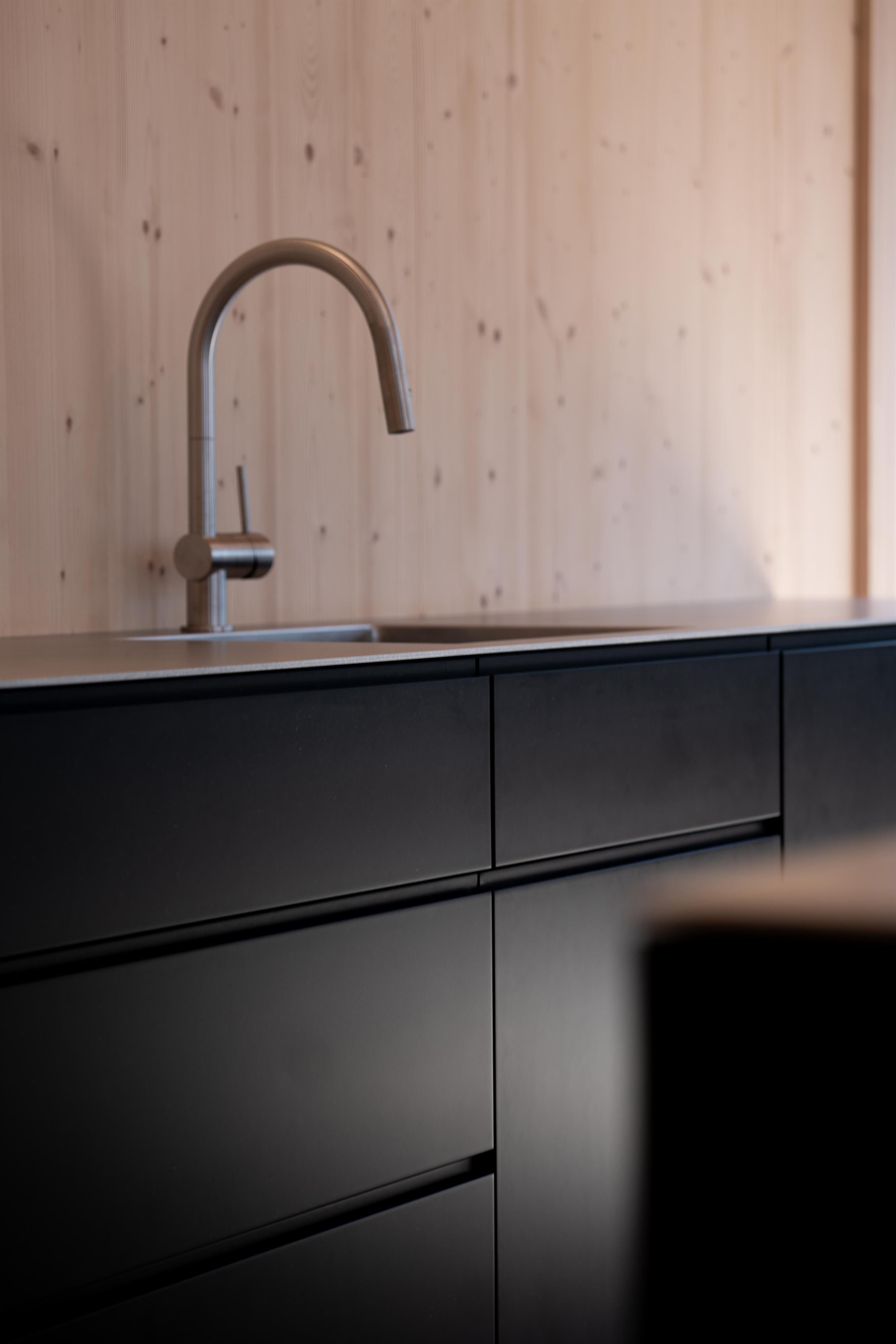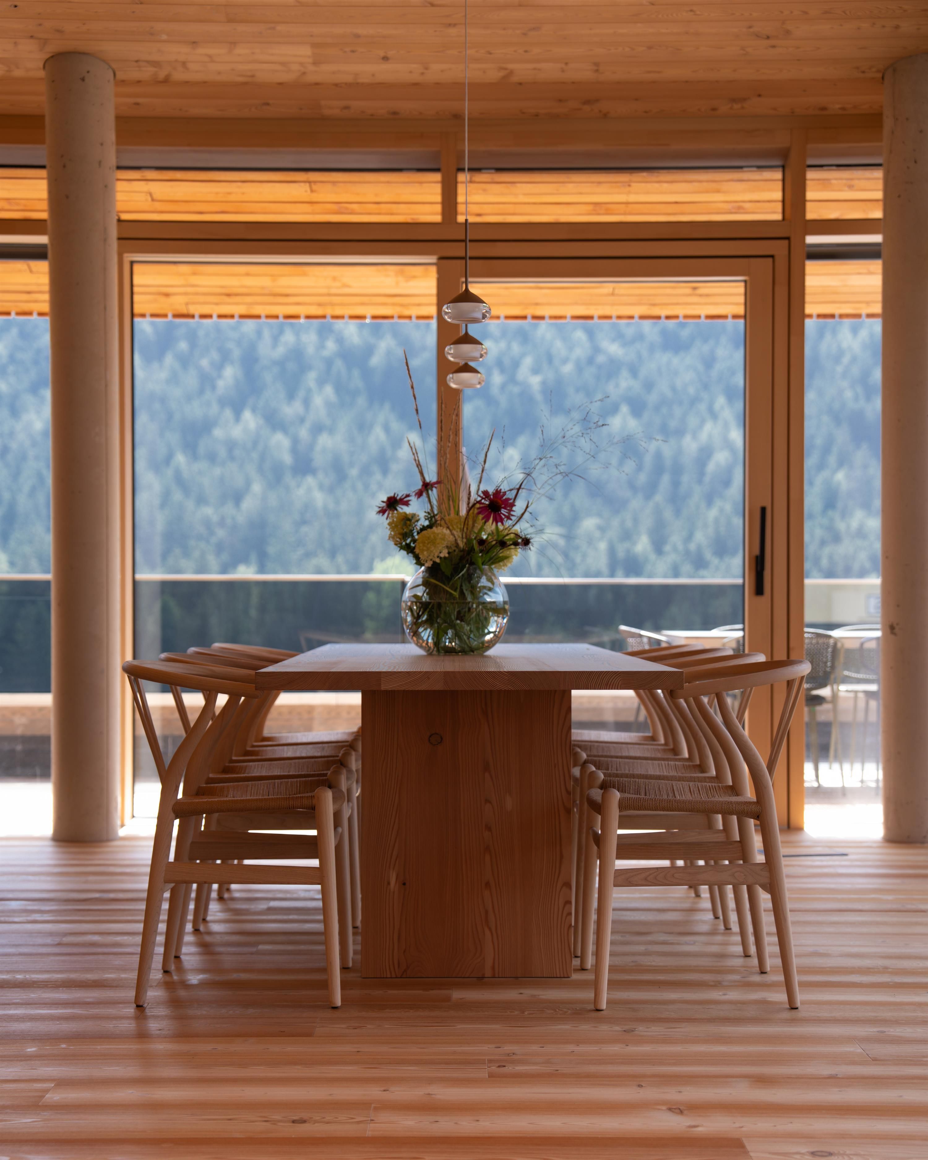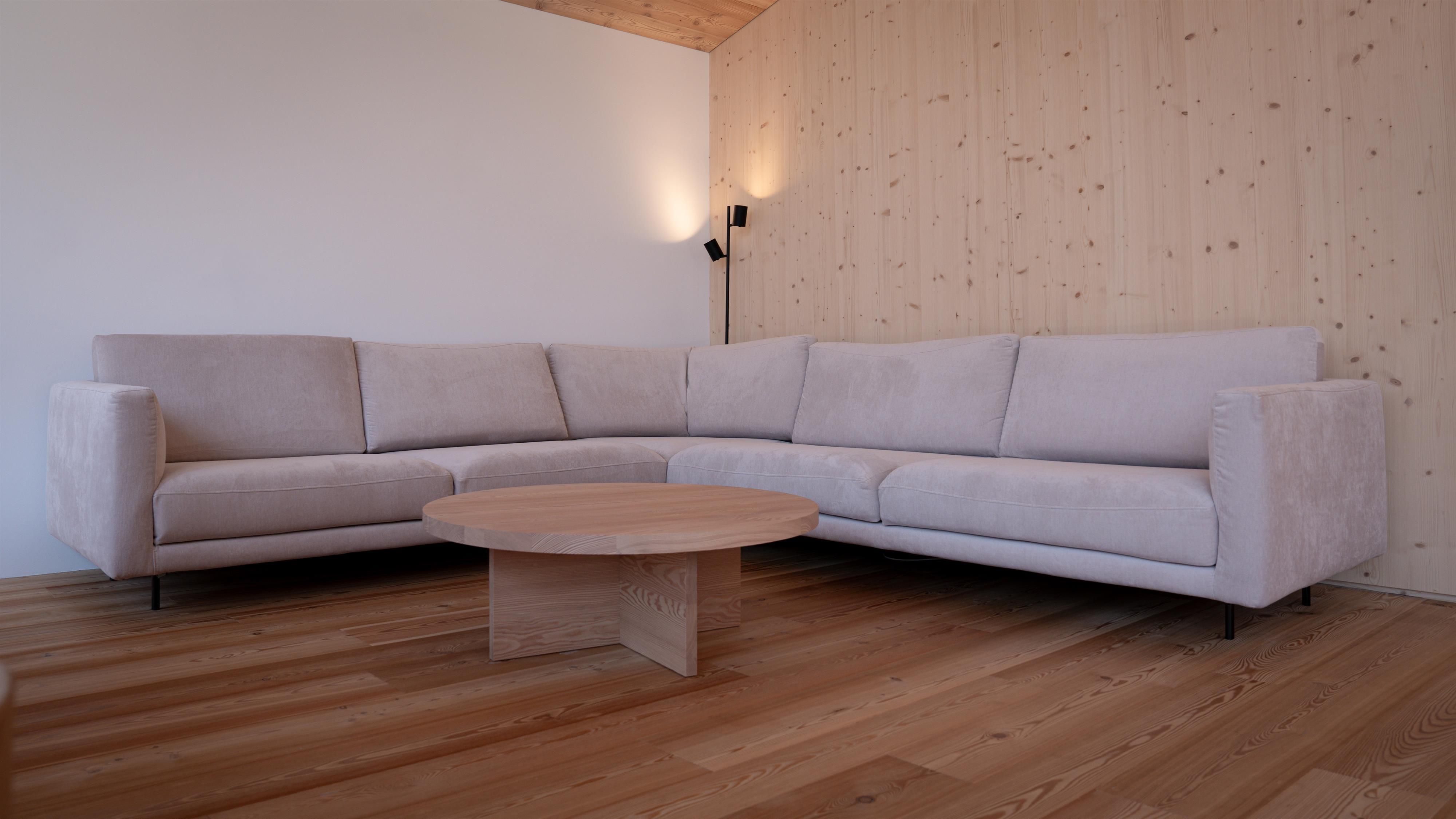 Ein Haus, gebaut aus Lärche aus dem familieneigenen Wald, angefangen mit der Fassade bis hin zu den Möbeln.