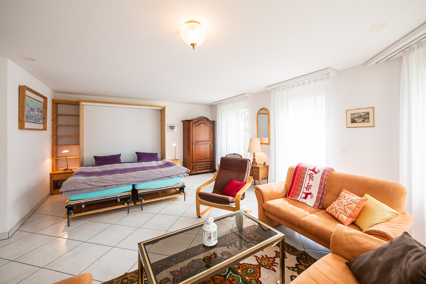 1.5-Zimmerwohnung 001, Erdgeschoss (bitte mit Lift ins Untergeschoss fahren), für 2 Personen, ca. 42 m²