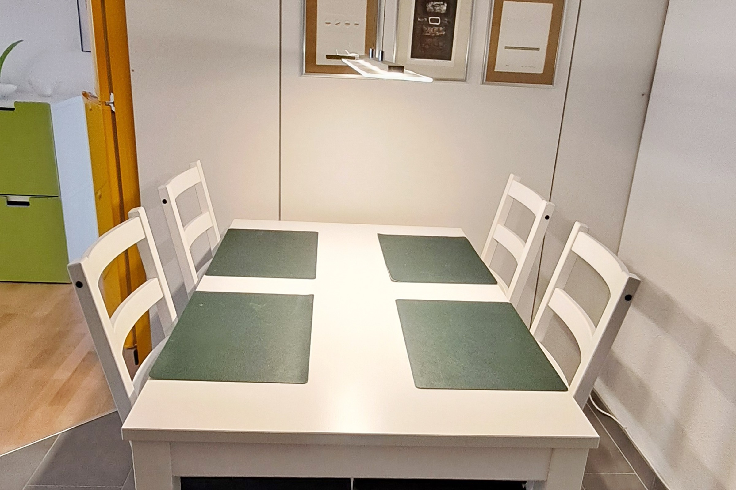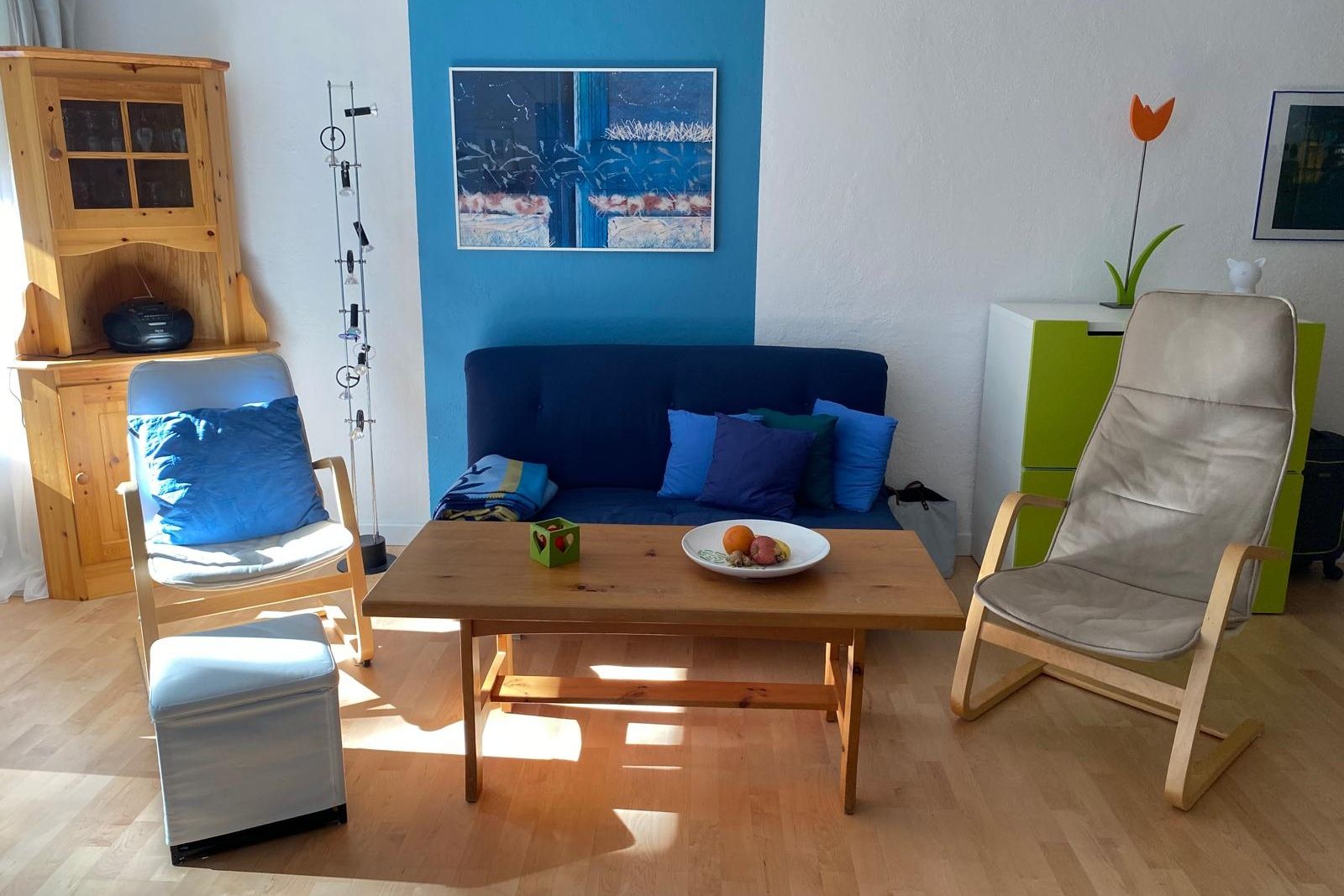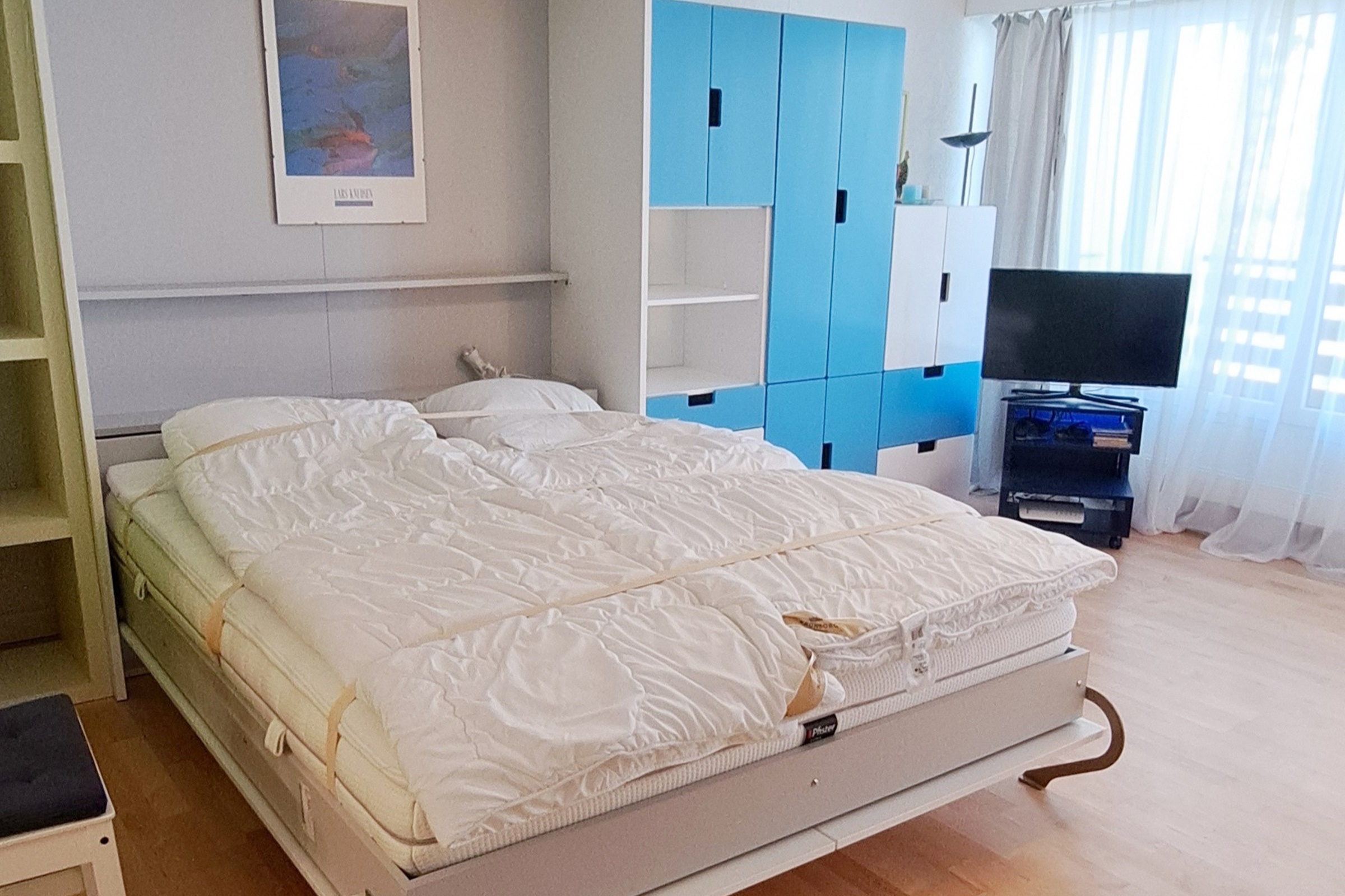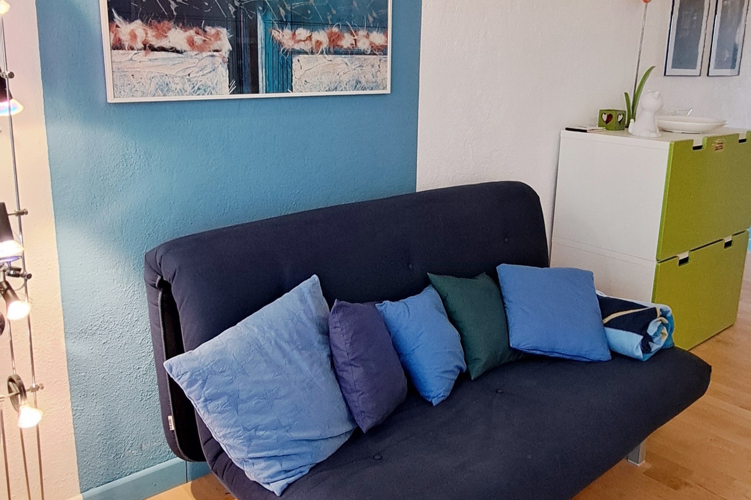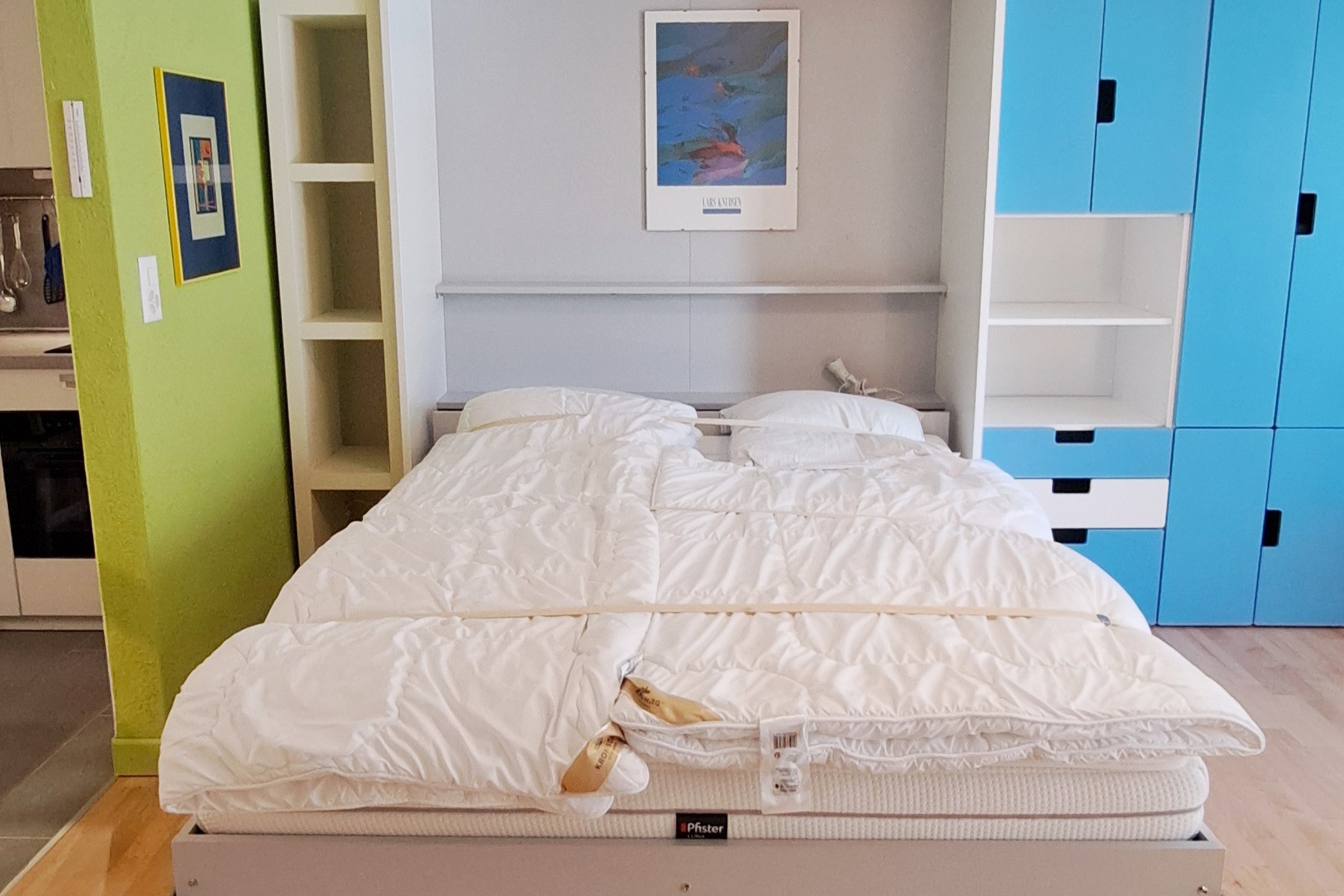 Die moderne Ferienwohnung verfügt überein Wohn-, Ess- und Schlafbereich eine praktische und voll ausgestattete Kücheein gemütlicher Wohnbereich kombiniert mit Schrankbett und Sofa (Schlaf-Möglichkeit für 1 Person)ein Badezimmer mit Dusche und Badewanneein Garagenplatz