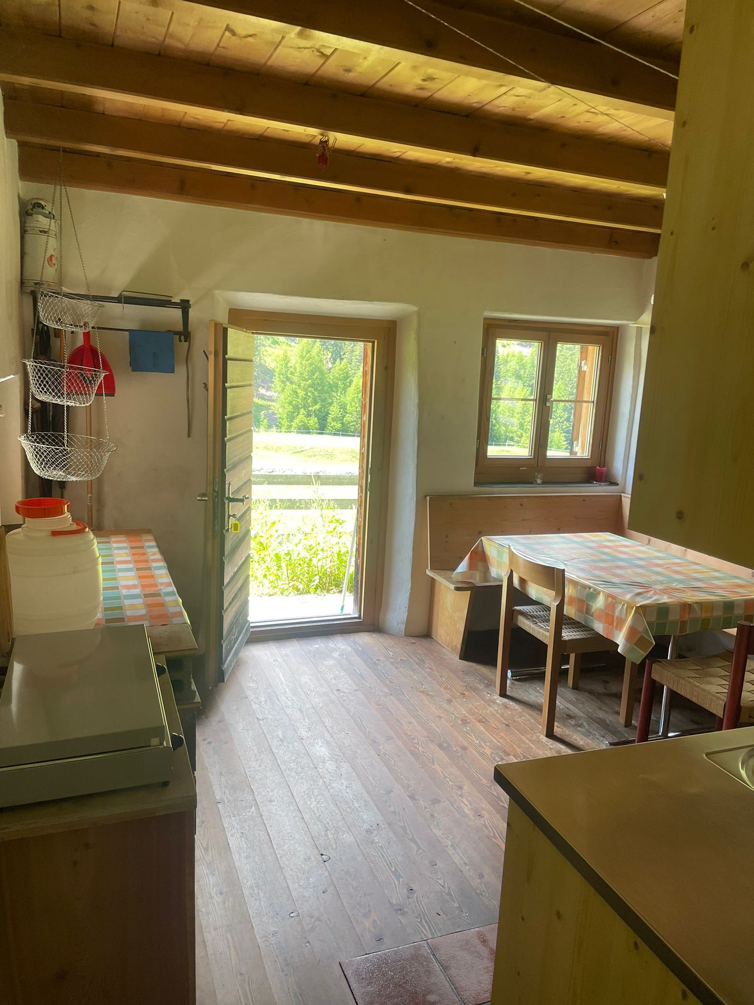 Die Hütte Val Vau (Pra da Vau) liegt auf rd. 1779 m.ü.m. im gleichnamigen Seitental des Val Müstair in Graubünden am Eingang zur Val Mora. Die Hütte ist ein guter Ausgangspunkt für Wanderungen, etwa zum Lai da Rims oder ins Val Mora und für Biketouren. Die Hütte bietet eine einfache Infrastruktur mit 4 Schlafplätzen und einer Kochgelegenheit. Sie liegt in ruhiger, abgeschiedener Lage und ist zu Fuss, mit dem Fahrrad, mit dem Auto oder mit dem Postauto erreichbar. Ideal für Naturfreunde, Bergwanderer und Biker, die Abgeschiedenheit und Ursprünglichkeit schätzen.Einrichtung: Holzofen, Holzherd, Gasherd, Tisch inkl. Eckbank und Stühle, Geschirr und div. Pfannen, zwei Kajütenbetten. Die Betten verfügen über Spannbetttücher sowie Kissen mit Bezug. Bitte bringen Sie Ihren Hüttenschlafsack mit.