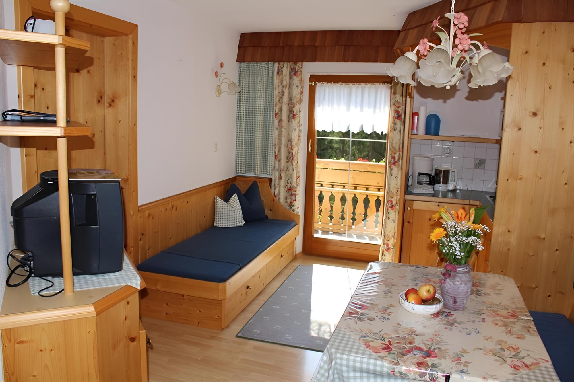 Verbringen Sie Ihren Urlaub in unserem mit hellem Holz, liebevoll eingerichteten Appartement. Auf Anfrage und Aufpreis mit 2 DZ jew. mit DU-WC buchbar, Balkon, Sat.TV, Zirbenholzbett, Wohnraum mit Liege, Sat.Tv, Essecke, Küchenblock, Mikrowelle, Geschirr, Herd, Kühlschrank, Filter Kaffeemaschine, Toaster, Teekocher. Keine Teppichböden. Brötchenservice, Sommer- Gratis Eintritt im Erlebnisbad, Fahrräder, WLAN. Im Winter Loipenbenützung inklusive und ganzjährig kostenlose Busfahrt in der Region.