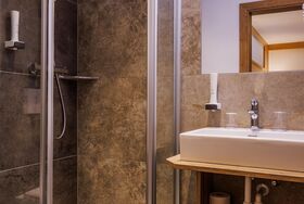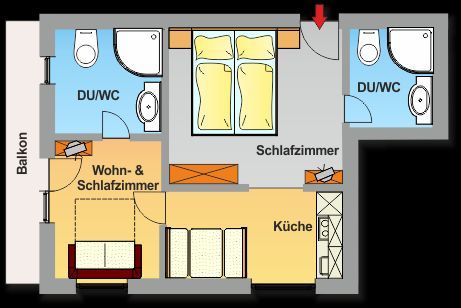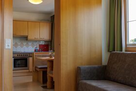 Ankommen und Wohlfühlen.Dieses voll ausgestattete Familienzimmer bzw. Appartement besteht aus einem Schlaf-, einem Wohnschlafzimmer und einer Küche mit Esstisch. Der nach Südwesten ausgerichtete Balkon erlaubt Sommer wie Winter die Sonne zu genießen. Zwei getrennte Dusch/WC-Einheiten ermöglichen 2-4 Personen ein gemeinsames Wohnen ohne Einschränkungen.