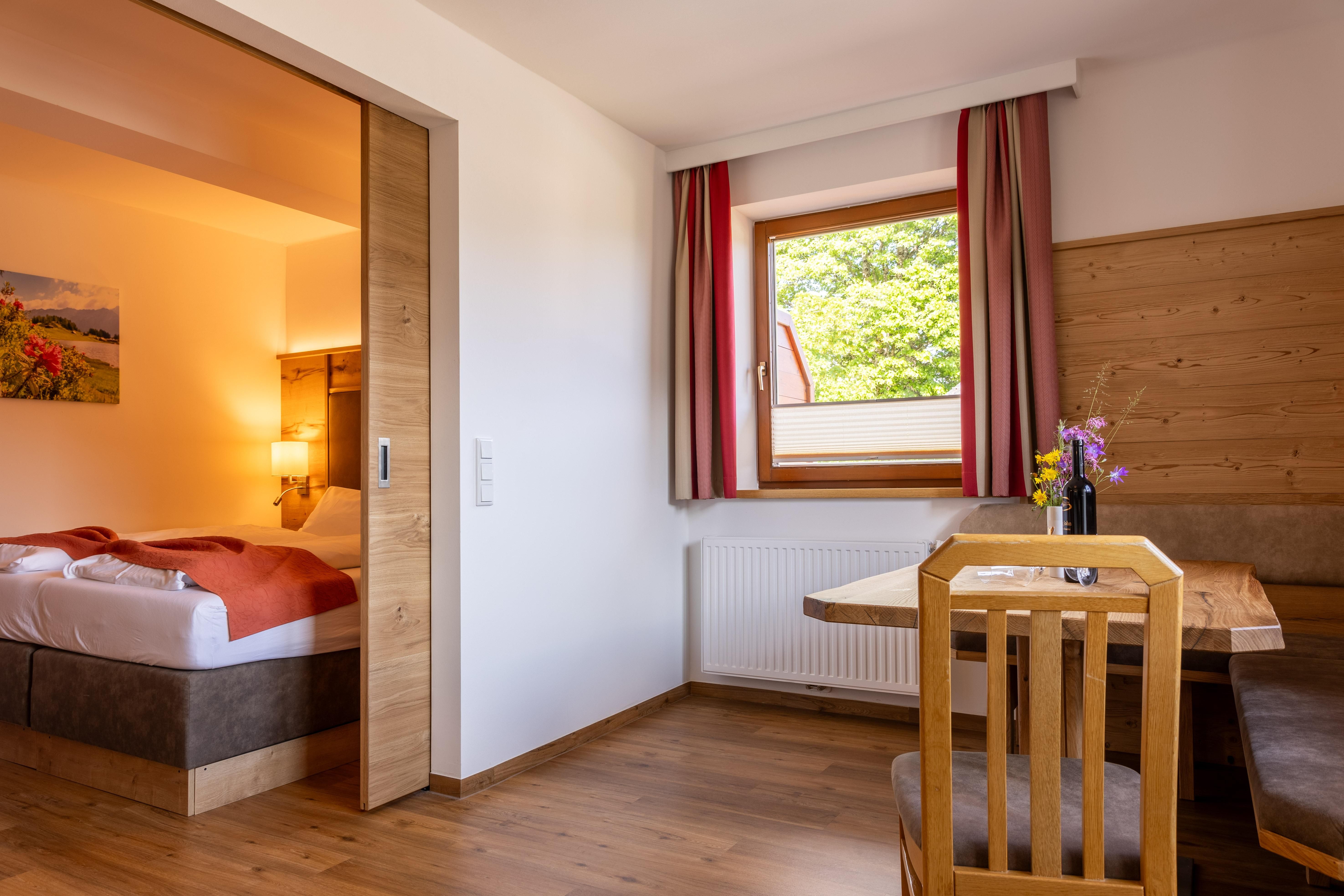 In unserem Hotel bieten wir Ihnen modern eingerichtete Doppel-, Dreibettzimmer und Ferienwohnungen bzw. Appartements. Alle Zimmer verfügen über geräumige Badezimmer, einem eigenen Balkon mit Bergblick, kostenloses WLAN, Flachbild -TV, Zimmersafe, Radio und einen gemütlichem Sitzbereich.