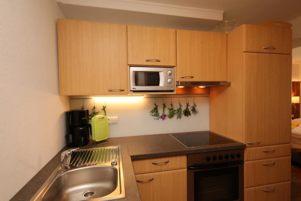 Ankommen und Wohlfühlen. Dieses Neu renovierte und voll ausgestattete Familienzimmer bzw. Appartement im Erdgeschoss besteht aus einem Wohnschlafzimmer mit integrierter Küche mit Esstisch, Badezimmer und Toilette, und ermöglicht ein komfortables Wohnen für 2-4 Personen.
