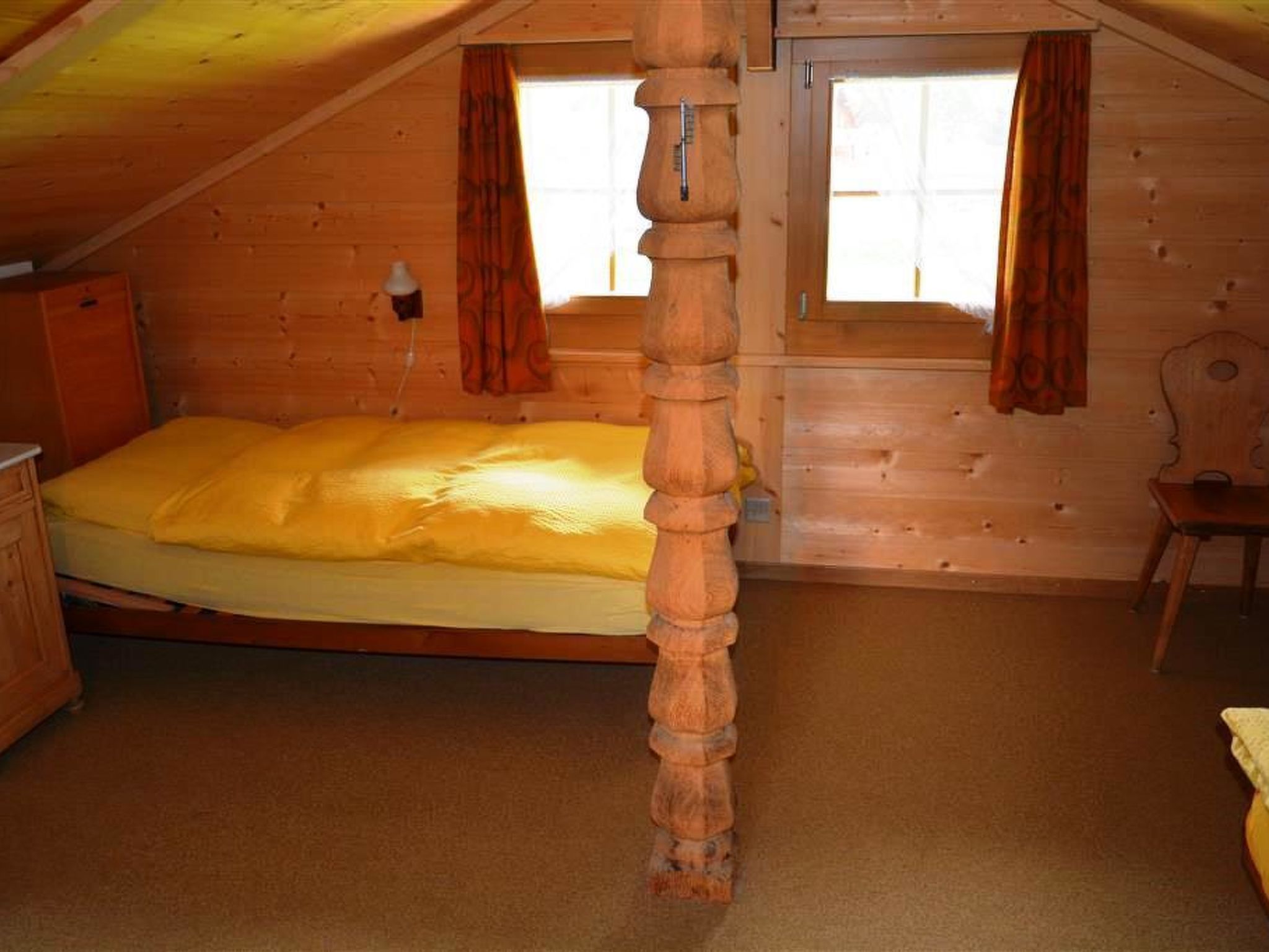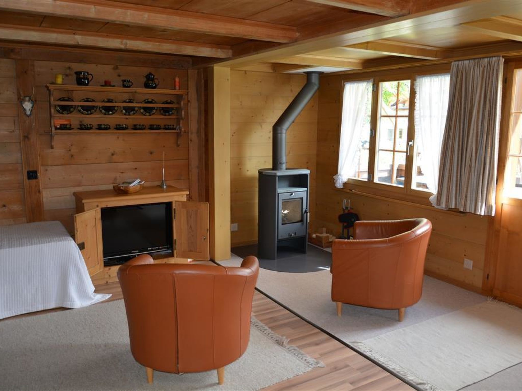 54 m2. Weitere Angaben des Anbieters: Kleines gemütliches Chalet (54m2, Baujahr 1971) mit 2 Zimmern. Balkon, mit Tisch und Stühlen. Wunderschöne Aussicht auf die umliegende Berglandschaft. Idealer Ausgangspunkt für Wanderungen im Sommer und Winter. Privatparkplatz auf Privatweg vorhanden. Der Fussweg darf nur im Notfall mit dem Auto befahren werden. Fussweg zum Chalet: 80 m Wohnzimmer mit Schwedenofen, gemütlicher Sitz- und Essecke. Offene Küche mit Backofen und einem Kochherd mit 3 Kochplatten. Der Kühlschrank mit Gefrierfach befindet sich im Eingangsbereich. Fondue- und Raclette-Set, Kapsel-Kaffeemaschine (Nespresso), Radio, TV (nur 5 Sender), Telefon. 1 kleines Badezimmer mit Dusche/WC. 1 Schlafzimmer mit zwei Einzelbetten im Wohnzimmer (2x90x195cm) integriert. Eine steilere Treppe führt in die obere Etage zu 1 Schlafzimmer mit 4 Einzelbetten (je 90x195cm). INKLUSIVE: Heizung, Elektrizität, Wasser, Parkplatz, Cheminée-Holz, Küchen-, Badezimmer- und Bettwäsche (Erstausstattung) sowie Endreinigung und Kurtaxen. EXKLUSIVE: Telefongesprächstaxen. Kapseln für Kaffeemaschine (Nespresso). ***Haustiere nicht erlaubt***.
