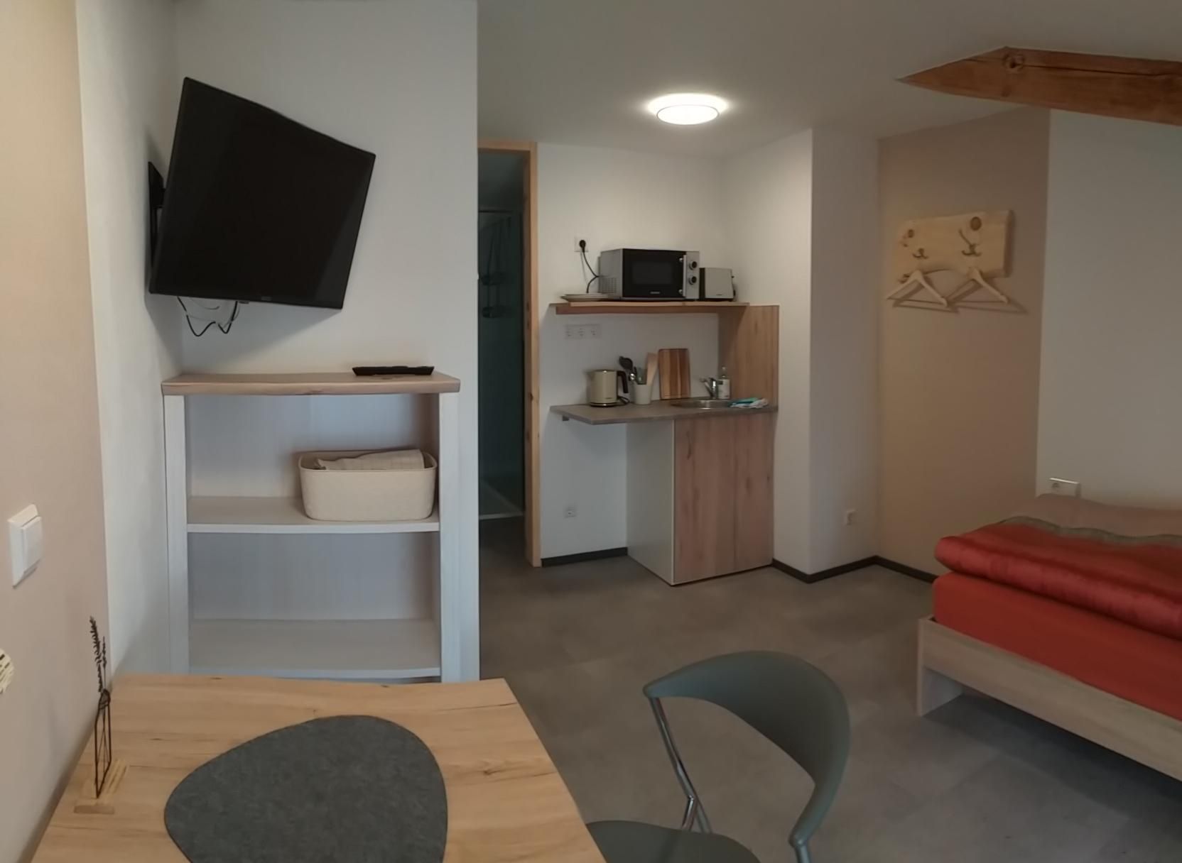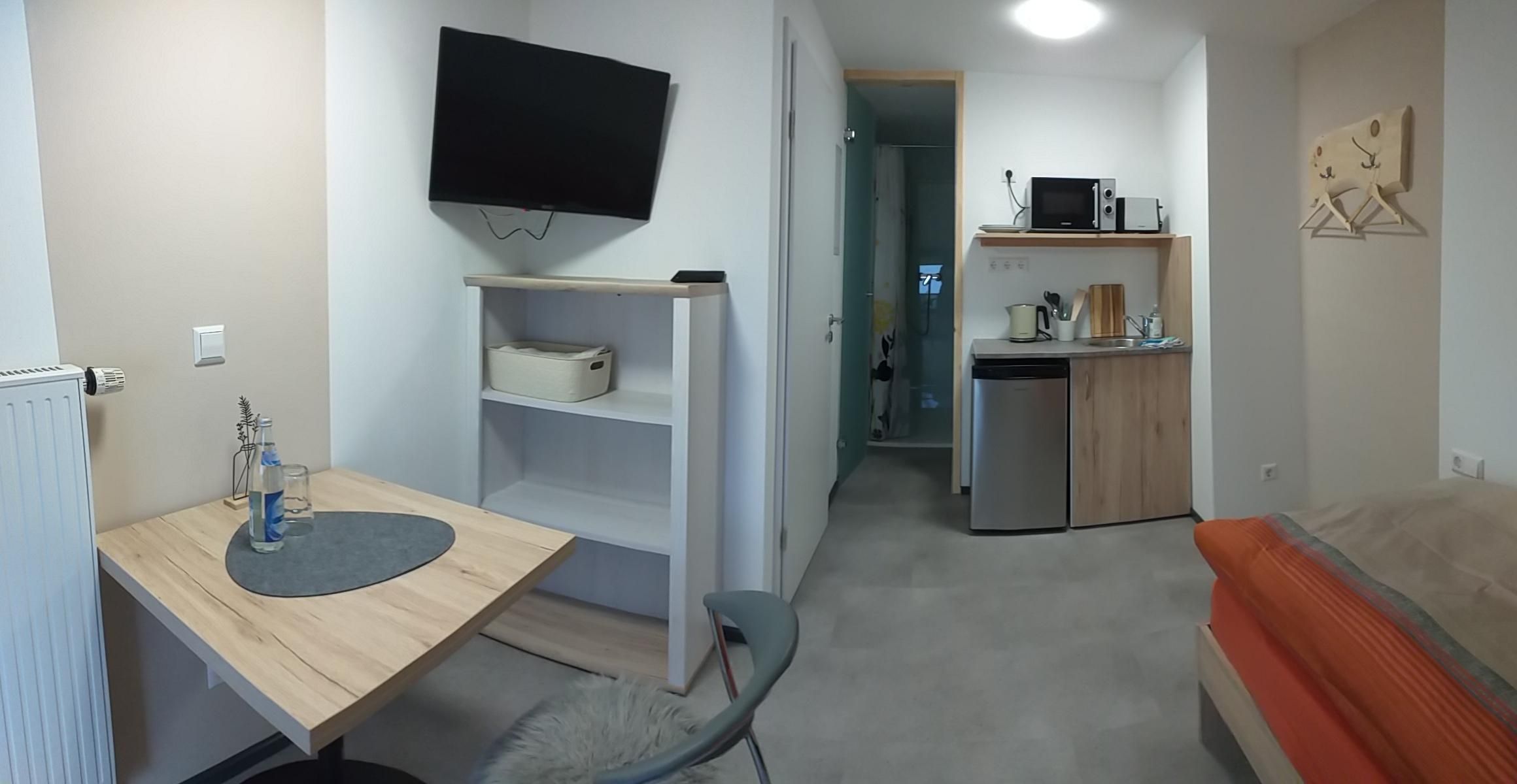Entdecken Sie unsere modernen Einzelzimmer, die ab 2025 frisch renoviert und hochwertig ausgestattet zur Verfügung stehen. Jedes Zimmer bietet ein eigenes Bad mit Dusche und WC, Flachbild-TV, kostenfreies WLAN sowie eine praktische Küchenzeile mit Wasserkocher, Mikrowelle, Toaster und Kühlschrank – ideal für kurze oder längere Aufenthalte.