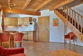 Die Ferienwohnung geht über 2 Etagen, mit 2 Schlafzimmer, einem Wohnbereich mit einer komplett ausgestatteten Küche.