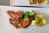 Morgens können Sie ein reichhaltiges Frühstücksbuffet mit zahlreichen regionalen Produkten von Bauernhöfen in der Nähe, selbstgebackenes Brot und hausgemachte Marmeladen genießen. Die ¾ Pension für den Voll-Genießer Gast beinhaltet ein a`la carte Menü 4 gängig am Abend und man holt sich am Nachmittag einen Kaffee mit Kuchen, eine Suppe oder einen Salat aus der Salatbar.