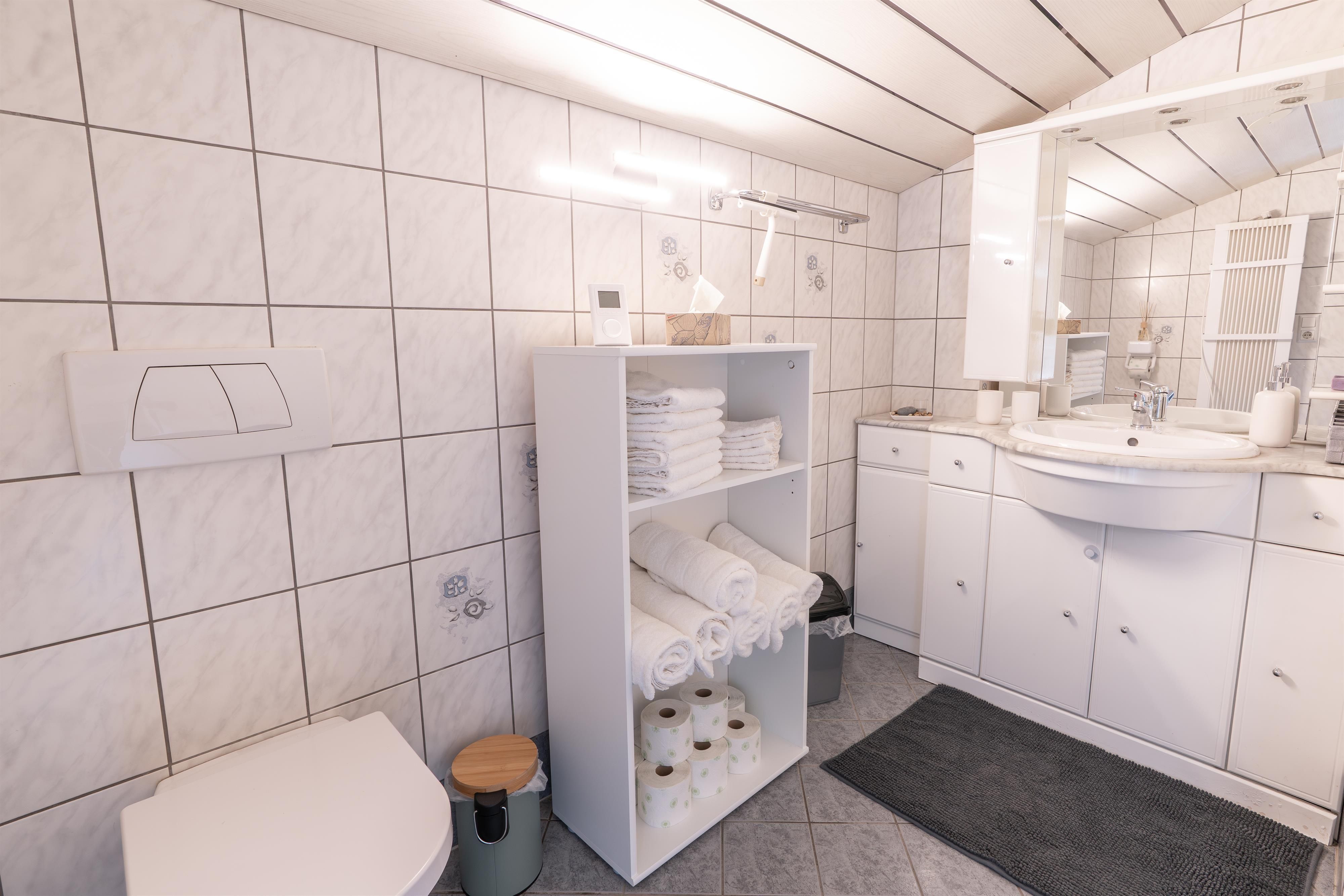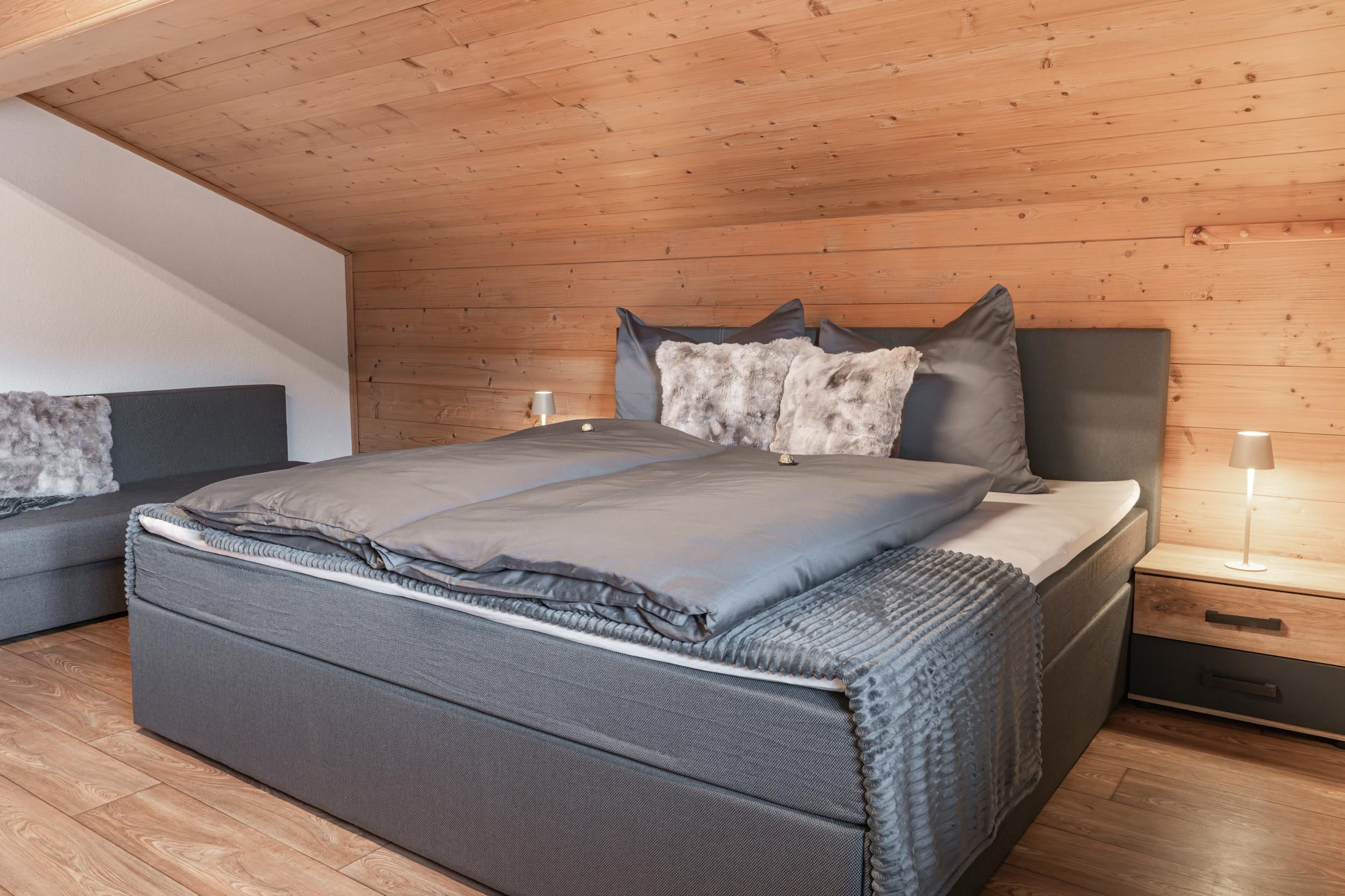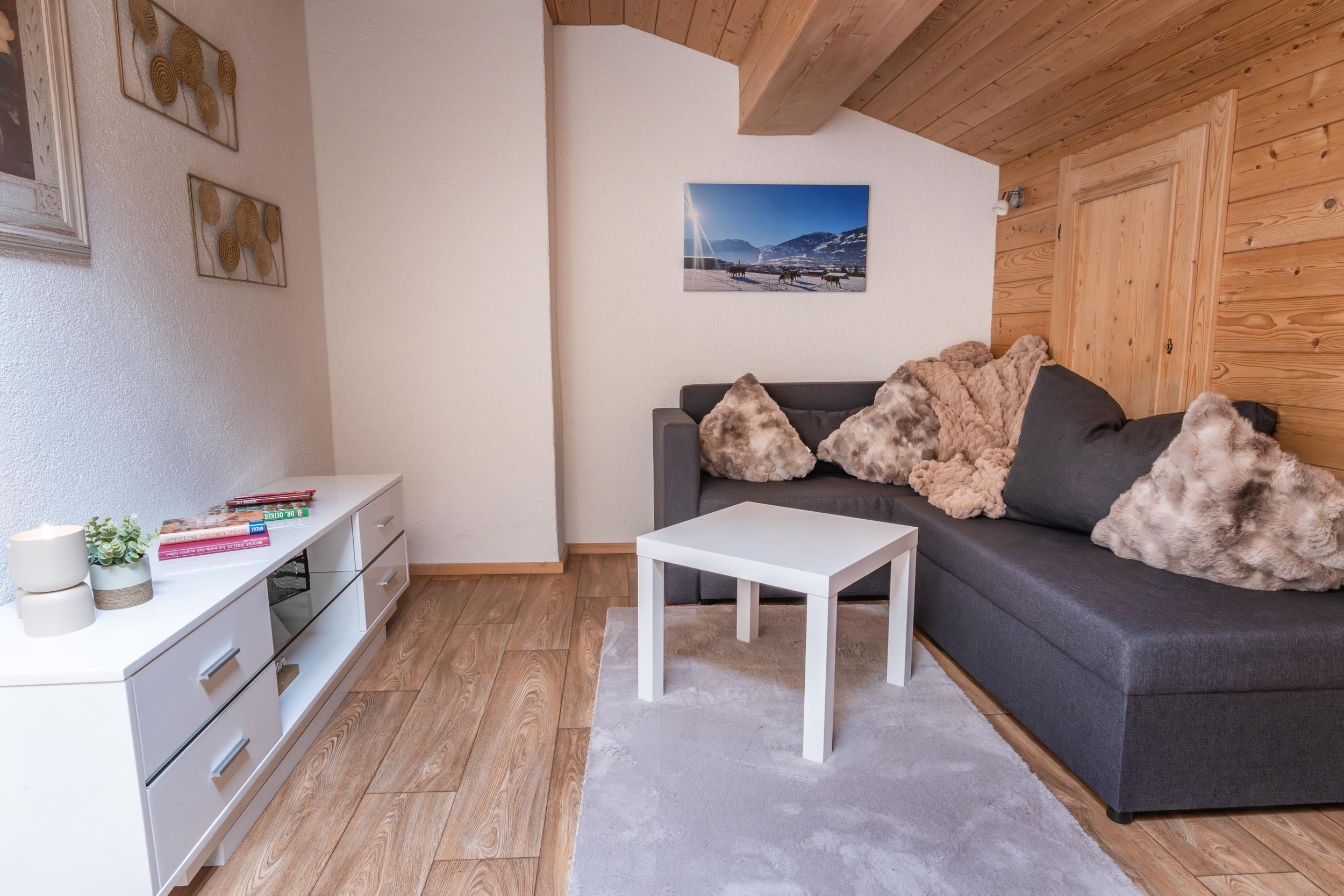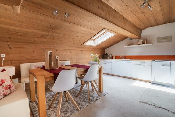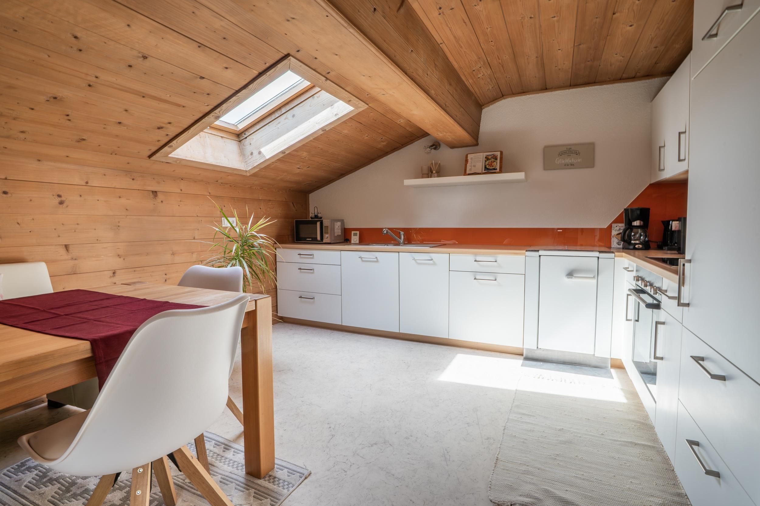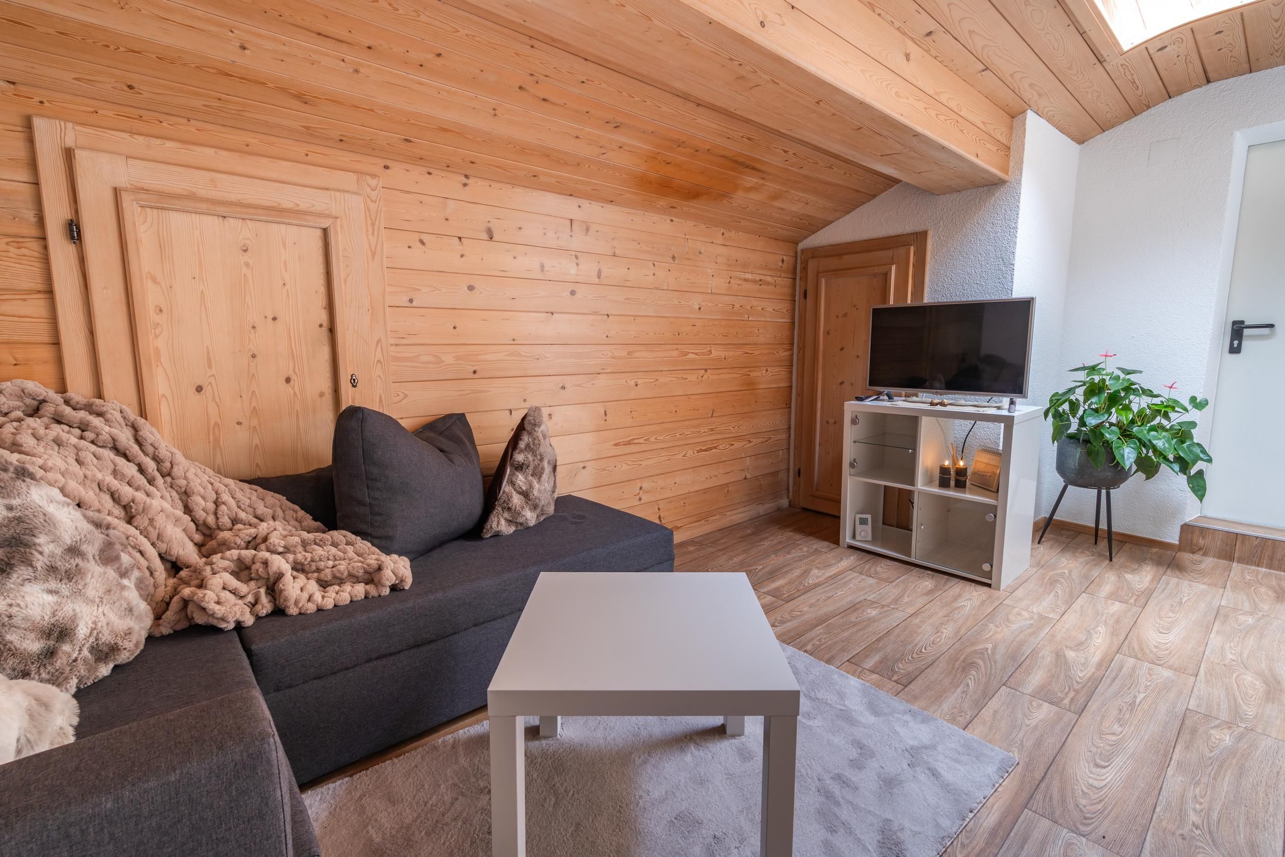 Unsere gemütliche Ferienwohnung im 2. Stock bietet viel Platz für gemeinsame Zeit – mit zwei Schlafzimmern, je einem Doppelbett, und einer bequemen Schlafcouch im Wohnzimmer finden hier bis zu sechs Personen bequem Platz. Die voll ausgestattete Küche lädt zum gemeinsamen Kochen ein, und vom Balkon genießt man den Blick aufs Landleben direkt am Bauernhof. Ideal für alle, die Natur und Ruhe lieben.