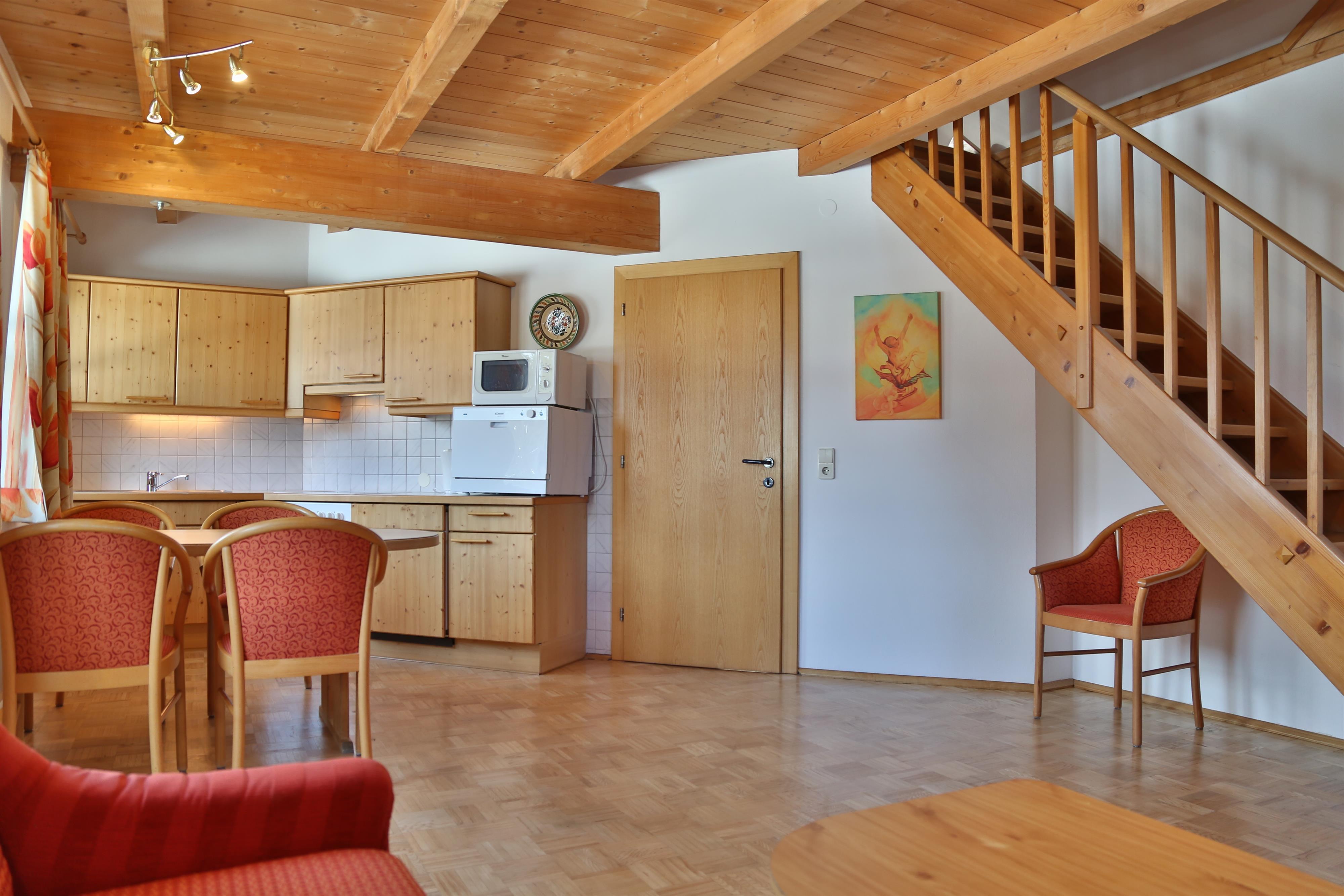 Die Ferienwohnung geht über 2 Etagen, mit 2 Schlafzimmer, einem Wohnbereich mit einer komplett ausgestatteten Küche.