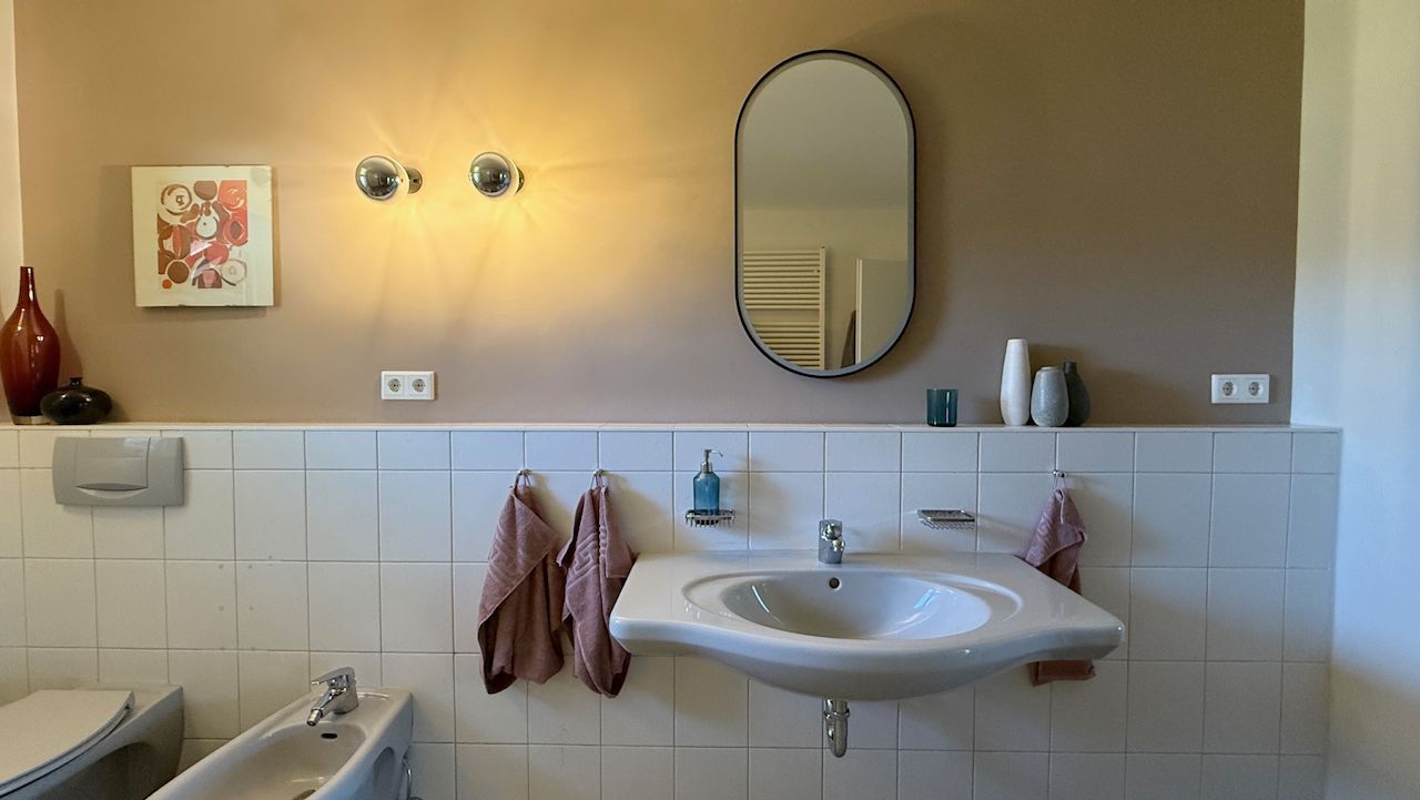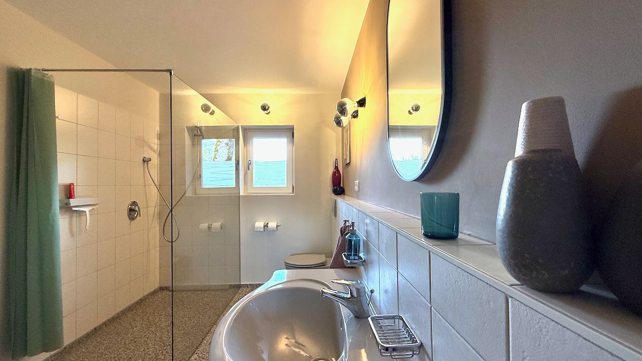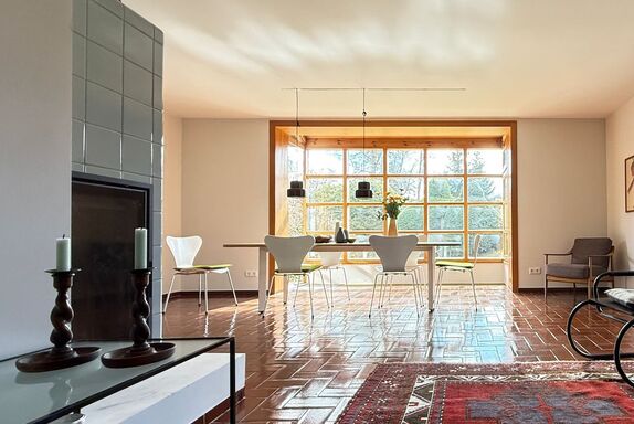 Das Mid-Century-Haus wurde 2024 behutsam von mir hochwertig saniert und umgestaltet. Es liegt im sonnigen oberen Ortsteil, 5 Min. vom Zentrum entfernt. Vermietet wird das ca. 100 qm große Erdgeschoss. Das helle und großzügige Wohnzimmer mit dem neuen Kachelofen und der voll ausgestatteten offenen Küche bildet das Herzstück. Die Kunstbibliothek lädt ein zum Lesen und Schauen. Der liebevoll gestaltete Garten schließt daran an. Im Sommer verschmilzt innen und außen. Die drei Schlafzimmer sind hochwertig eingerichtet, und bieten gleichzeitig Platz zum Arbeiten oder Rückzug. Das Haus incl. Bad ist barrierefrei. Es gibt noch ein separates WC. Eine Wallbox am kostenfreien Stellplatz ist vorhanden. WLAN ist selbstverständlich.