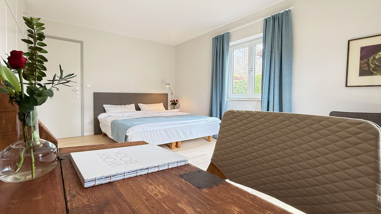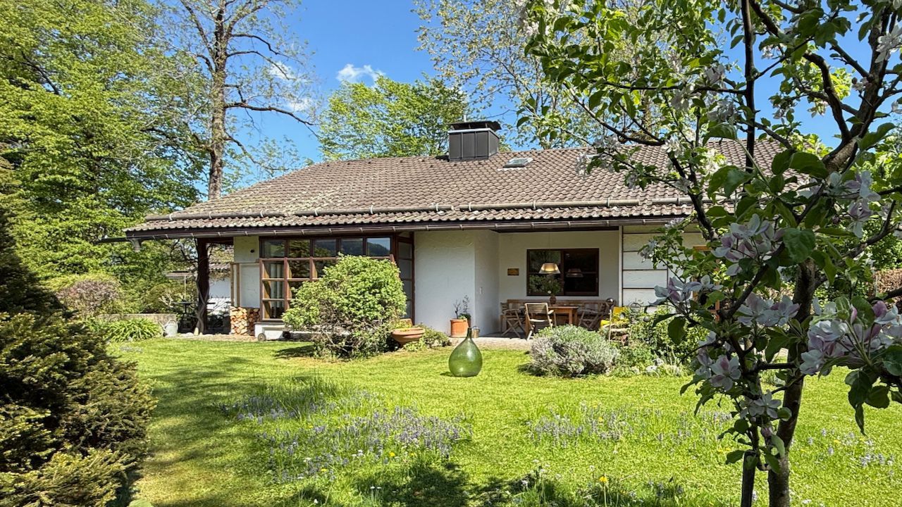 Das Mid-Century-Haus wurde 2024 behutsam saniert und umgestaltet. Es liegt im oberen Ortsteil, 5 Min. vom Zentrum entfernt. Vermietet wird das ca. 100 qm Erdgeschoss. Das großzügige Wohnzimmer mit dem neuen Kachelofen und der voll ausgestatteten offenen Küche bildet das Herzstück.Der liebevoll gestaltete Garten schließt daran an. Die Schlafzimmer sind hochwertig eingerichtet, und bieten gleichzeitig Platz zum Arbeiten oder Rückzug. Das Haus incl. Bad ist barrierefrei. Es gibt noch ein separates WC. Wallbox vorhanden. WLAN. Als Eigentümer nutze das separate und nicht einsehbare Nebengebäude und Dachgeschoss als Zweitwohnsitz.