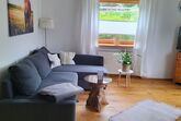 Beim Betreten der Wohnung empfängt dich eine helle Wohnküche, die durch ihre offene Gestaltung zum Mittelpunkt des Tages wird. Der gemütliche Wohnbereich bietet neben einem Esstisch und einer voll ausgestatteten hochwertigen Küchenzeile auch eine bequeme Schlafcouch - ideal für Gäste oder entspannte Fernsehabende. Warme Holztöne, liebevolle Datails und stimmige Beleuchtung verleihen dem Raum eine einladende Atmosphäre.