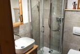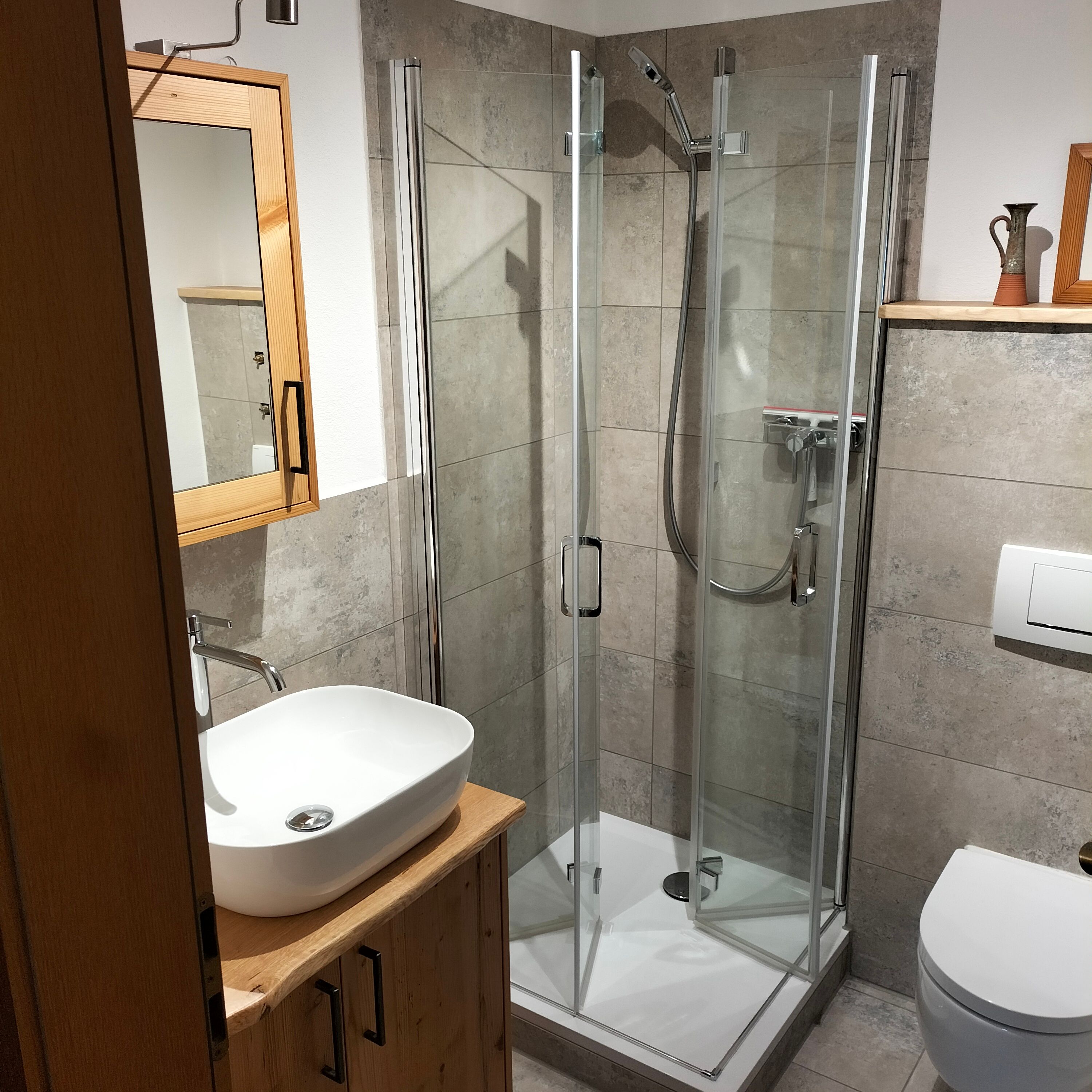 Das kleine, aber geschmackvoll gestaltete Bad ist modern ausgestattet - mit Dusche, stilvollen Amaturen und clever genutztem Raum.