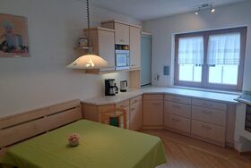 Die großzügige Ferienwohnung im ersten Stock bietet auf 120 m² ausreichend Platz für bis zu 5 Personen. Sie verfügt über zwei Schlafzimmer: Schlafzimmer 1 ist mit einem Doppelbett ausgestattet, Schlafzimmer 2 bietet ein Doppelbett sowie ein Einzelbett. Im gemütlichen Wohnzimmer und in der voll ausgestatteten Küche findest Du viel Raum zum Entspannen und Verweilen. Das Haus liegt mitten in den Bergen, umgeben von Wäldern, grünen Wiesen und einem traumhaften Ausblick auf die Alpen.