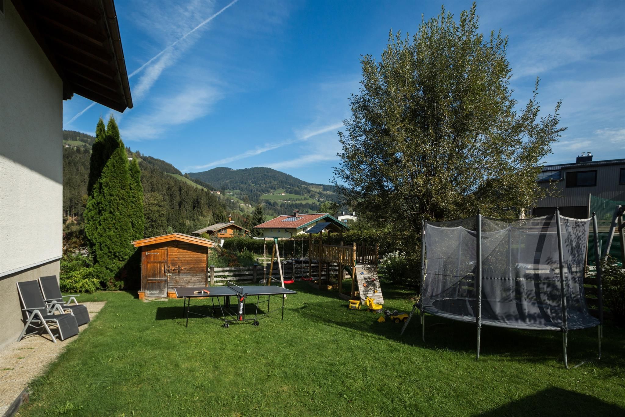 Mit seiner gemütlichen Terrasse samt Gartenhäuschen zum Spielen und Feiern und dem kleinen Kinderspielplatz ist es bestens für Familien und Freundesgruppen geeignet. Nach einem anstrengenden Tag kann man in der Sauna so richtig entspannen.