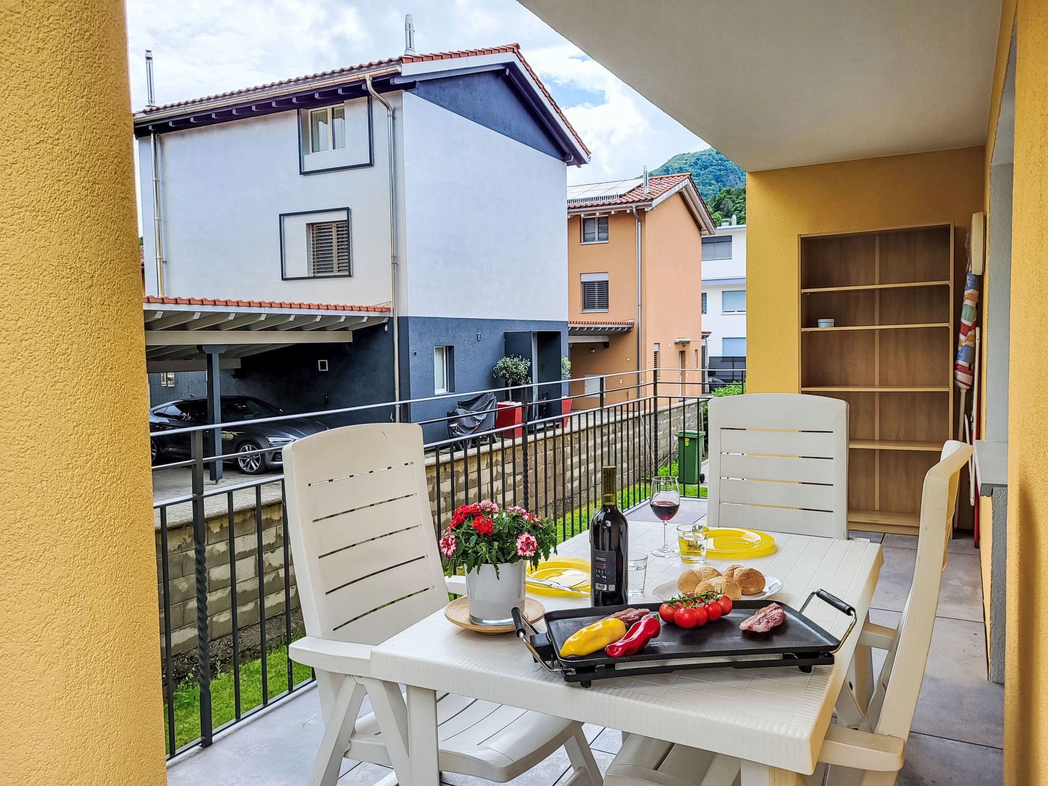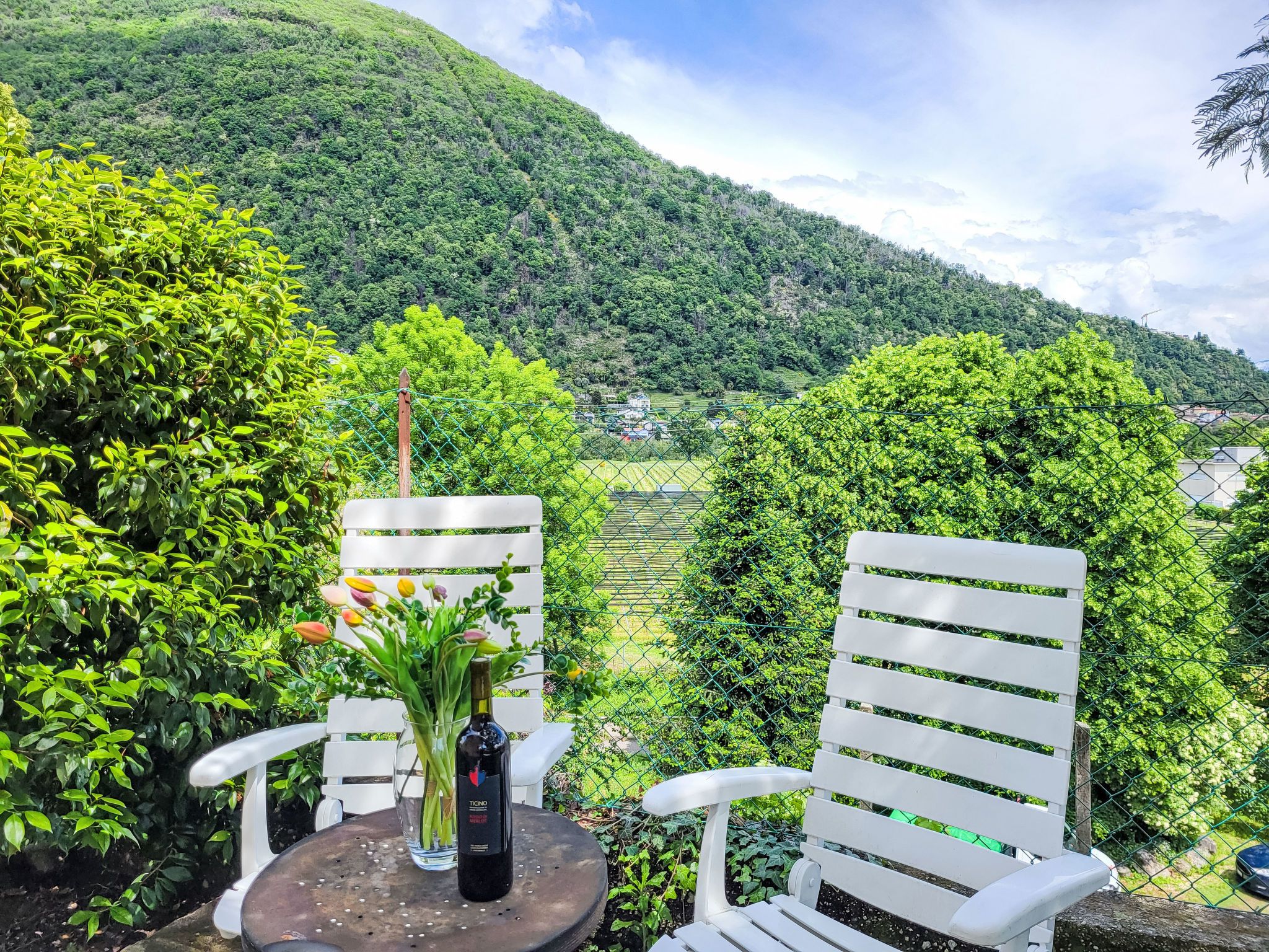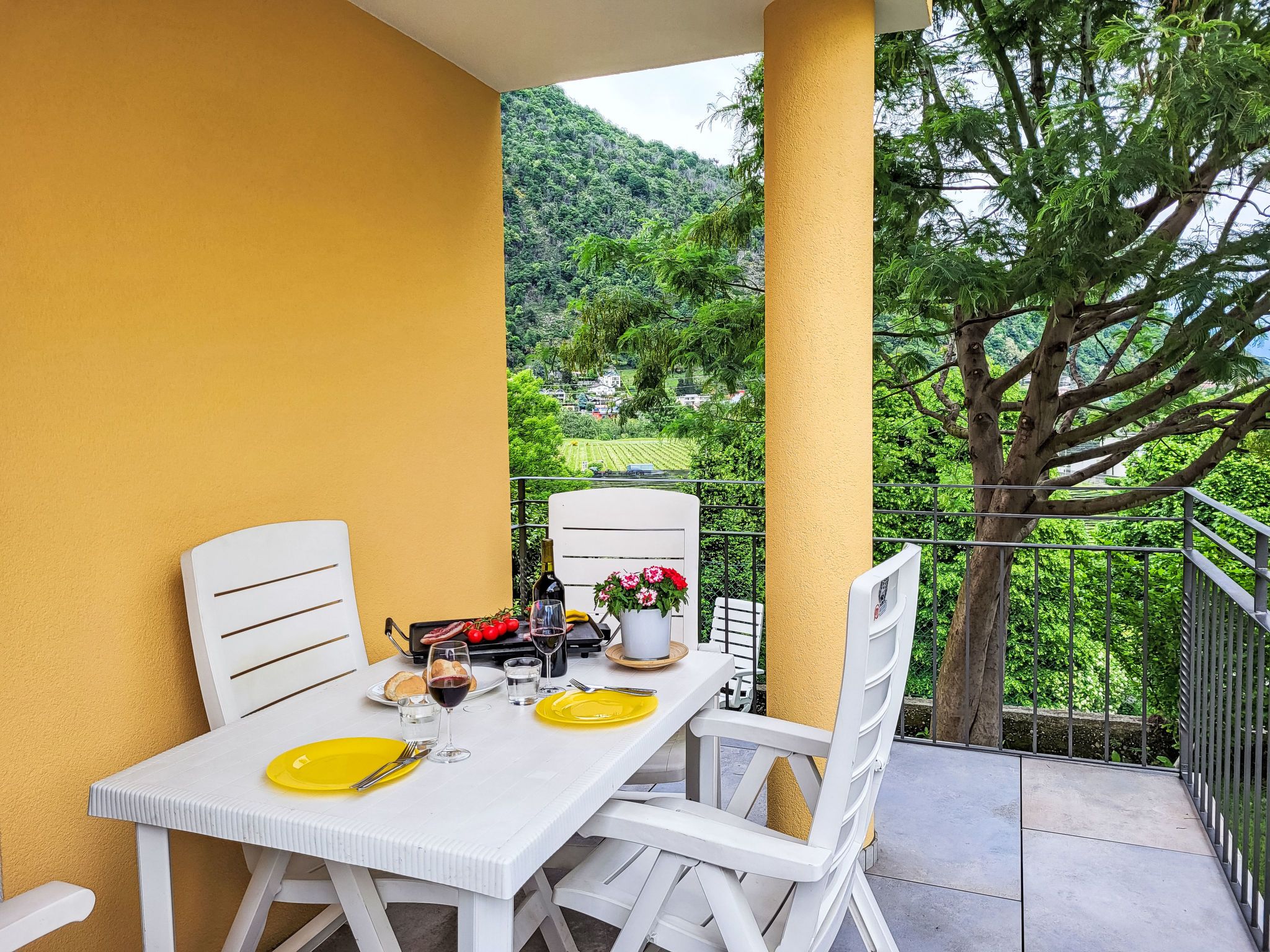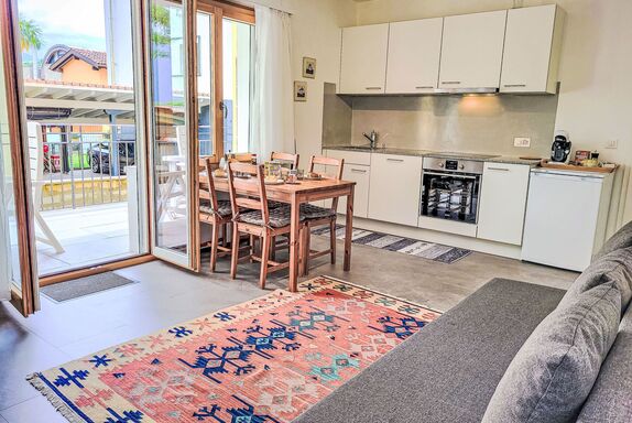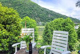Appartment sulle Viti, 2-Zimmer-Wohnung 42 m2, Südwestlage. Objekt geeignet für 2 Erwachsene + 1 Kind. Hell, einfach und schön eingerichtet: offenes Wohn-/Esszimmer mit 1 Diwanbett (140 cm, Länge 200 cm), Esstisch, TV, Internationale TV-Sender und Flachbildschirm. Ausgang zum Balkon. Offene Küche (Backofen, Geschirrspüler, 4 Glaskeramikplatten, elektrische Kaffeemaschine, Kapseln für die Kaffeemaschine (Tassimo) extra). Ausgang zum Balkon. Dusche/WC. Bodenheizung. Natursteinboden. Kleiner Balkon 12 m2. Balkonmöbel. Schöne Panoramasicht auf die Berge und die Landschaft. Zur Verfügung: Waschmaschine, Wäschetrockner. Internet (WLAN, gratis). Parkplatz beim Haus. Maximal 1 Haustier/Hund erlaubt. NL-