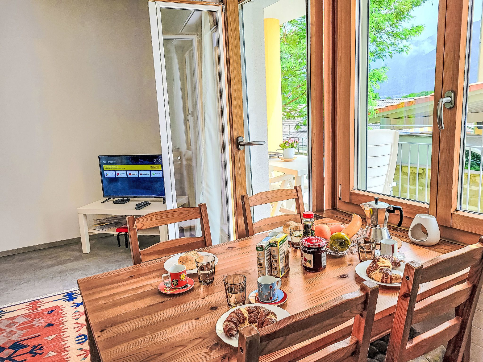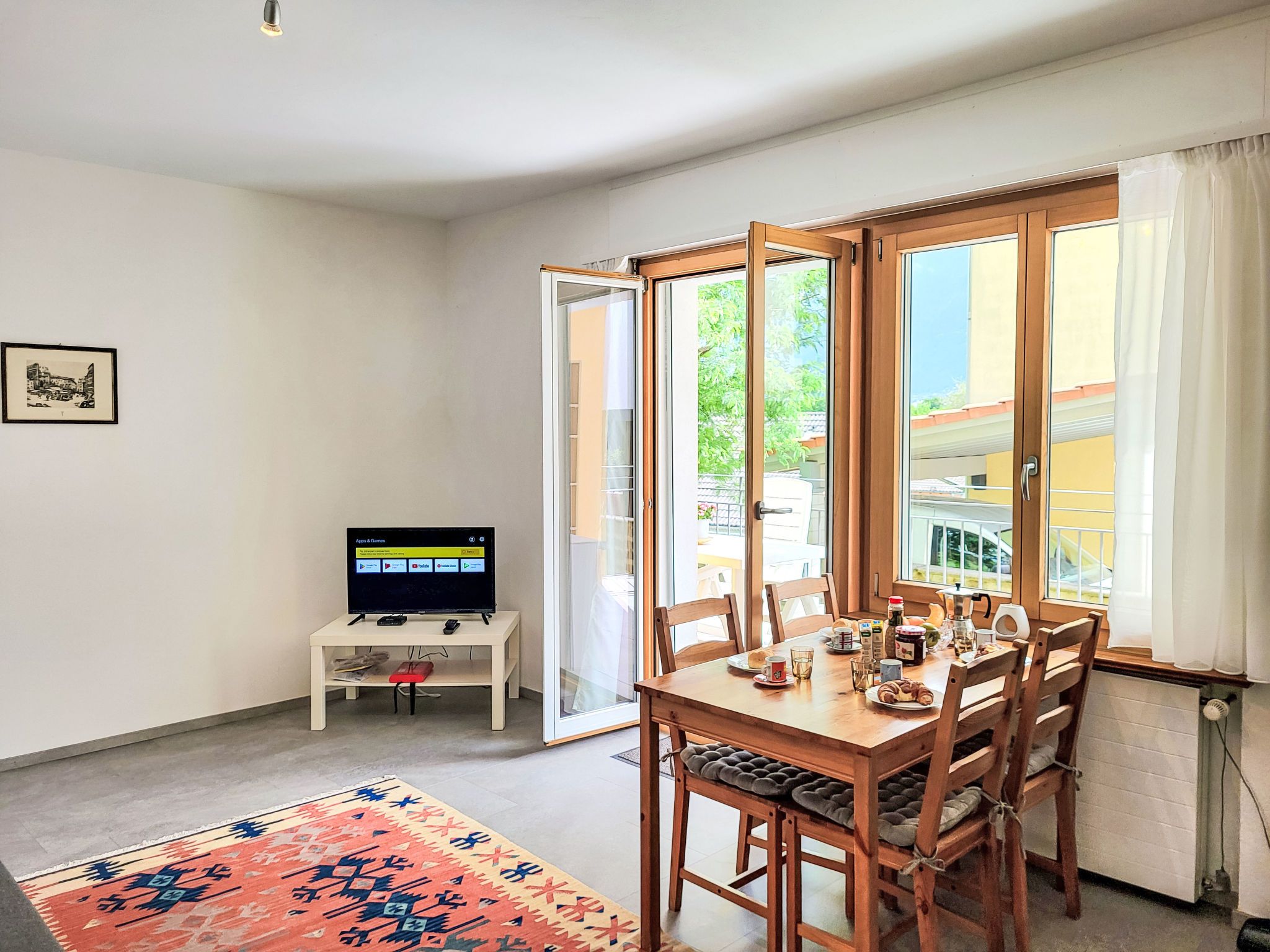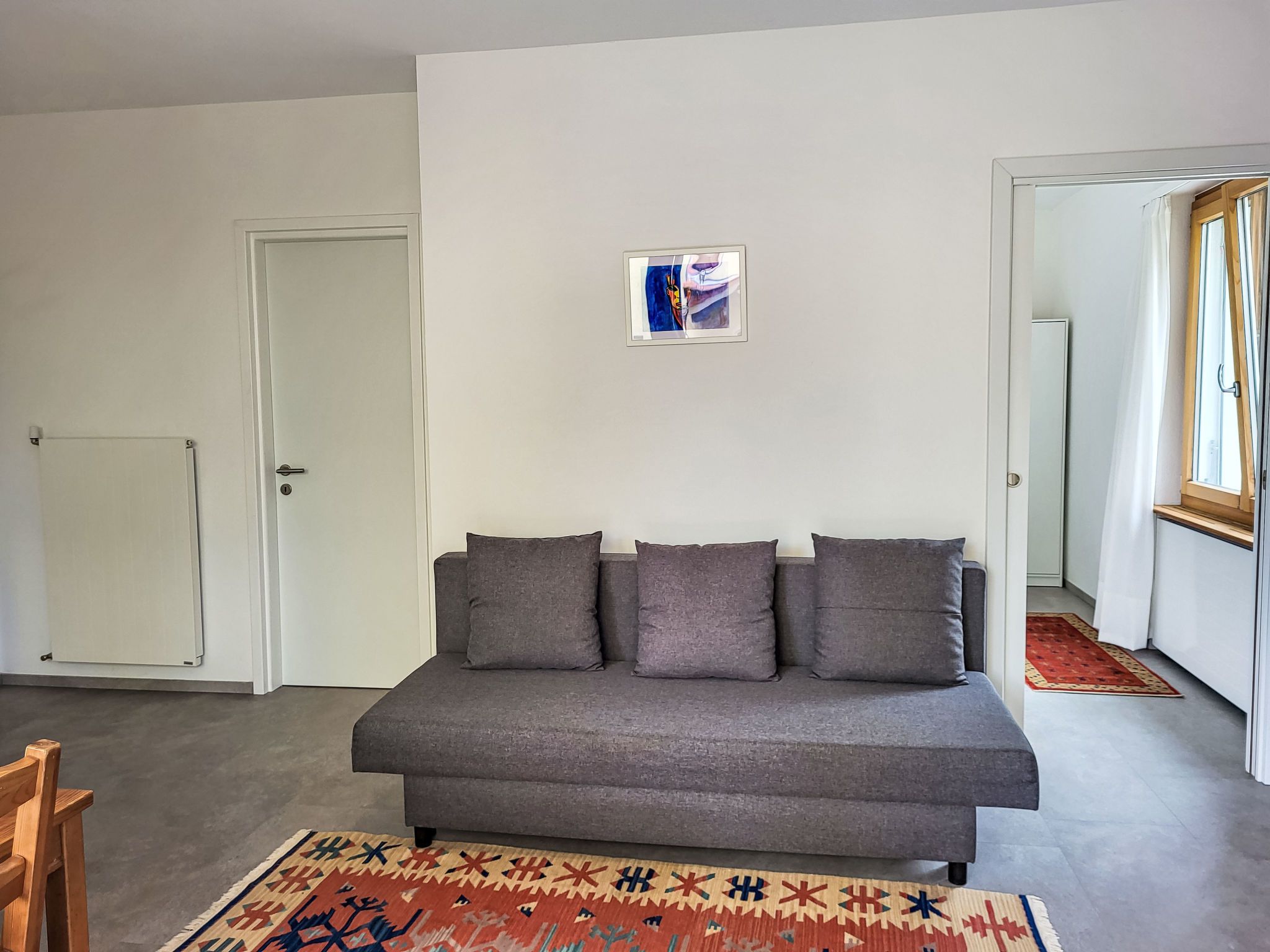 Appartment sulle Viti, 2-Zimmer-Wohnung 42 m2, Südwestlage. Objekt geeignet für 2 Erwachsene + 1 Kind. Hell, einfach und schön eingerichtet: offenes Wohn-/Esszimmer mit 1 Diwanbett (140 cm, Länge 200 cm), Esstisch, TV, Internationale TV-Sender und Flachbildschirm. Ausgang zum Balkon. Offene Küche (Backofen, Geschirrspüler, 4 Glaskeramikplatten, elektrische Kaffeemaschine, Kapseln für die Kaffeemaschine (Tassimo) extra). Ausgang zum Balkon. Dusche/WC. Bodenheizung. Natursteinboden. Kleiner Balkon 12 m2. Balkonmöbel. Schöne Panoramasicht auf die Berge und die Landschaft. Zur Verfügung: Waschmaschine, Wäschetrockner. Internet (WLAN, gratis). Parkplatz beim Haus. Maximal 1 Haustier/Hund erlaubt. NL-