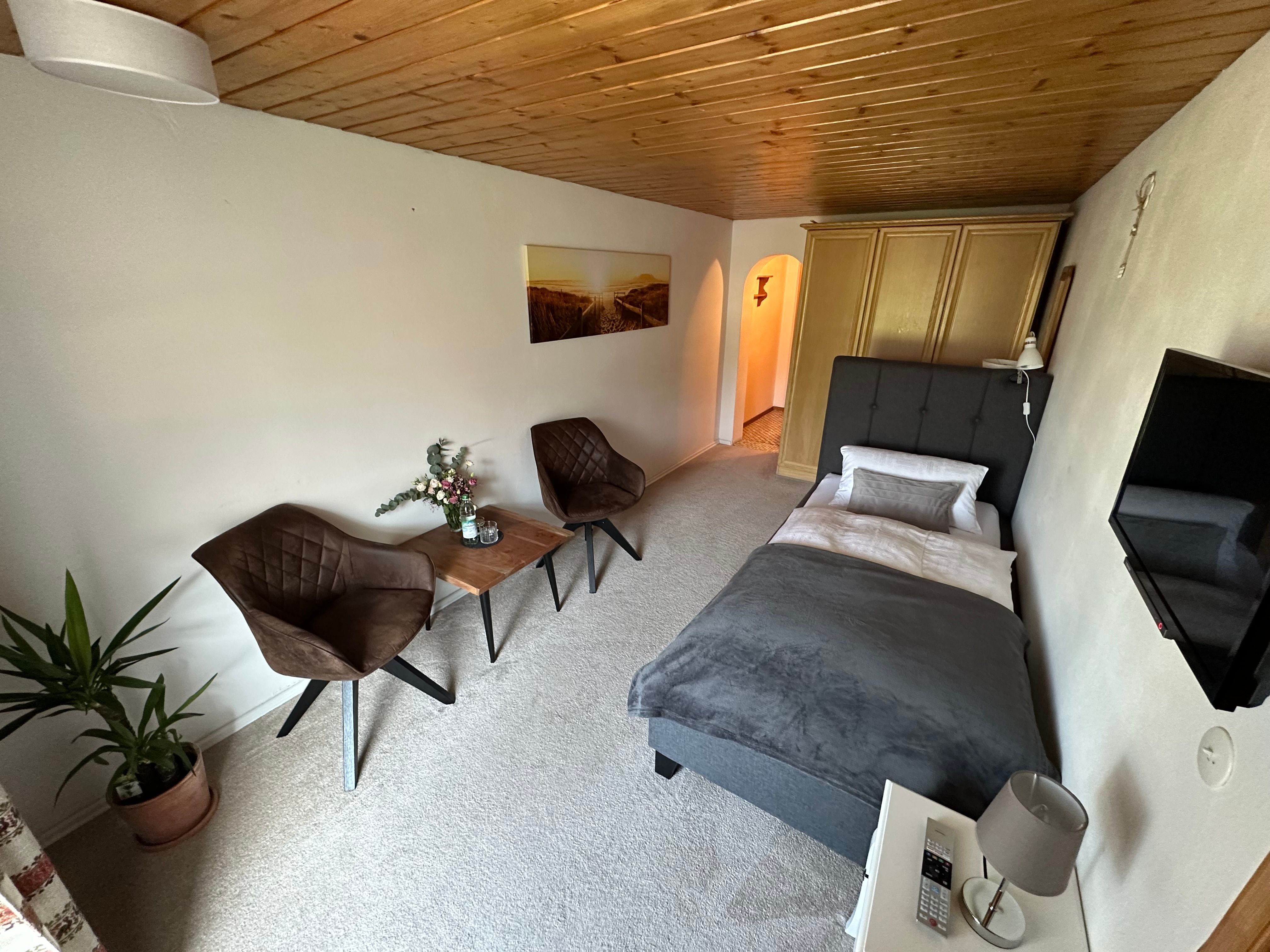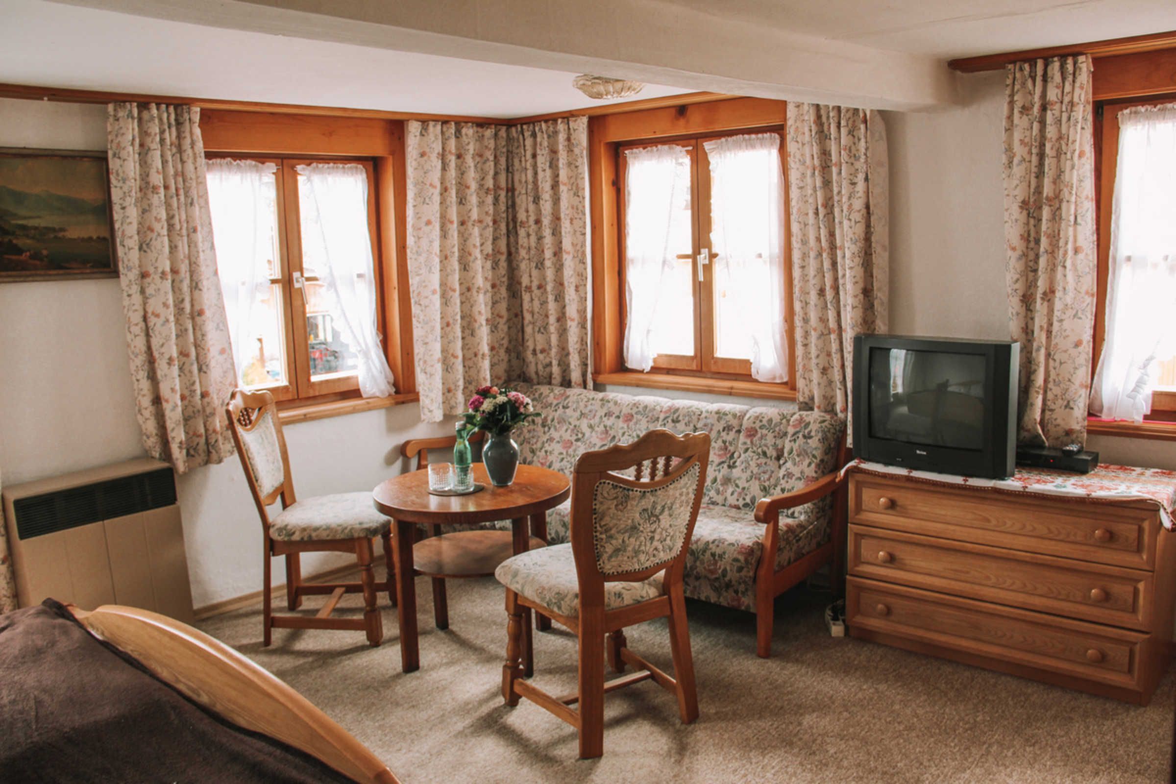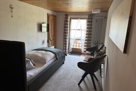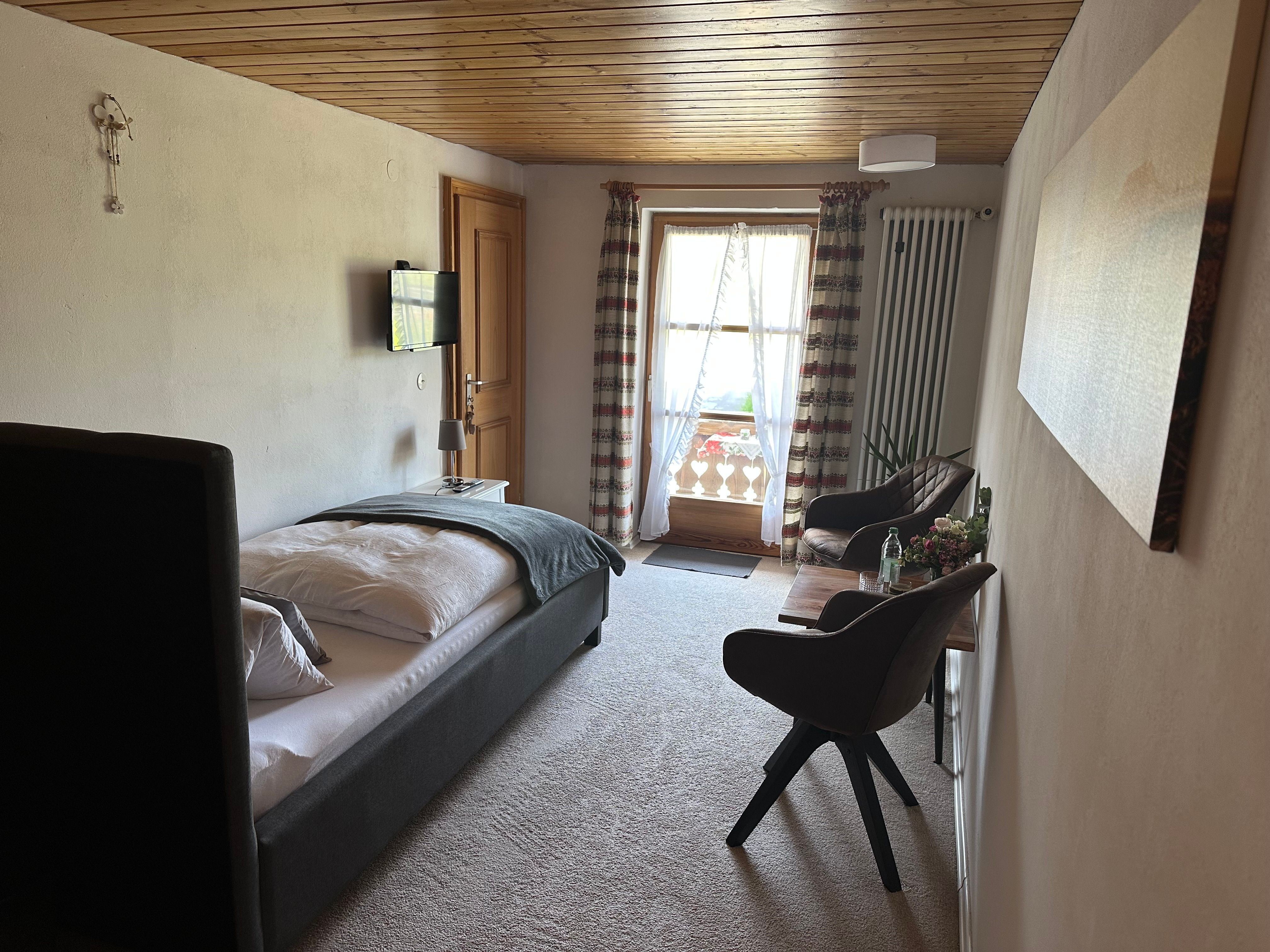 Es erwartet Sie ein, im bäuerlichen Landhausstil eingerichtetes, gemütliches Einzelzimmer mit Dusche/WC und Balkon Richtung Süden. Das Nichtraucherzimmer befindet sich auf der 1. Etage und ist ausgestattet mit Teppichboden und einer Sitzgelegenheit.