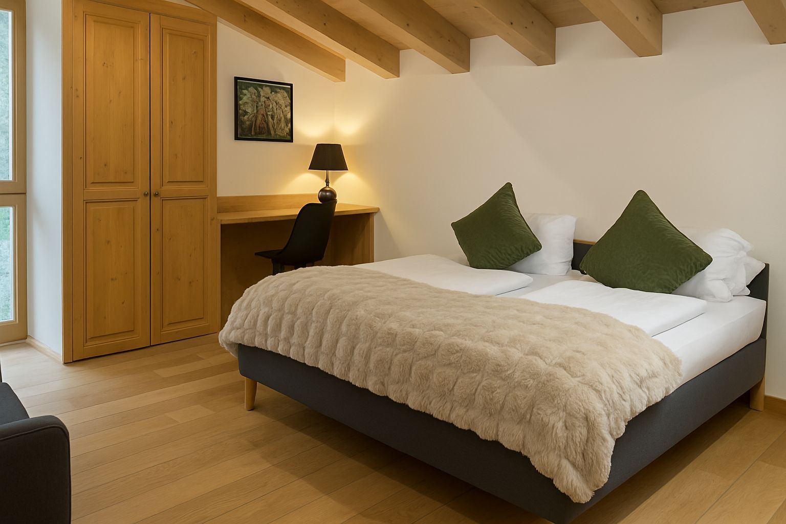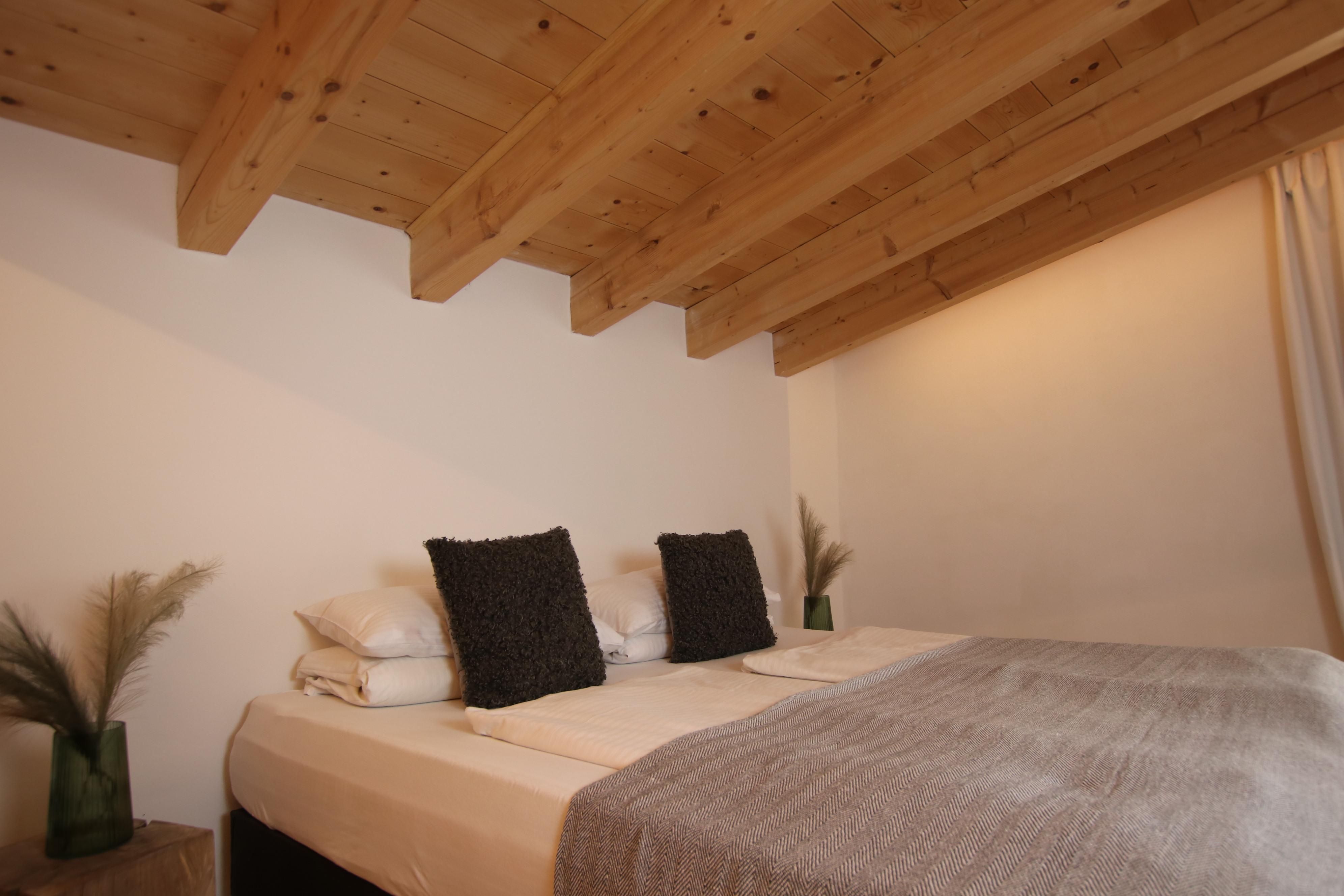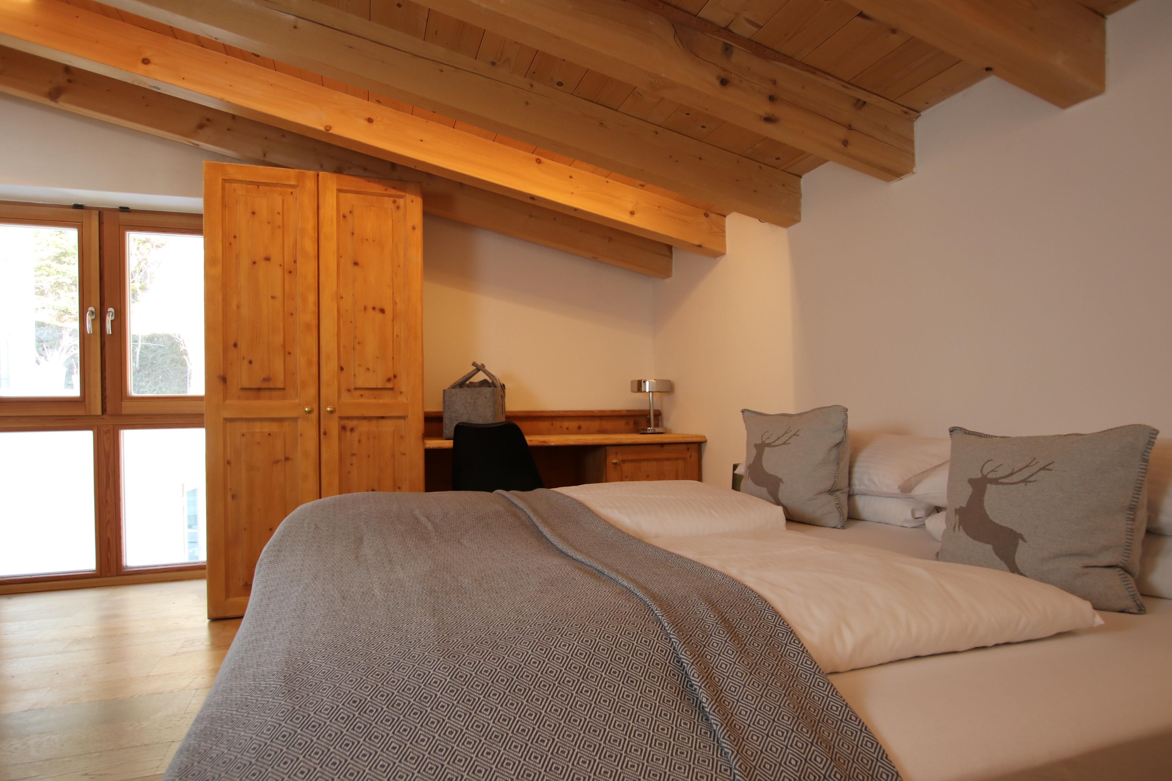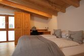 Dieses Apartment ist buchbar für bis zu 7 Personen und bietet auf 111 m² einen geräumigen Wohnbereich, drei Schlafzimmer mit jeweils einem Doppelbett, ein weiteres Schlafzimmer mit Stockbett, eine voll ausgestattete Küche, zwei moderne Badezimmer mit Dusche, ein separates WC sowie einen Südbalkon mit wunderschönem Bergblick. Das Apartment befindet sich im 2. Stock und ist bequem über eine Treppe zugänglich.