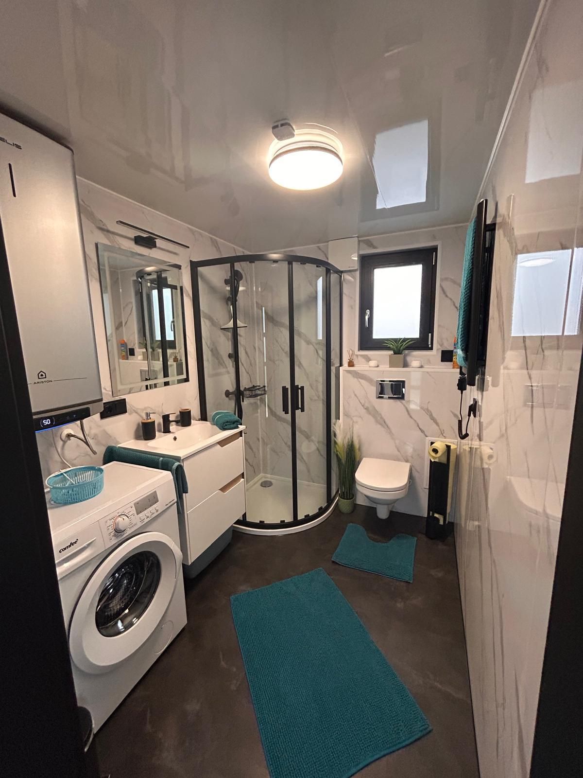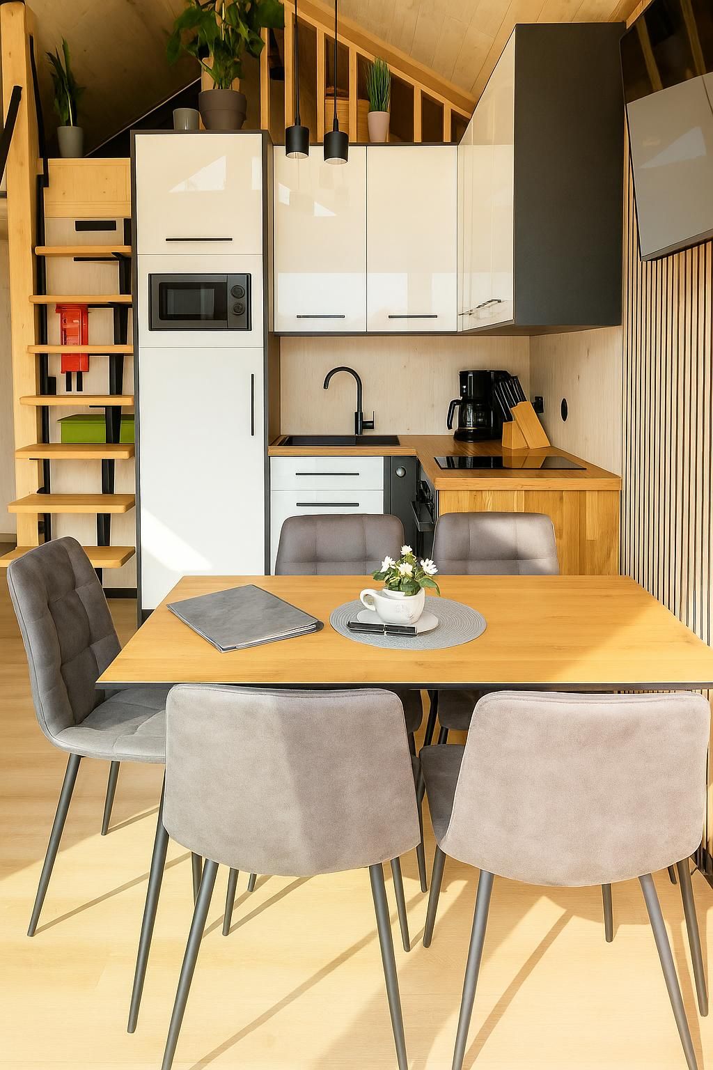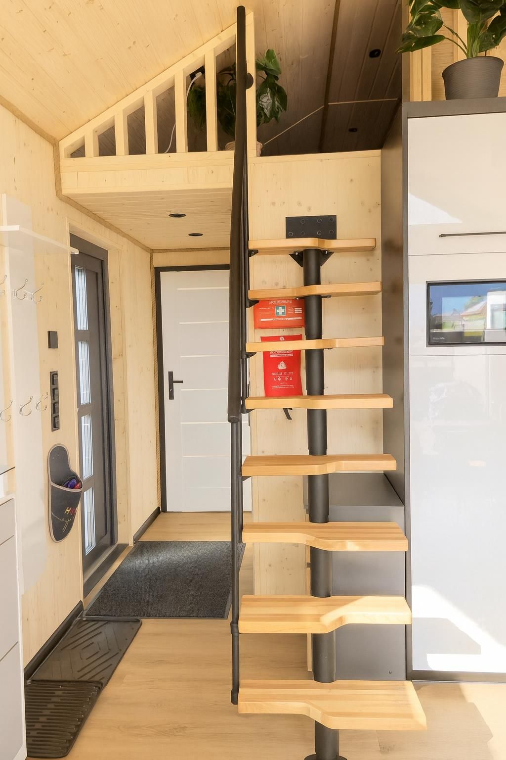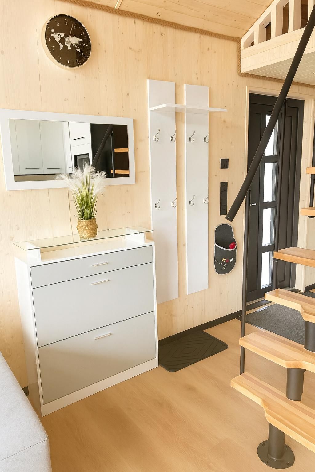 Das liebevoll eingerichtete Tinyhaus mit 50 m² bietet Platz für bis zu 5 Personen und lädt die ganze Familie zum gemütlichen Verweilen ein. Trotz der kompakten Größe finden Sie hier alles, was Sie für einen angenehmen Aufenthalt benötigen. Besonders bei Kindern sehr beliebt ist das Schlafloft im Halbgeschoss – ein echtes Highlight zum Übernachten. Die offene Raumgestaltung, warme Holzelemente und durchdachten Details schaffen eine behagliche Atmosphäre, in der man sich sofort wohlfühlt. Ob gemeinsames Kochen, Spielen oder Entspannen – dieses Tinyhaus macht das Leben auf kleinem Raum zum besonderen Erlebnis.