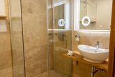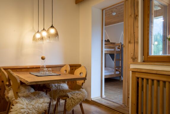 Die Family Suite bietet auf 36 m² Platz für bis zu 3 Personen – ideal für Familien, die Komfort und Natur miteinander verbinden möchten. Der großzügige Wohn- und Schlafbereich umfasst ein gemütliches Doppelbett sowie einen leicht abgetrennten Bereich mit Stockbett. Eine voll ausgestattete Küche und ein modernes Bad mit Dusche sorgen für ein angenehmes Wohngefühl. Vom sonnigen Südbalkon genießen Sie einen traumhaften Blick auf die Berge. Der Aufzug bietet bequemen Zugang.