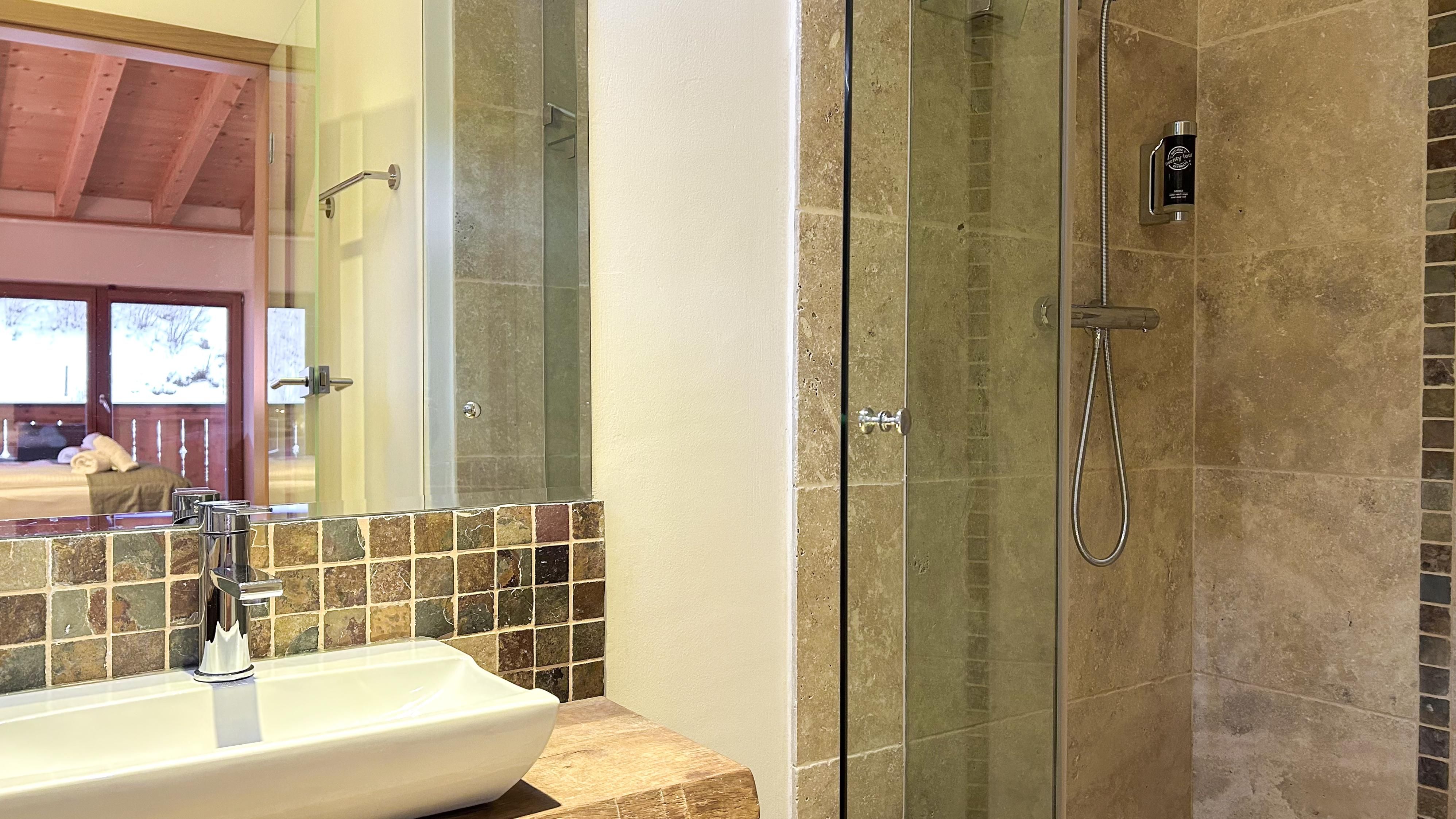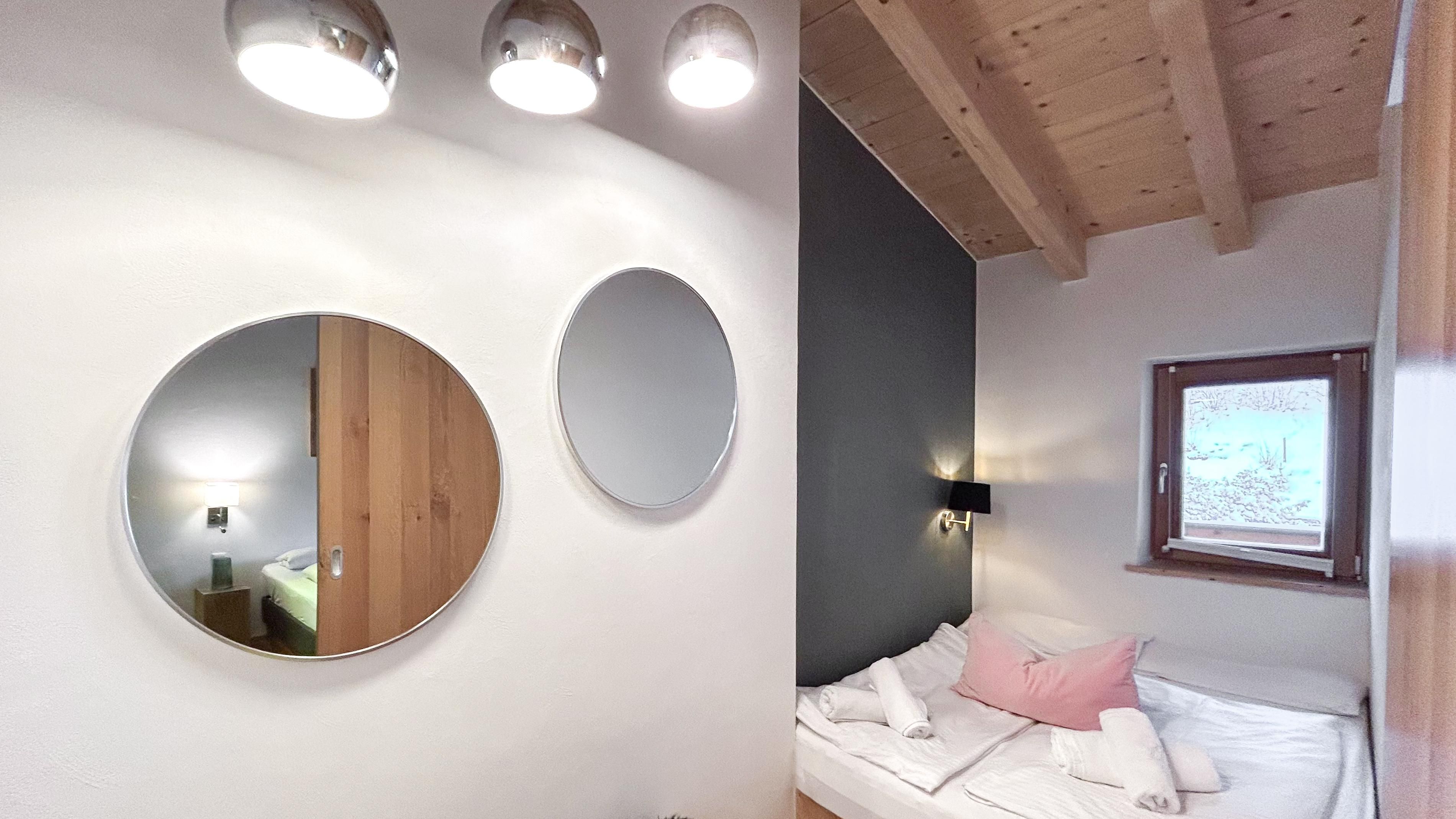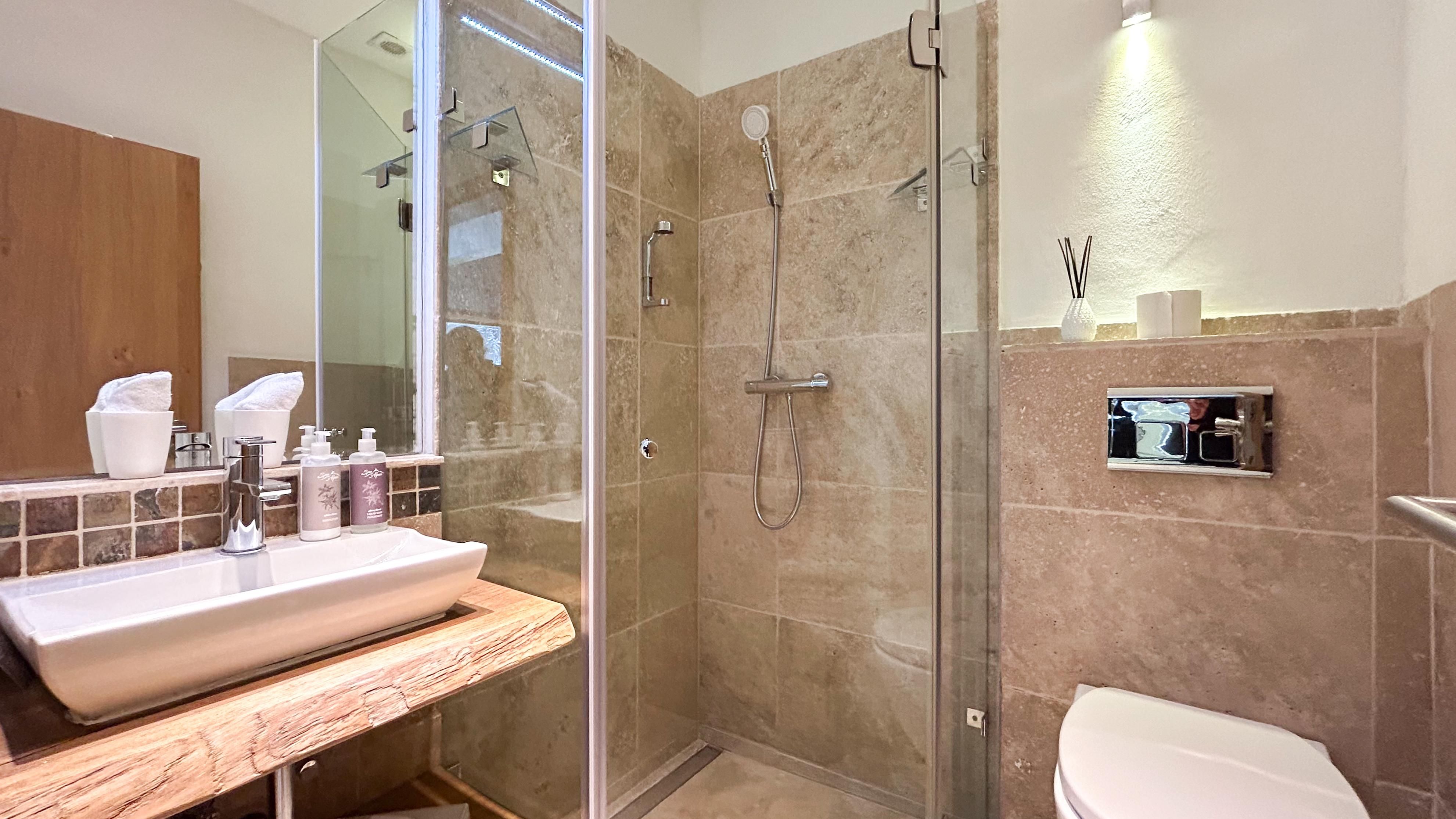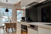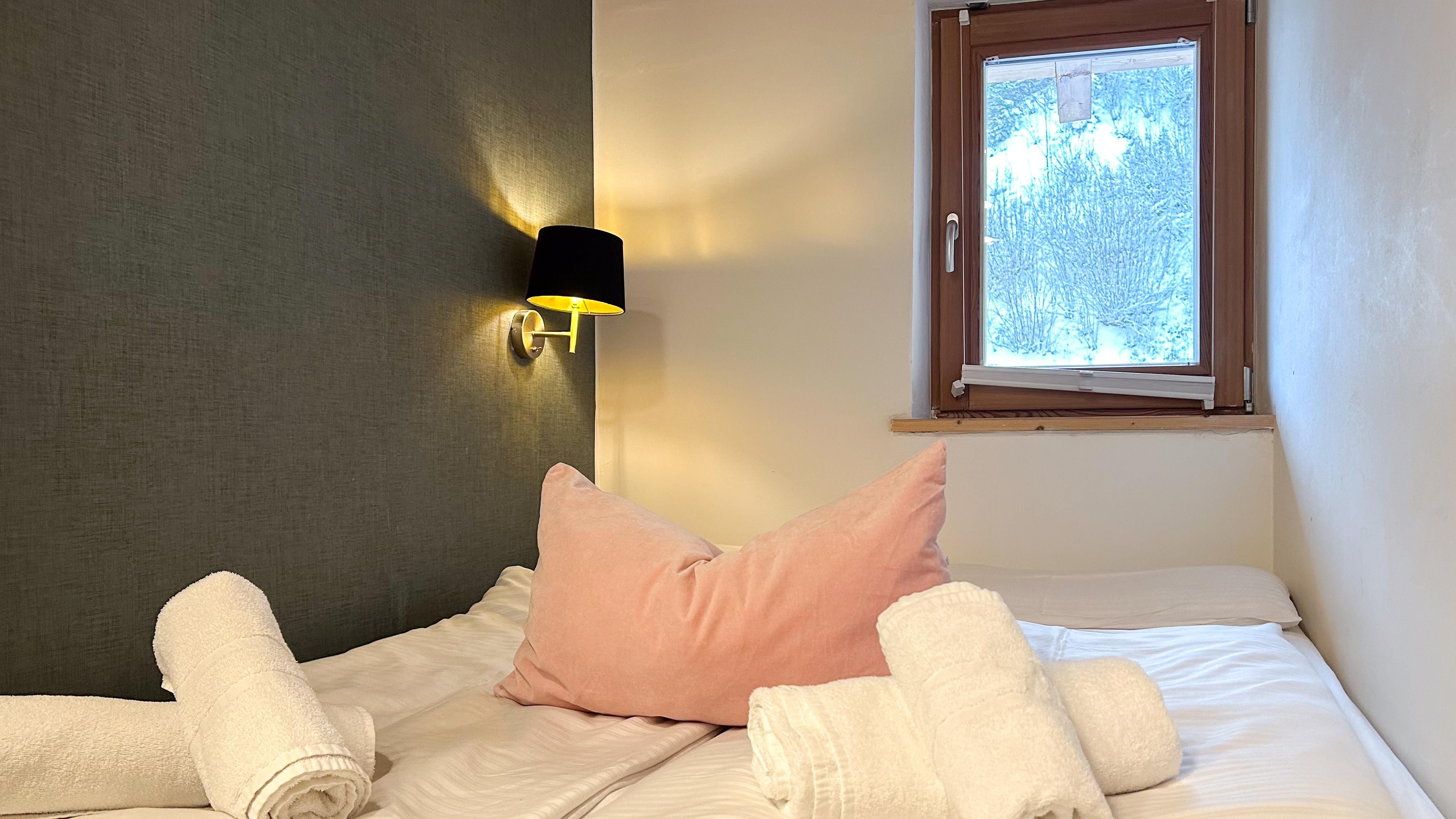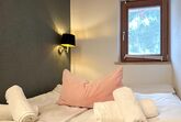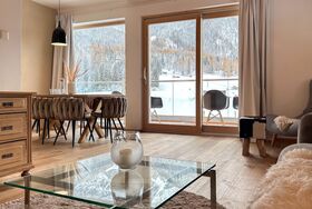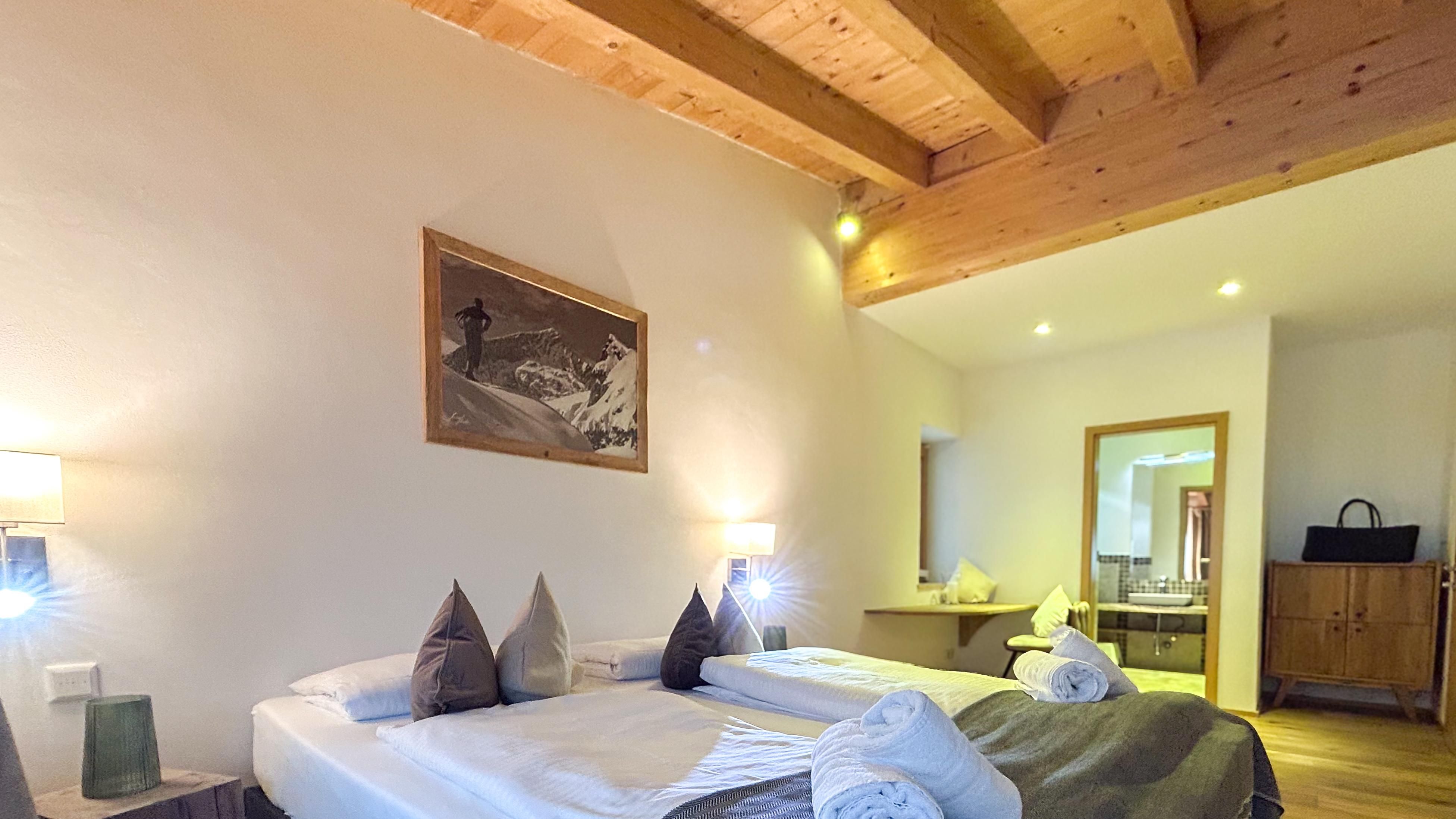 Familienfreundliches Apartment mit großem Schlafzimmer und eigenem Bad sowie zwei kleineren Schlafzimmern. Ein zusätzliches Bad mit WC und Dusche bietet extra Komfort. Der helle Wohn-Essbereich mit voll ausgestatteter Küche, Sofaecke und Esstisch öffnet sich zum Balkon mit herrlichem Bergpanorama. Perfekt für Familien, die Entspannung und alpine Erlebnisse kombinieren möchten.