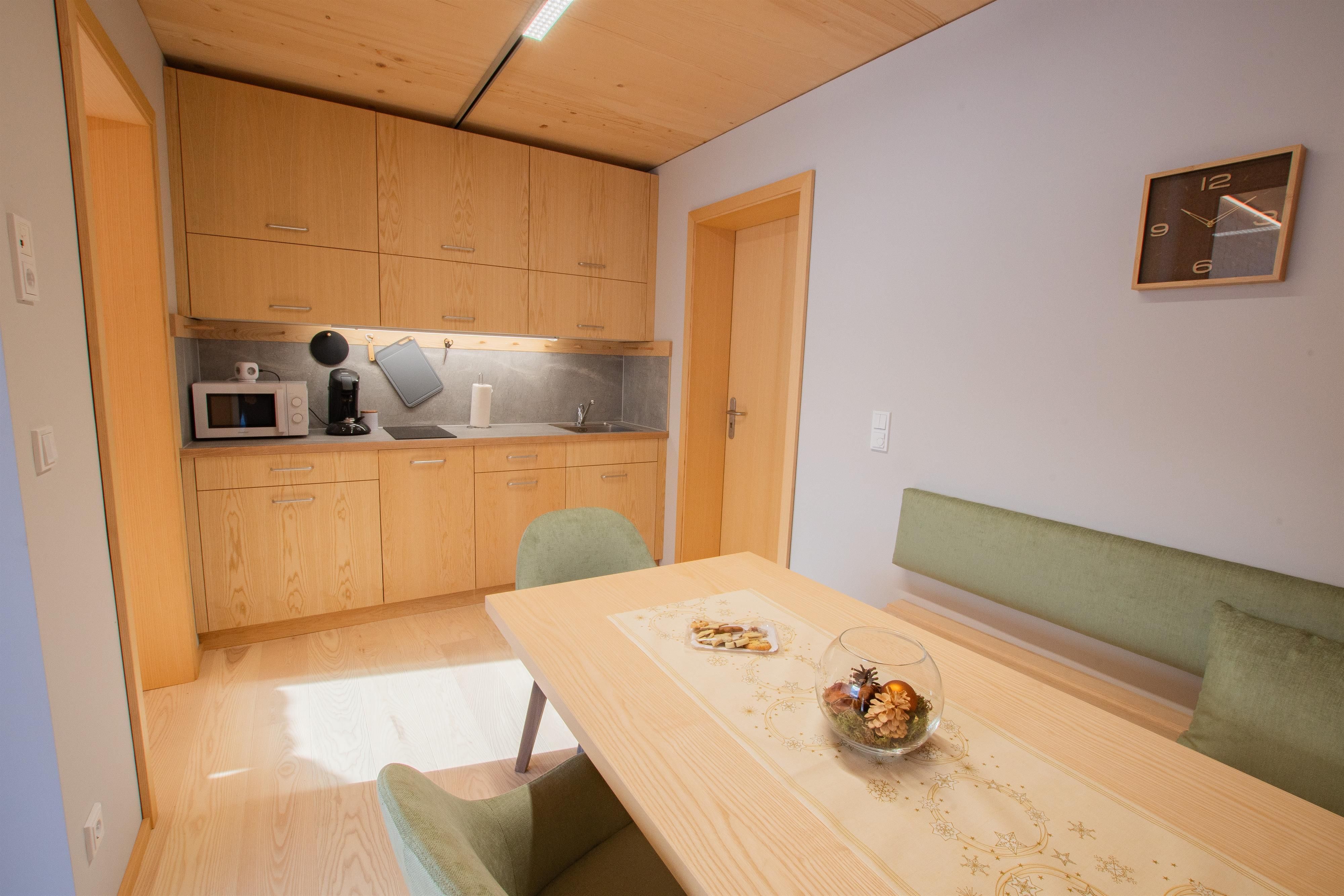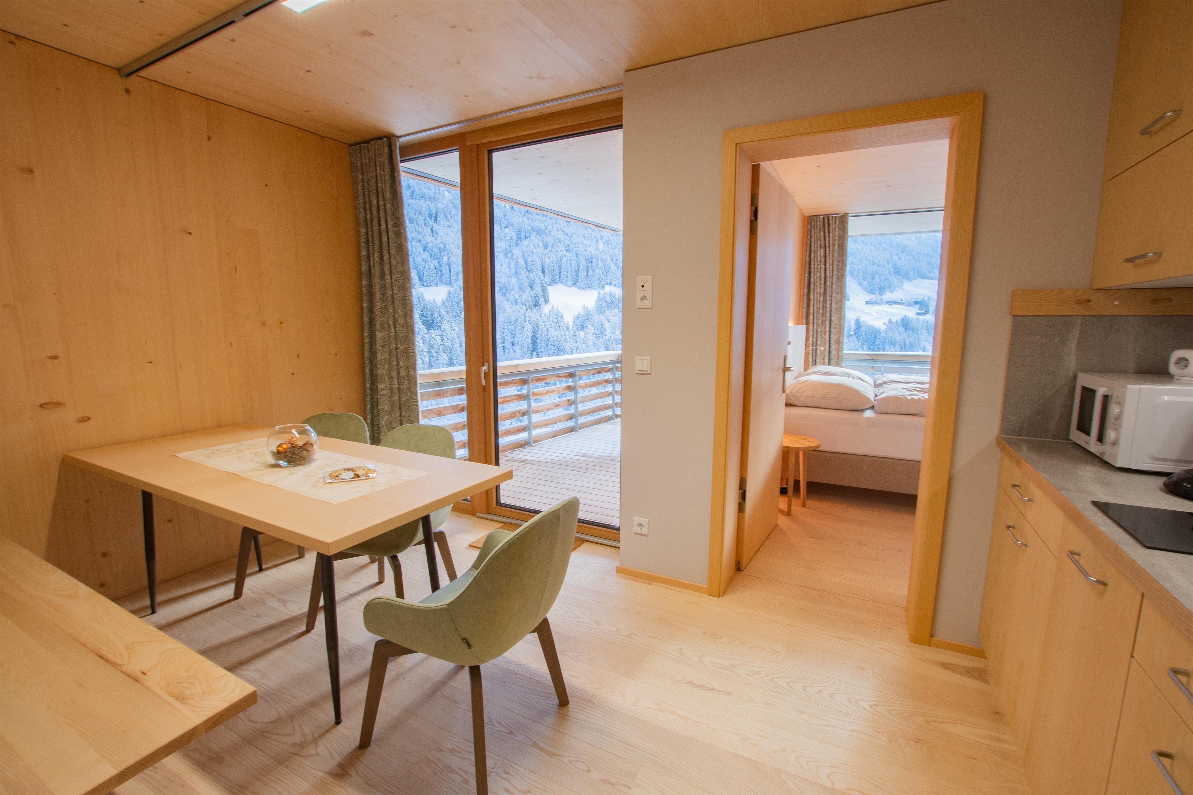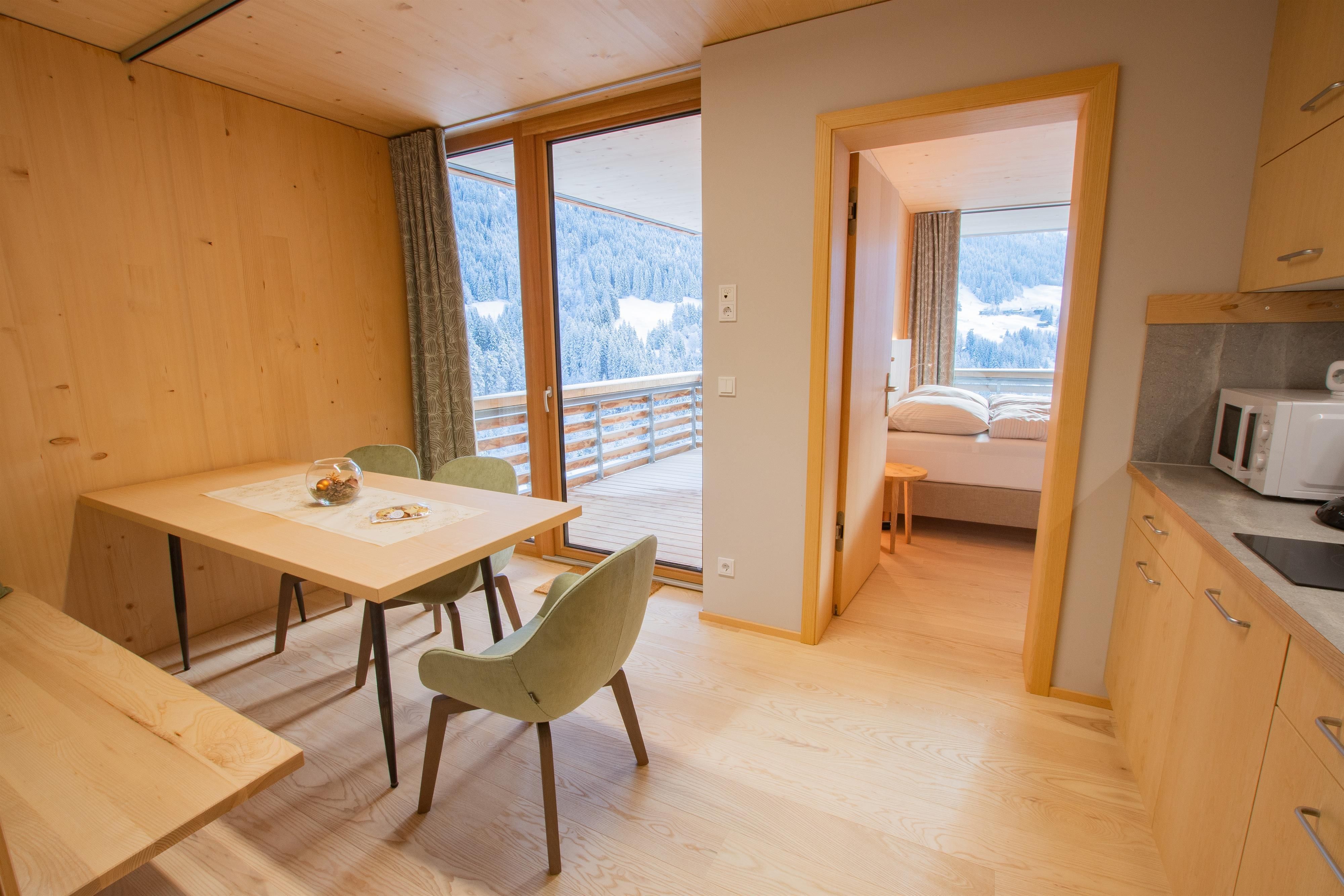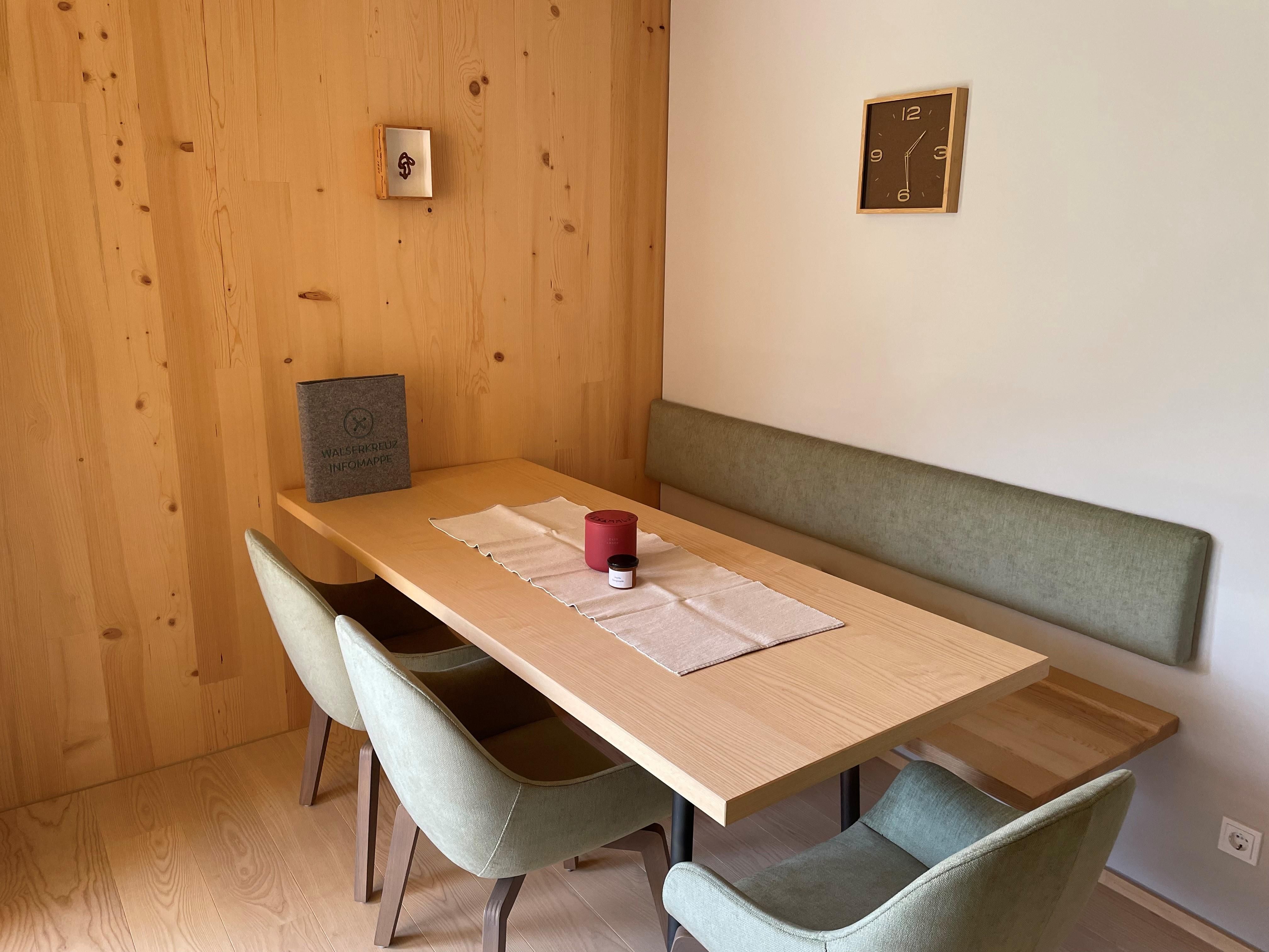Holz - Nachhaltigkeit - herrliche Aussicht – das beschreibt unsere modernen Suiten im neuen Haus Walserkreuz am besten. Die Möbel vom heimischen Tischler integrieren altes Holz aus dem alten Kreuz. In allen Wohnungen sind Betten und Wäsche für die angegebene Personenzahl vorhanden. Direkt neben dem Gasthof/Restaurant Kreuz, dort bekommen Hausgäste 10 % Ermäßigung auf den gesamten Verzehr. Ski-In + Ski-out über die Heuberg-Arena, Ski- und Schuhraum, Parkplatz.