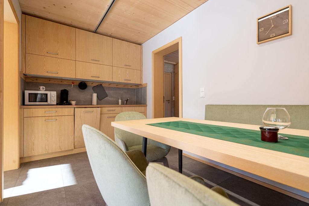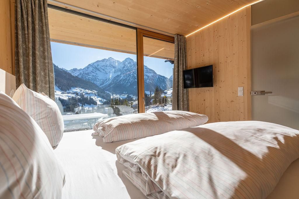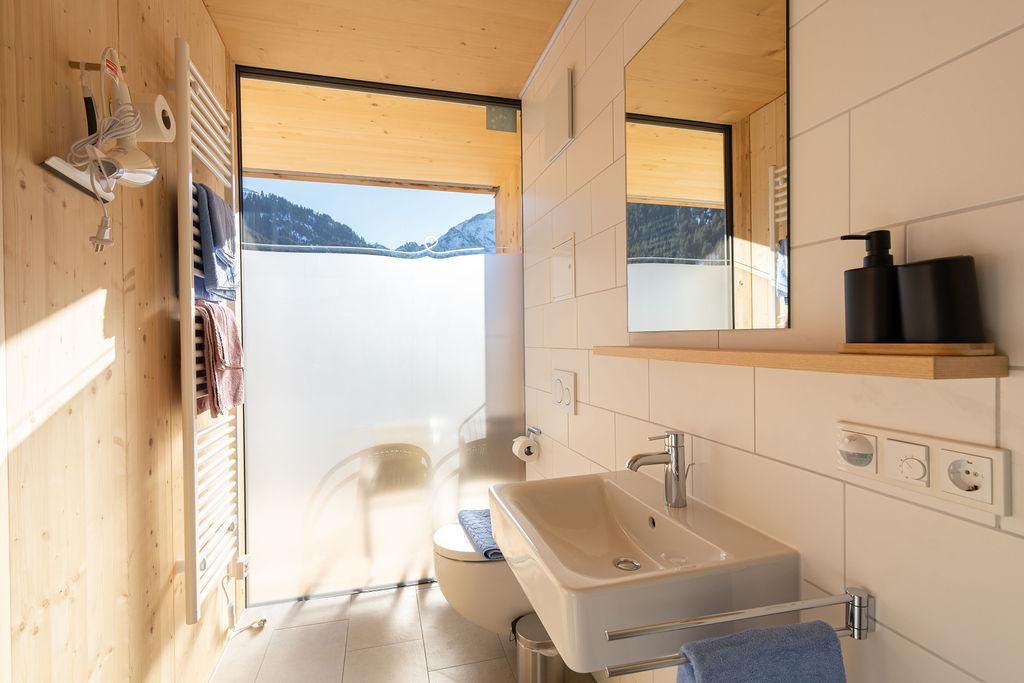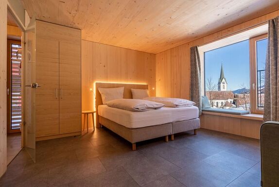 Holz - Nachhaltigkeit - herrliche Aussicht – das beschreibt unsere modernen Suiten im neuen Haus Walserkreuz am besten. Die Möbel vom heimischen Tischler integrieren altes Holz aus dem alten Kreuz. In allen Wohnungen sind Betten und Wäsche für die angegebene Personenzahl vorhanden. Direkt neben dem Gasthof/Restaurant Kreuz, dort bekommen Hausgäste 10 % Ermäßigung auf den gesamten Verzehr. Ski-In + Ski-out über die Heuberg-Arena, Ski- und Schuhraum, Parkplatz.