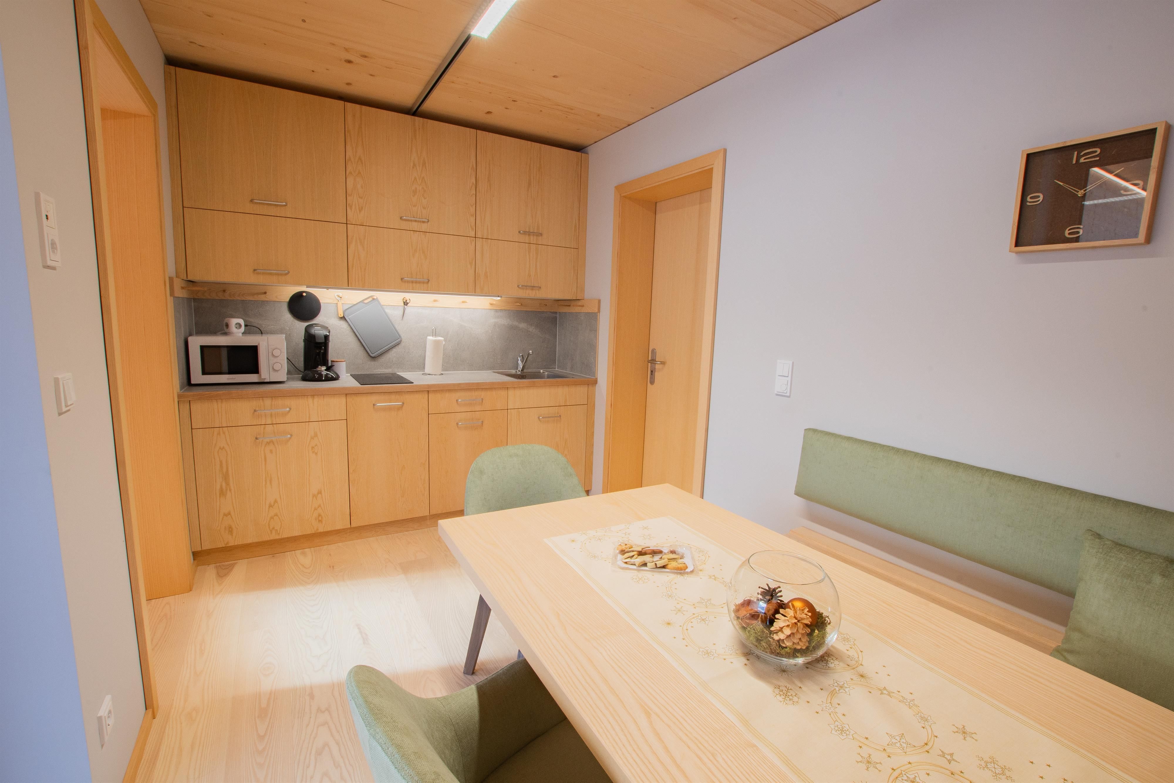 Holz - Nachhaltigkeit - herrliche Aussicht – das beschreibt unsere modernen Suiten im neuen Haus Walserkreuz am besten. Die Möbel vom heimischen Tischler integrieren altes Holz aus dem alten Kreuz. In allen Wohnungen sind Betten und Wäsche für die angegebene Personenzahl vorhanden. Direkt neben dem Gasthof/Restaurant Kreuz, dort bekommen Hausgäste 10 % Ermäßigung auf den gesamten Verzehr. Ski-In + Ski-out über die Heuberg-Arena, Ski- und Schuhraum, Parkplatz.
