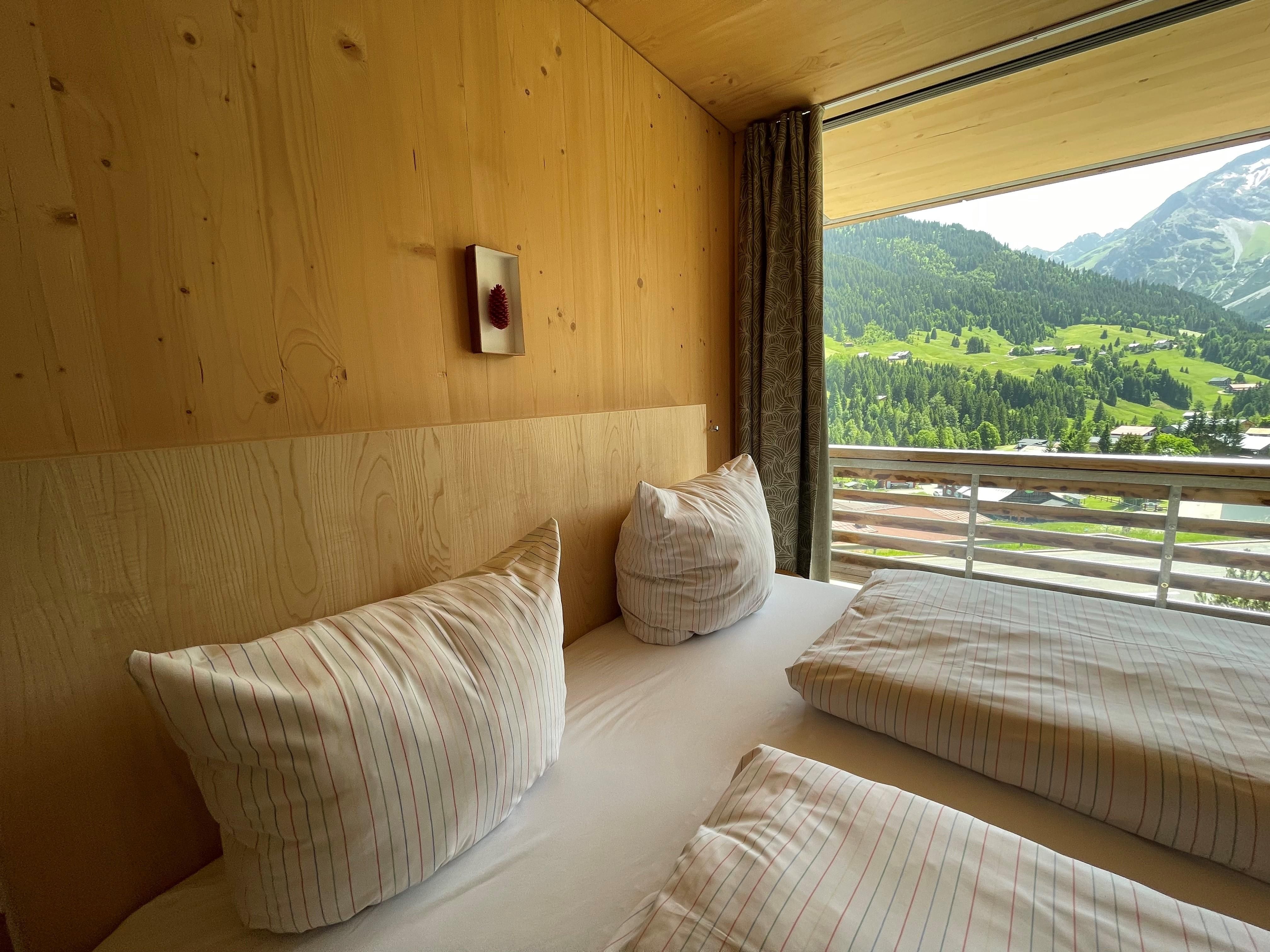 Holz - Nachhaltigkeit - herrliche Aussicht – das beschreibt unsere modernen Suiten im neuen Haus Walserkreuz am besten. Die Möbel vom heimischen Tischler integrieren altes Holz aus dem alten Kreuz. In allen Wohnungen sind Betten und Wäsche für die angegebene Personenzahl vorhanden. Direkt neben dem Gasthof/Restaurant Kreuz, dort bekommen Hausgäste 10 % Ermäßigung auf den gesamten Verzehr. Ski-In + Ski-out über die Heuberg-Arena, Ski- und Schuhraum, Parkplatz.