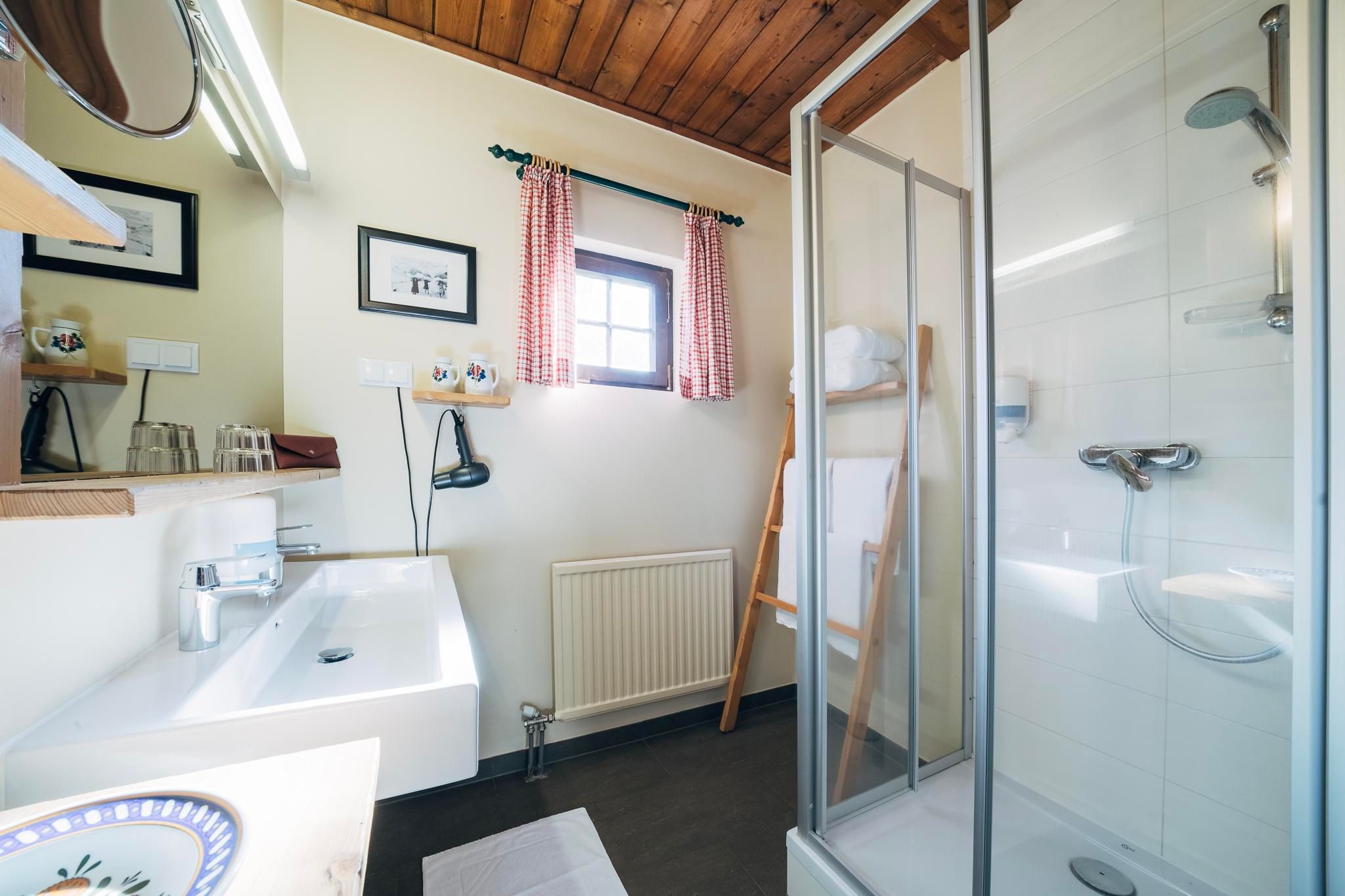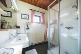 Vorraum mit komplett eingerichteter Küche (inkl. Geschirrspüler, Backofen, Ceranfeld, Kaffeekapselmaschine), gemütlicher Wohn-Essbereich mit Kachelofen, Couch und 1 Doppelbett, 1 kleines Schlafzimmer mit 2 Einzelbetten, Badezimmer mit Dusche und WC.