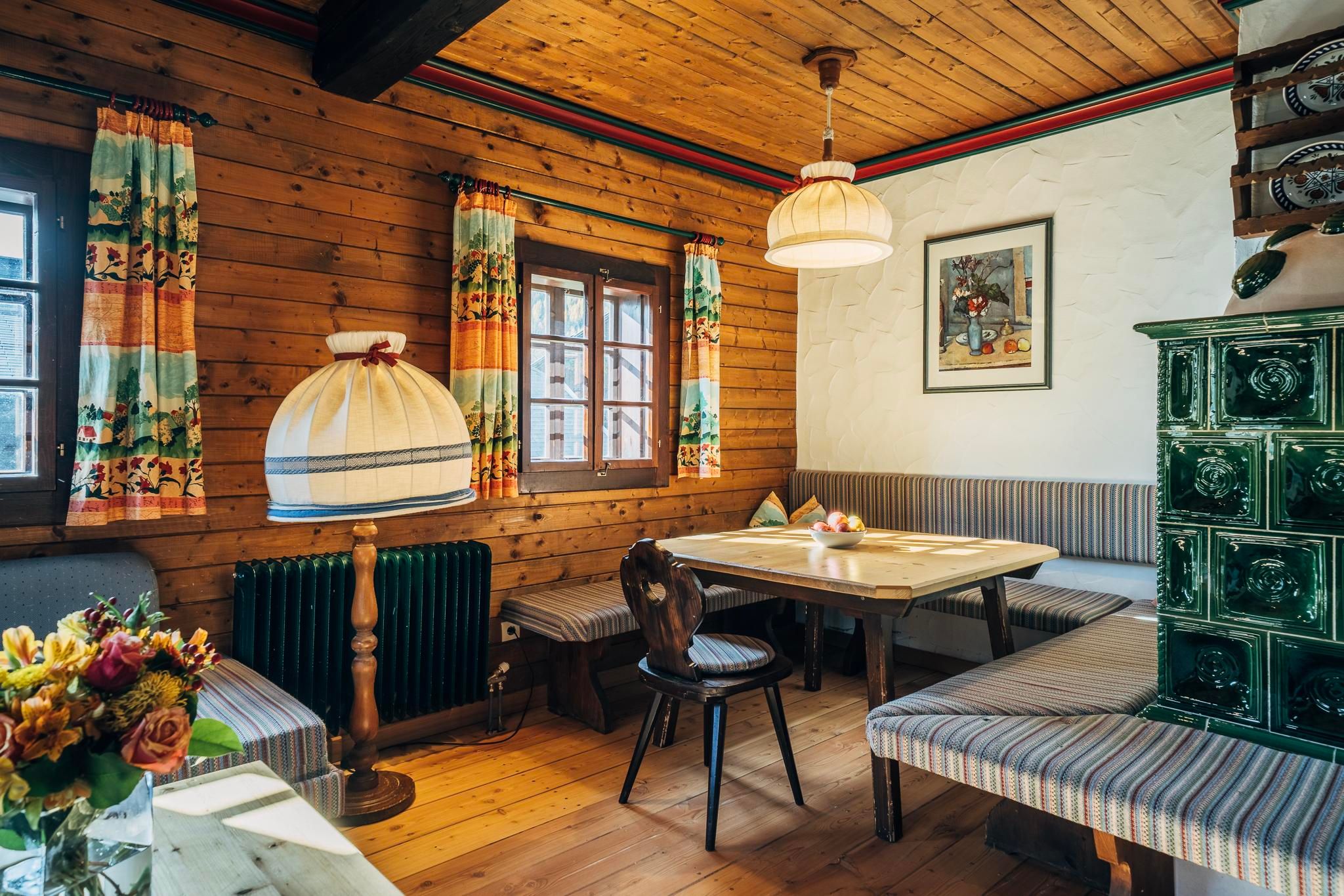 Vier individuelle Appartement-Typen in St. Oswald, liebevoll eingerichtet, mit Naturmaterialien, eigener Küche, viel Platz und dem Herzstück jedes Rückzugsortes: dem knisternden Kachelofen.