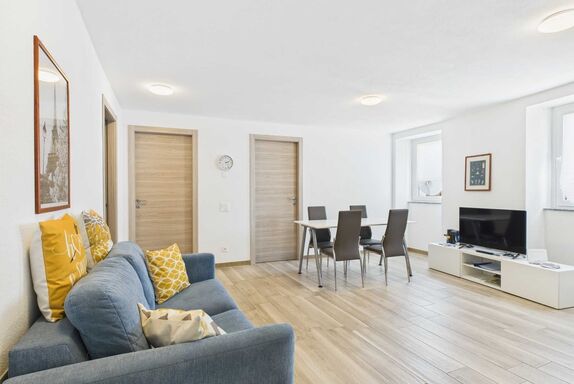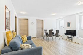 Vierbeiner mittlerer Größe sind willkommen, was diese Wohnung zu einer idealen Option für Familien und Gruppen macht, die ihre Haustiere nicht zu Hause lassen möchten. Obwohl die Wohnung nicht klimatisiert ist, sorgt die Fußbodenheizung für ein angenehmes Raumklima.