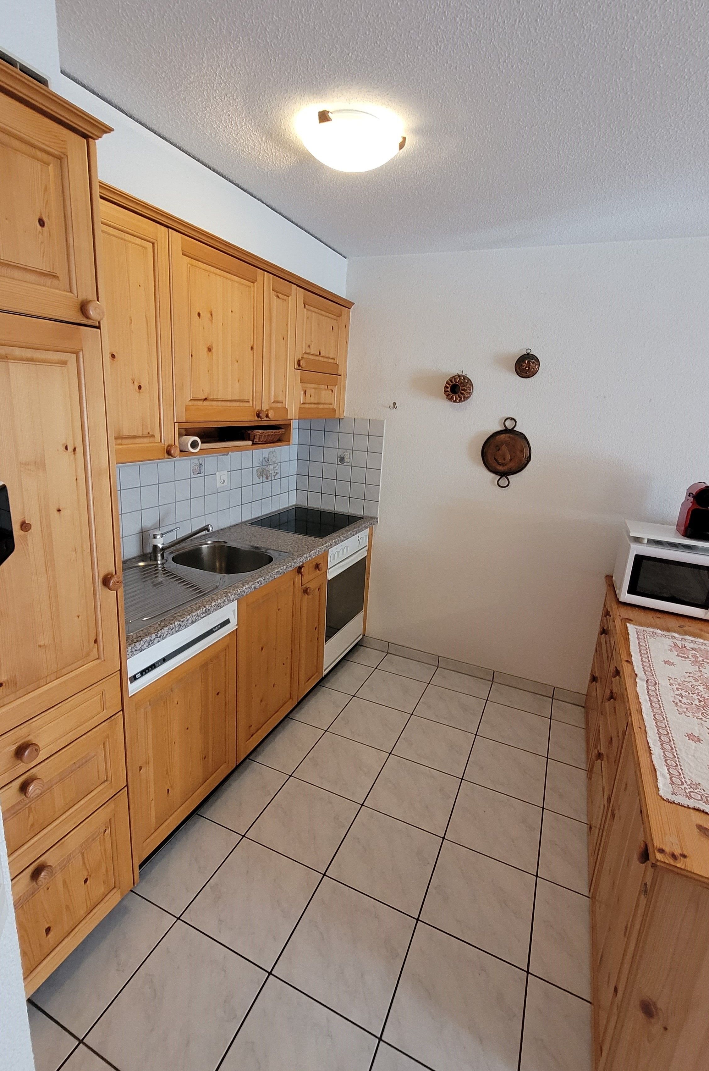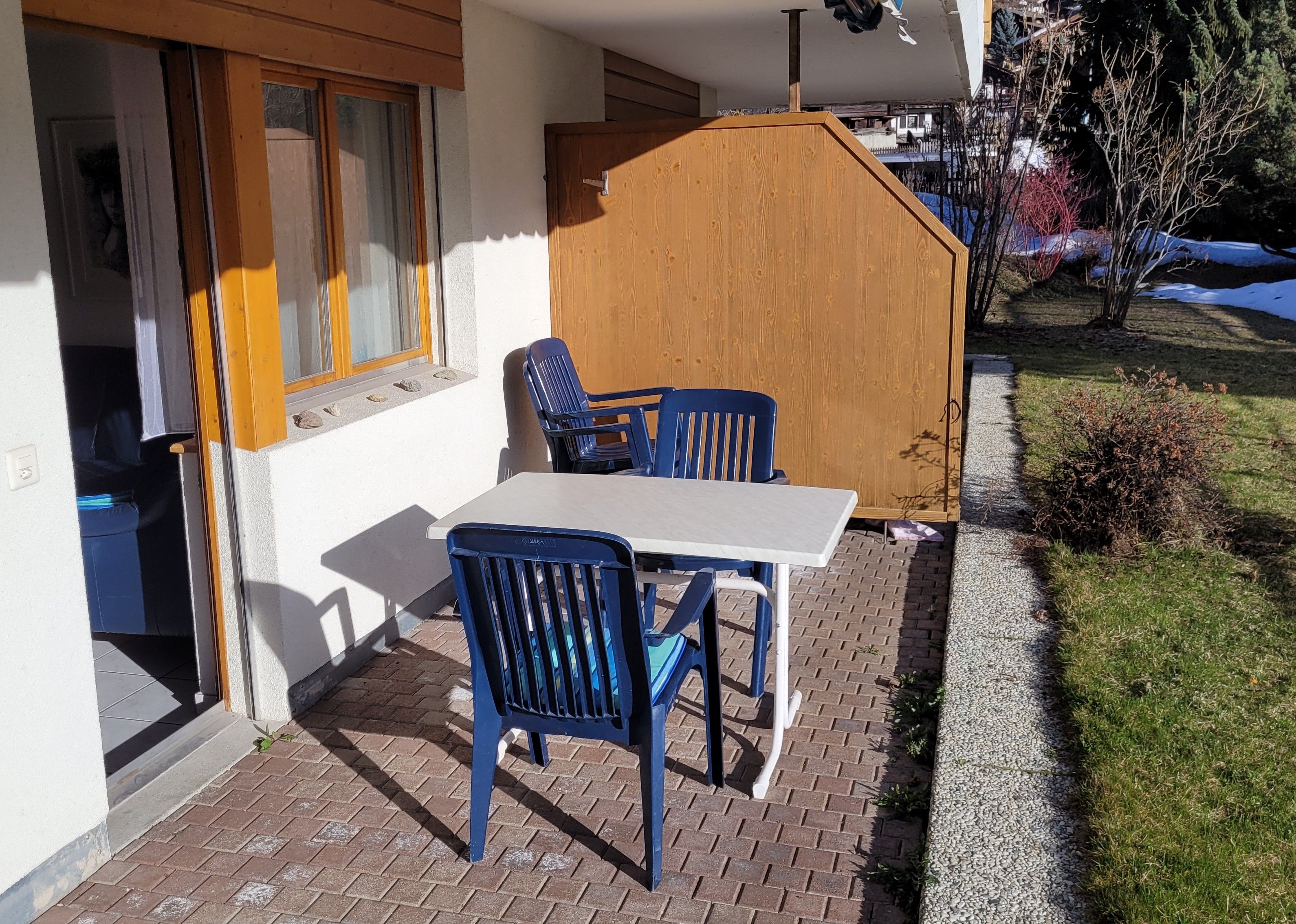 2-Zimmerwohnung in einem Mehrfamilienhaus in unmittelbarer Nähe von Einkaufsmöglichkeiten, Bergbahn und Restaurants. Die Wohnung liegt im Erdgeschoss und verfügt über 1 Schlafzimmer, 1 Wohnzimmer mit offener Küche, TV, 2 Schrankbetten, Dusche/WC. Gartensitzplatz/Süd, Einrichtung für gehobene Ansprüche. Nichtraucher-Wohnung (Rauchen auf Terrasse gestattet). Haustiere auf Anfrage beim Vermieter.