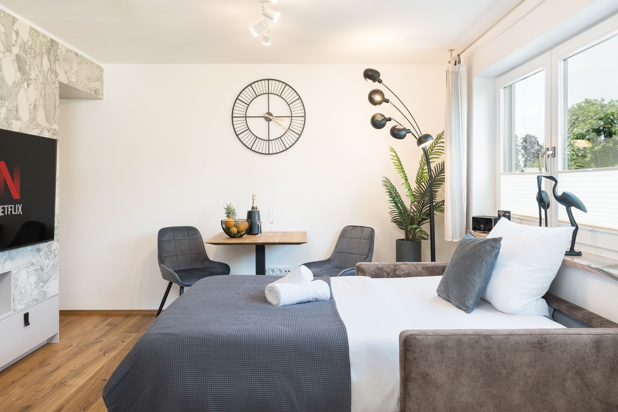 Unsere 31m² Wohnung wurde 2025 komplett neu renoviert und verfügt über alles, was Du für einen tollen Kurz- oder Langzeitaufenthalt brauchst: