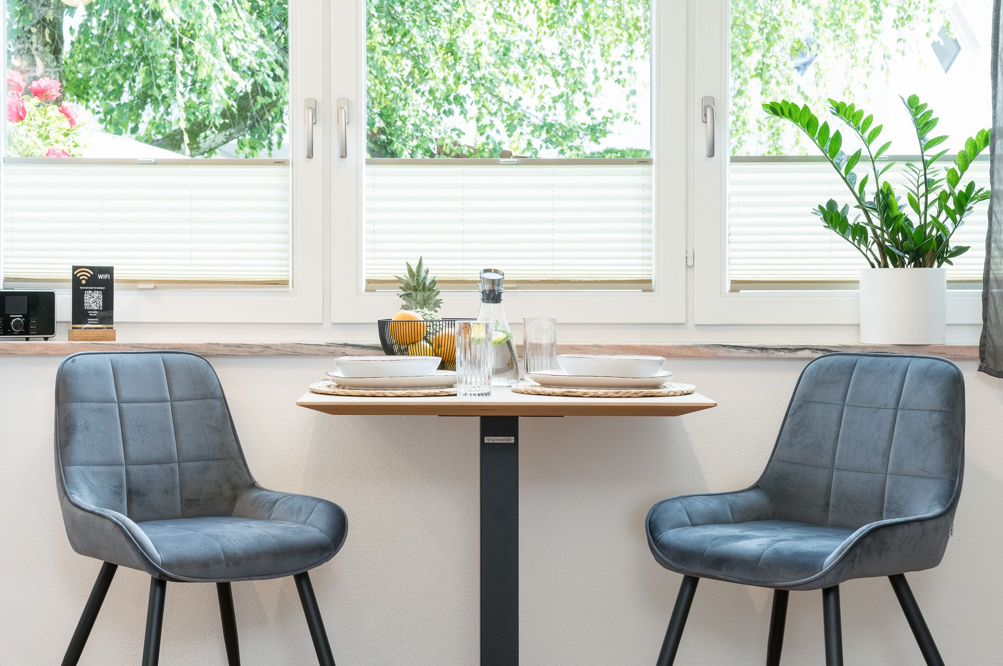 Darüber hinaus bietet die Wohnung einen Essbereich für bis zu drei Personen – perfekt für gemeinsame Mahlzeiten und gesellige Abende.