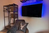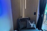 • Gemütliche Sitzecke mit Holzpaneelen & LED-Streifen
