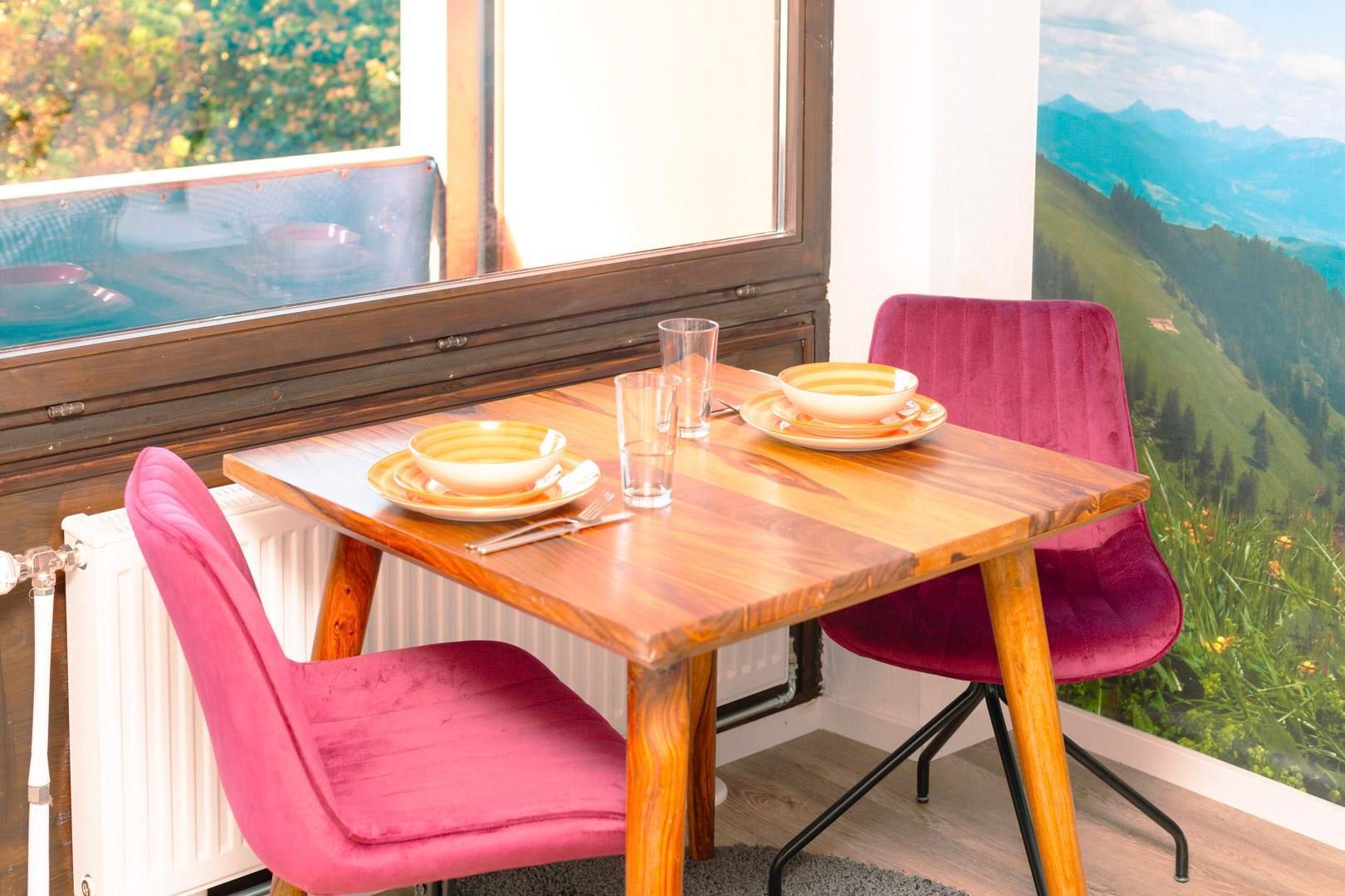 Das Appartement verfügt über ein kleines, aber modernes Badezimmer mit Dusche & Rainshower, ideal für erfrischende Momente nach einem Tag voller Abenteuer. Der überdachte Süd-Balkon lädt dazu ein, die frische Luft bei toller Aussicht auf den Imberg zu genießen und den Tag bei einem Glas Wein oder einer Tasse Kaffee auf den neuen Relax-Möbeln ausklingen zu lassen. Im Zimmer befindet sich ein komfortabler Essbereich für drei Personen sowie ein großer Smart-TV mit Ambilight und kostenloses WLAN, sodass Du Dich während des Aufenthalts bestens entertainen kannst. In der gemütlichen Sitzecke mit Holzpaneelen und LED-Streifen kannst Du prima ein Buch lesen oder den nächsten Ausflug planen. Die voll ausgestattete Küche lädt dazu ein, Deine Lieblingsgerichte zu zaubern und diese anschließend im Essbereich oder auf dem sonnigen Balkon zu genießen. Das Queensize-Bett verspricht erholsame Nächte, damit Du am nächsten Tag ausgeruht und bereit für neue Abenteuer und Genussmomente bist.