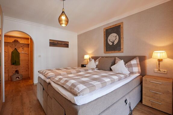Schlafzimmer mit elktr. verstellbaren Boxspringbett (1.80x2m), Dusche/WC mit Handtuchwärmer, Kosmetikspiegel und Haarfön
