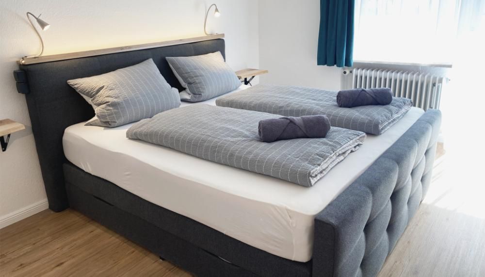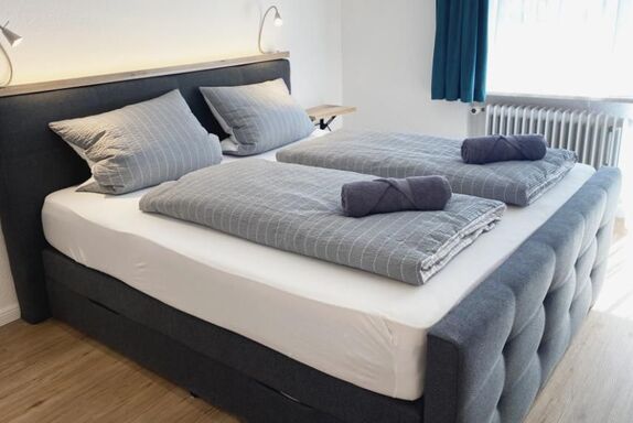 • 2 Schlafzimmer mit je einem bequemen Boxspringbett (Babybett auf Anfrage)