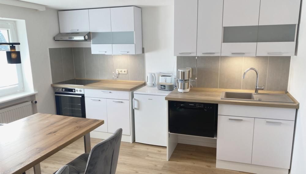 Die Ausstattung der Ferienwohnung beinhaltet: TV, Fön, Tischspülmaschine, Kühlschrank mit Gefrierfach, Backofen, Cerankochfeld, Kaffeemaschine, Wasserkocher, Toaster, Kinderhochstuhl.
