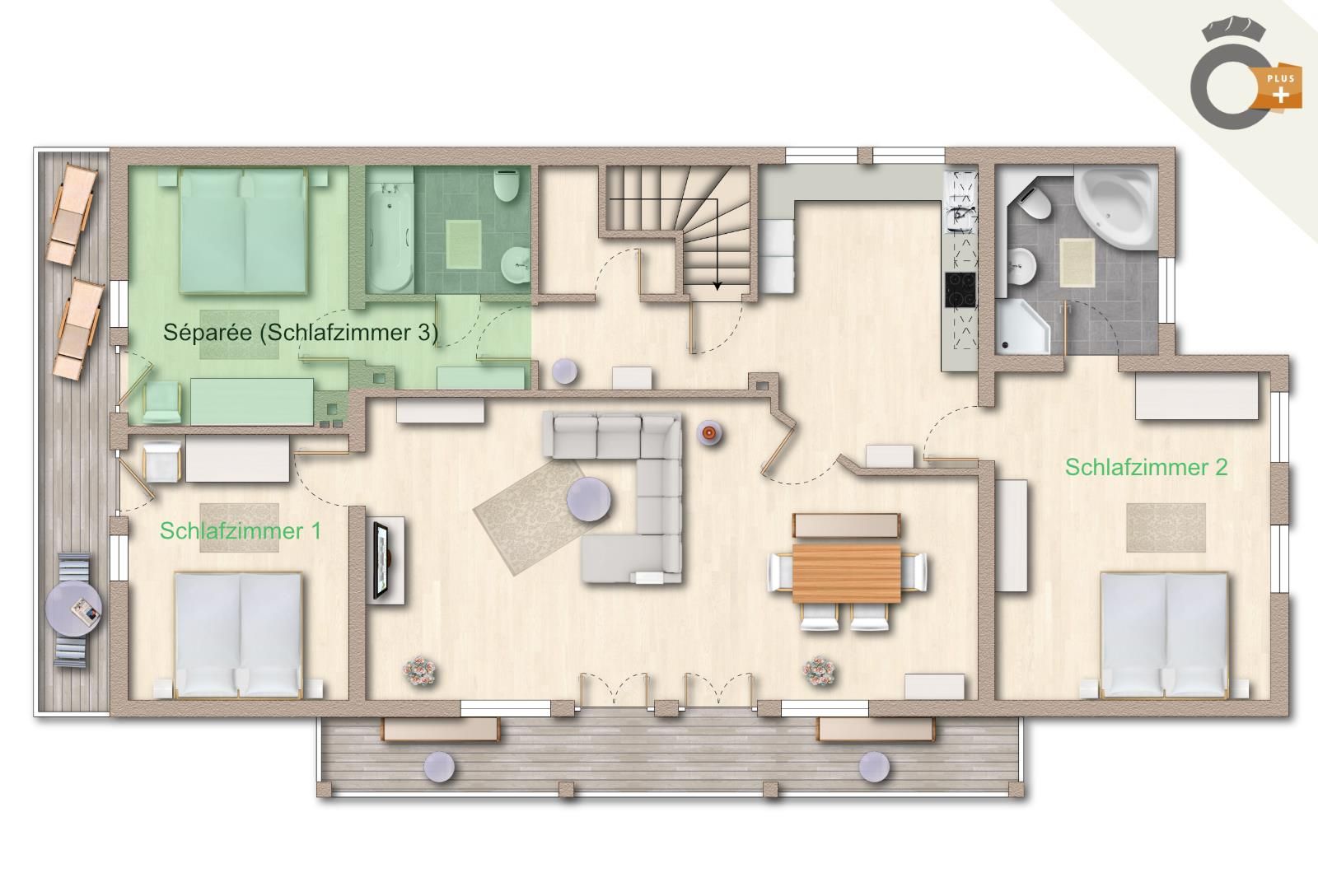 Sie bietet ausreichend Platz für 4 Personen. Eine Überbelegung mit einer weiteren Person ist auf Anfrage möglich.