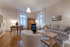Das Deluxe Apartment Sandy Sigmund liegt im Hochparterre und bietet Ihnen auf 100m2 zwei Schlafzimmer (1x Doppelbett, 1x mit Stockbett), ein großes Wohnzimmer mit Doppelschlafcouch, eine große Wohnküche mit Pelletofen, sowie Zugang zum Wintergarten. Dazu ein Badezimmer mit Badewanne, Fußbodenheizung sowie Waschmaschine und Trockner. Separat die Toilette. Edle Parkettböden, gemütliche Sofas und Lesesessel, Flachbildschirm mit SAT-Anschluss und DVD-Player, sowie eine Auswahl von Filmklassikern für verregnete Abende. Die Komplettküche bietet alles was das Herz begehrt.