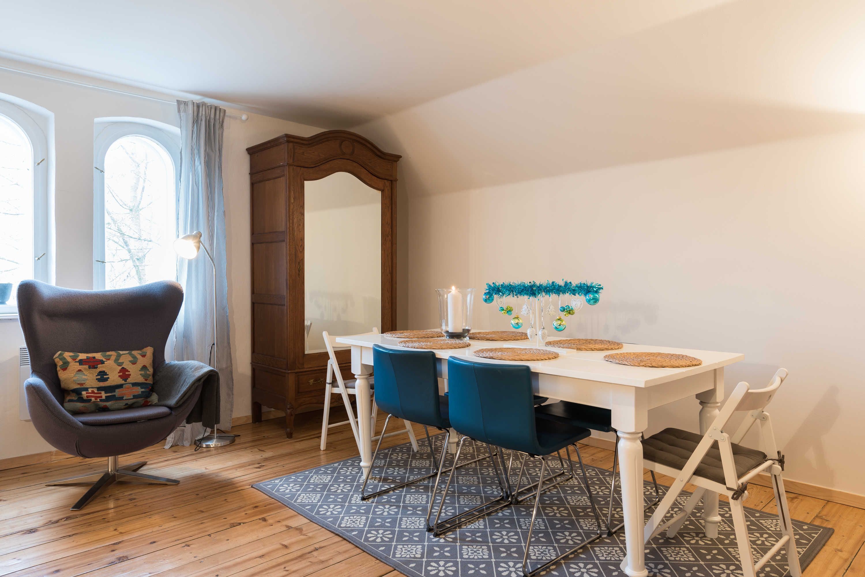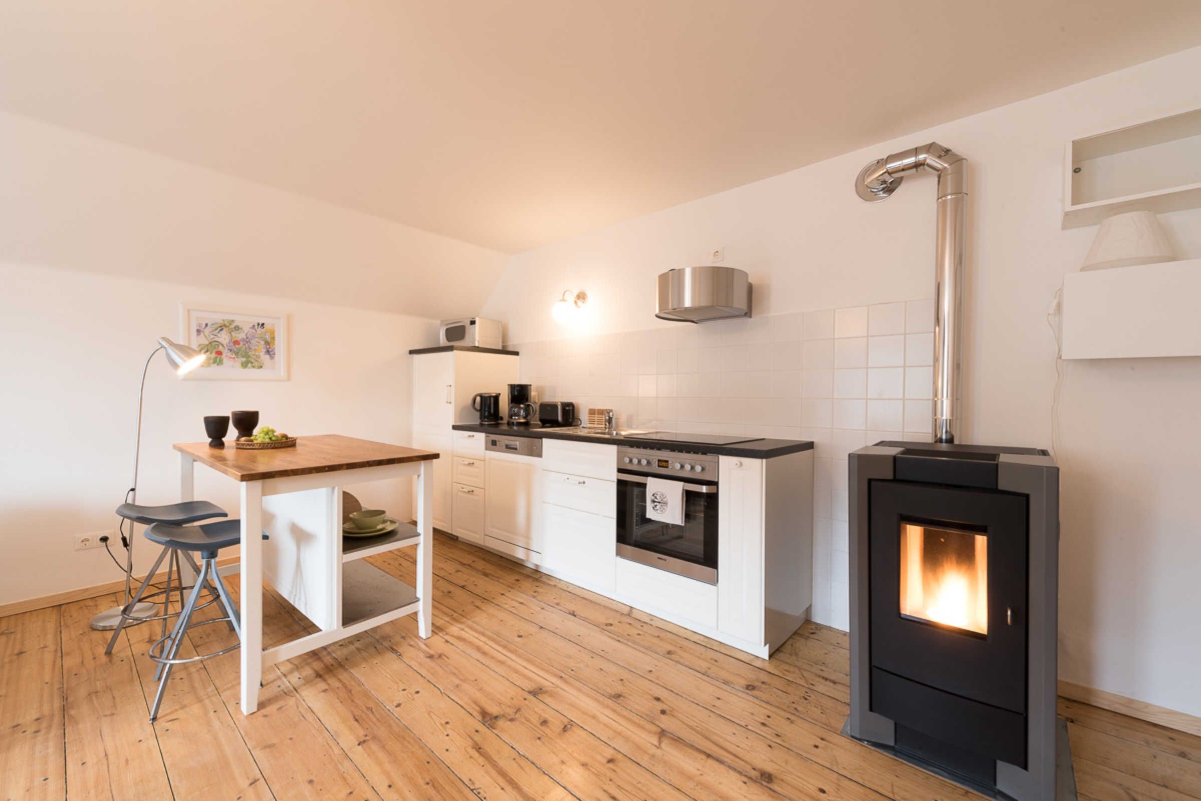 Ein gemütlich-gediegener Landhausstil zieht sich durch alle Apartments, mit Möbeln aus 3 Jahrhunderten. Alle Apartments sind nicht nur teppichbodenfrei, man bewegt sich überwiegend auf 120 Jahre alten Dielen. Dazu alle komfortablen Errungenschaften von heute: gemütliche Badewannen für Zwei (nicht in allen Apartments), Fußbodenheizung im Bad, durchgehend gratis WLAN, Ultraflachbildschirme mit SAT Anschluss (viele davon digital und damit streaming-fähig), DVD Player und eine Auswahl an DVDs etc. Pelletöfen in jeder Wohnung sorgen für gemütliche Wärme und Feuerschein auf Knopfdruck, auch wenn es jenseits des Winters einmal etwas kühler wird.