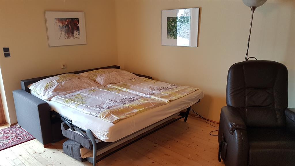 Auf der Sonnenseite des Tales auf einer kleinen Anhöhe liegt unser Haus du hast hier einen offenen Blick über den See und auf die Berge. Wir bieten dir eine große geräumige Wohnung mit eigener Küche einem Wohn- Schlafzimmer und einem Schlafzimmer. Bad und WC sind extra Räume. An der Seeseite kannst du gemütlich auf der Terrasse sitzen. Ein Internetanschluß steht dir kostenlos zur Verfügung. Für deinen PKW hast du vor dem Haus einen grosszügigen Abstellplatz.