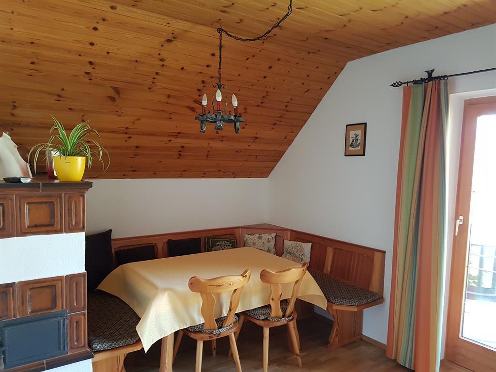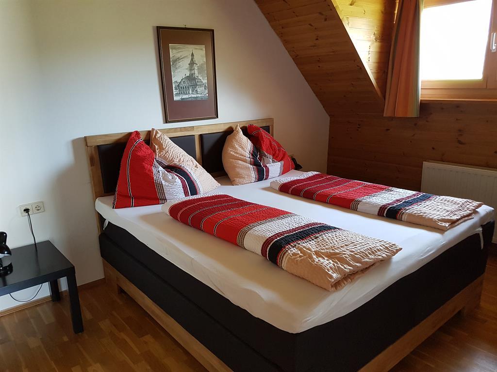 Dachgeschoss-Wohnung für 2-4 Personen, eigener Stiegenaufgang, 2 getrennte Schlafzimmer, Vorraum mit Garderobe, Wohnbereich mit Küchenzeile, Geschirrspüler, Bad, WC, Balkon, Terrassenmitbenützung freies WLAN