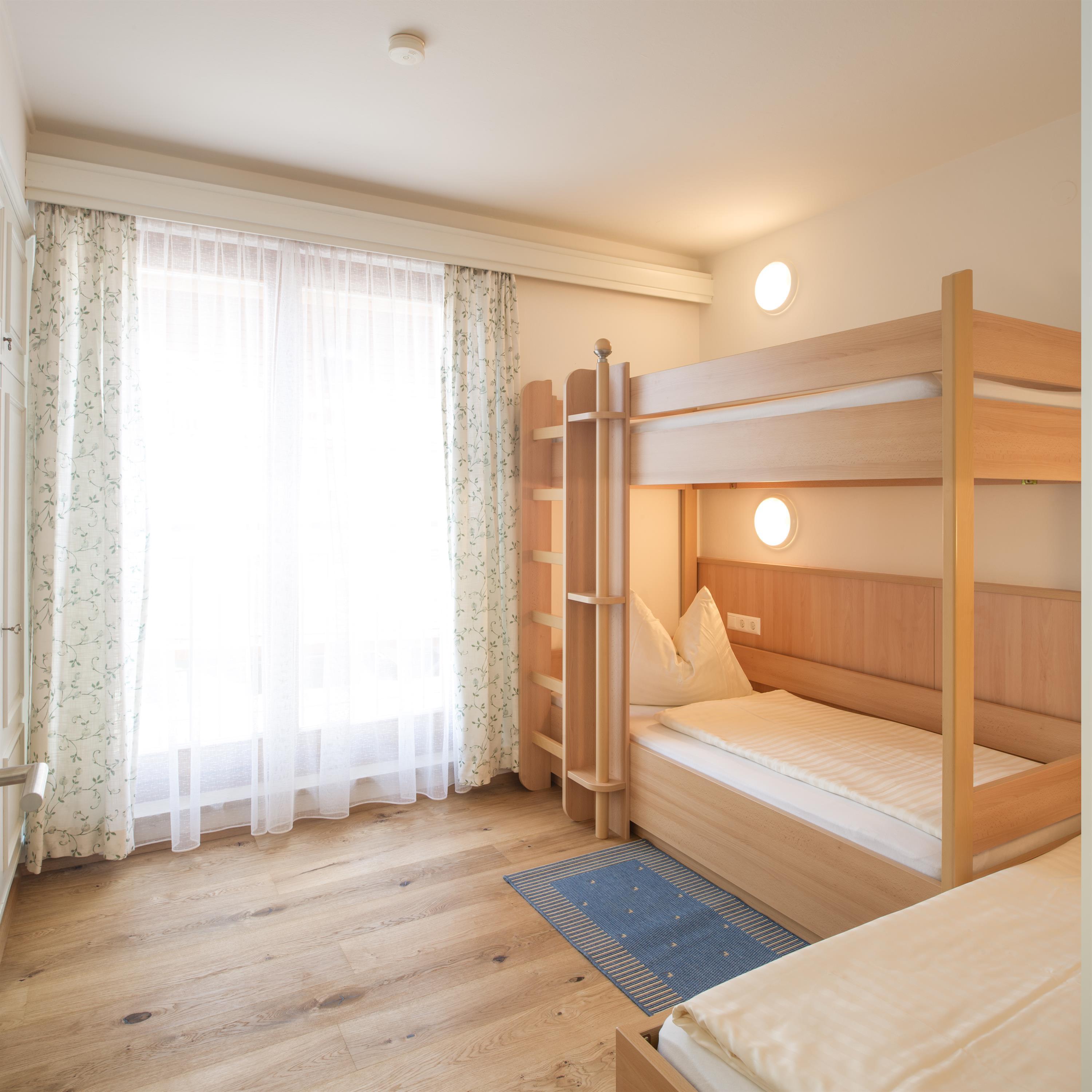 • (1 Doppelbett und 2 Einzelbetten) oder (1 Doppelbett,1 Stockbett und 1 Einzelbett)
