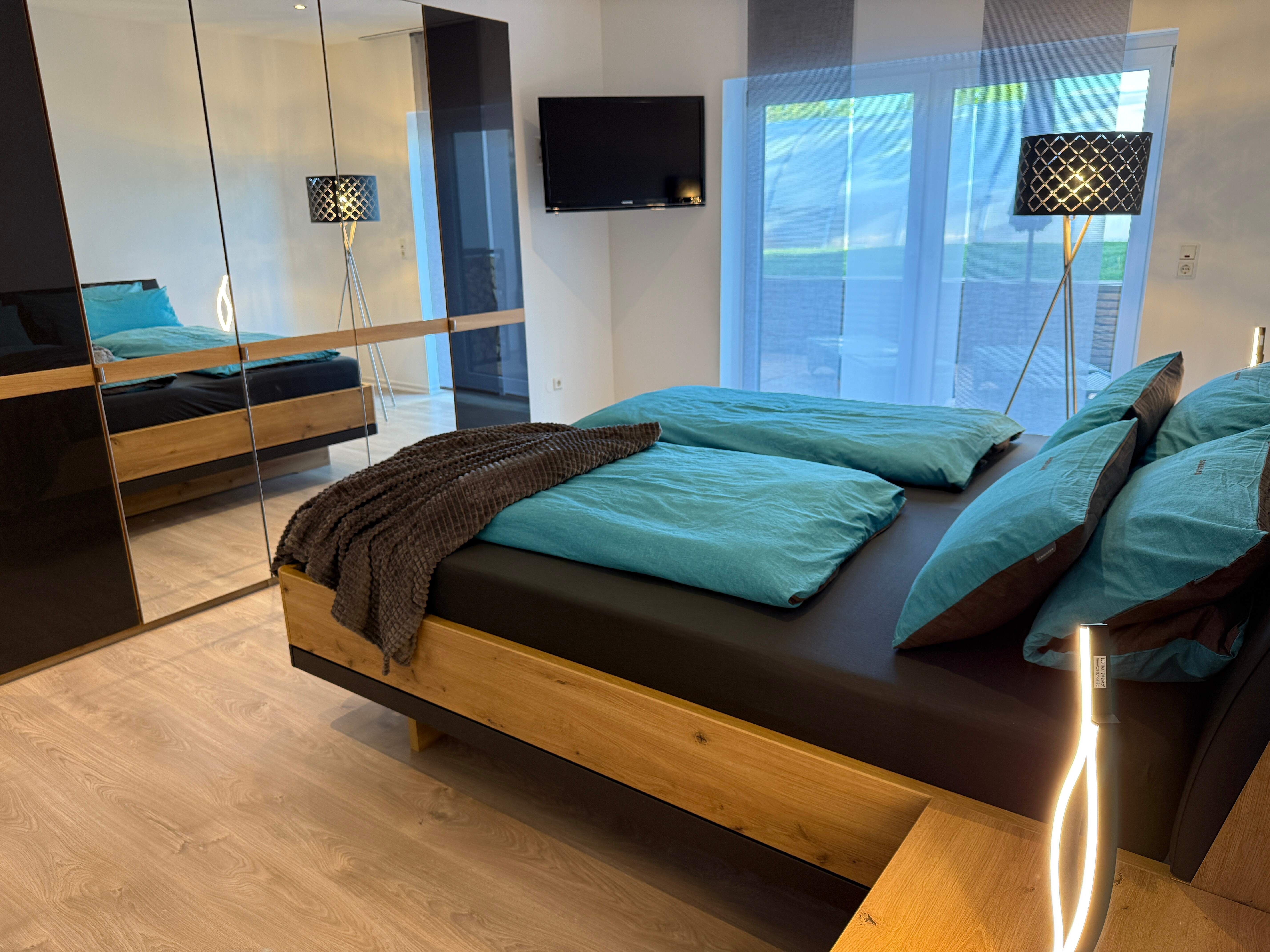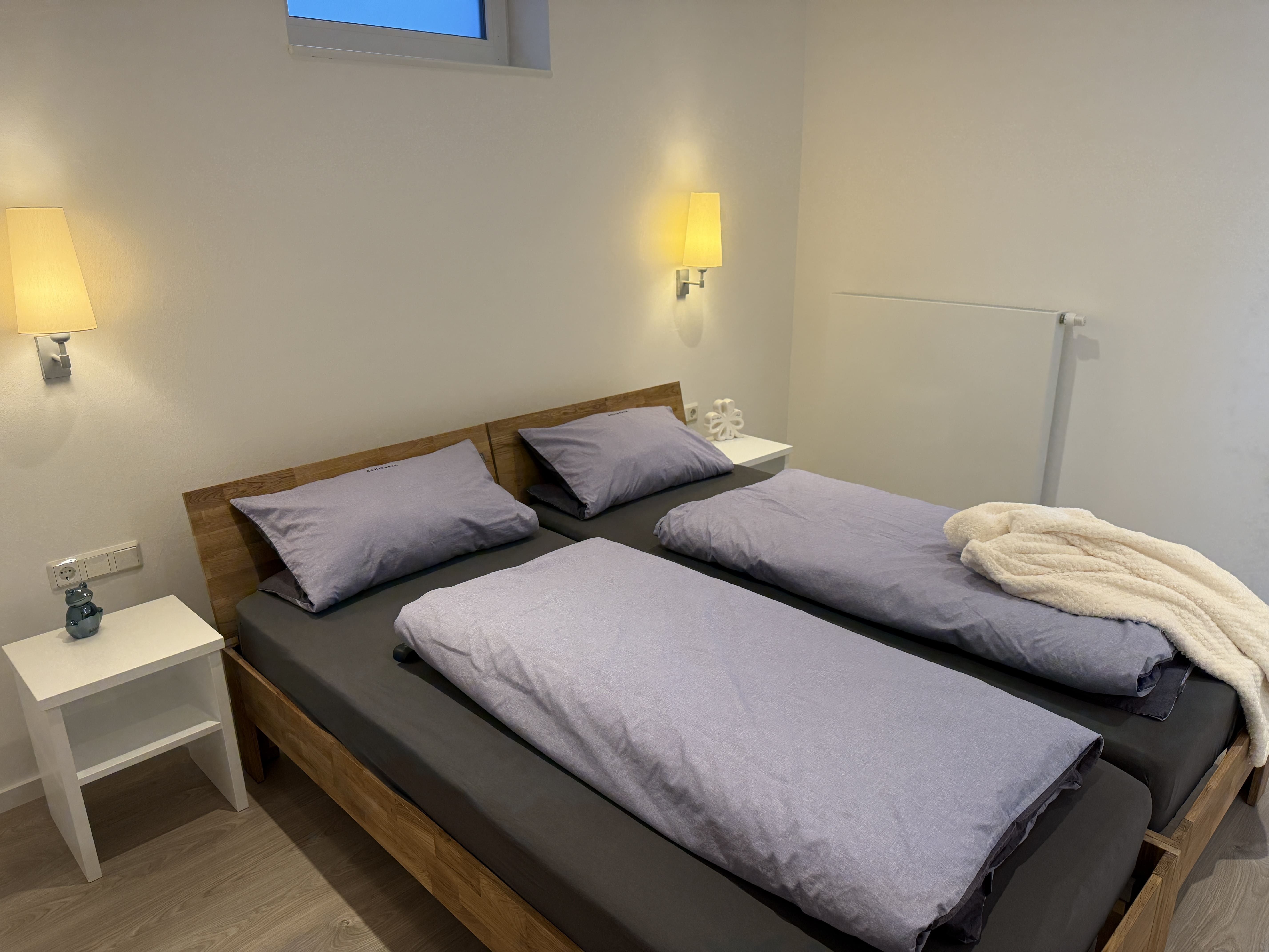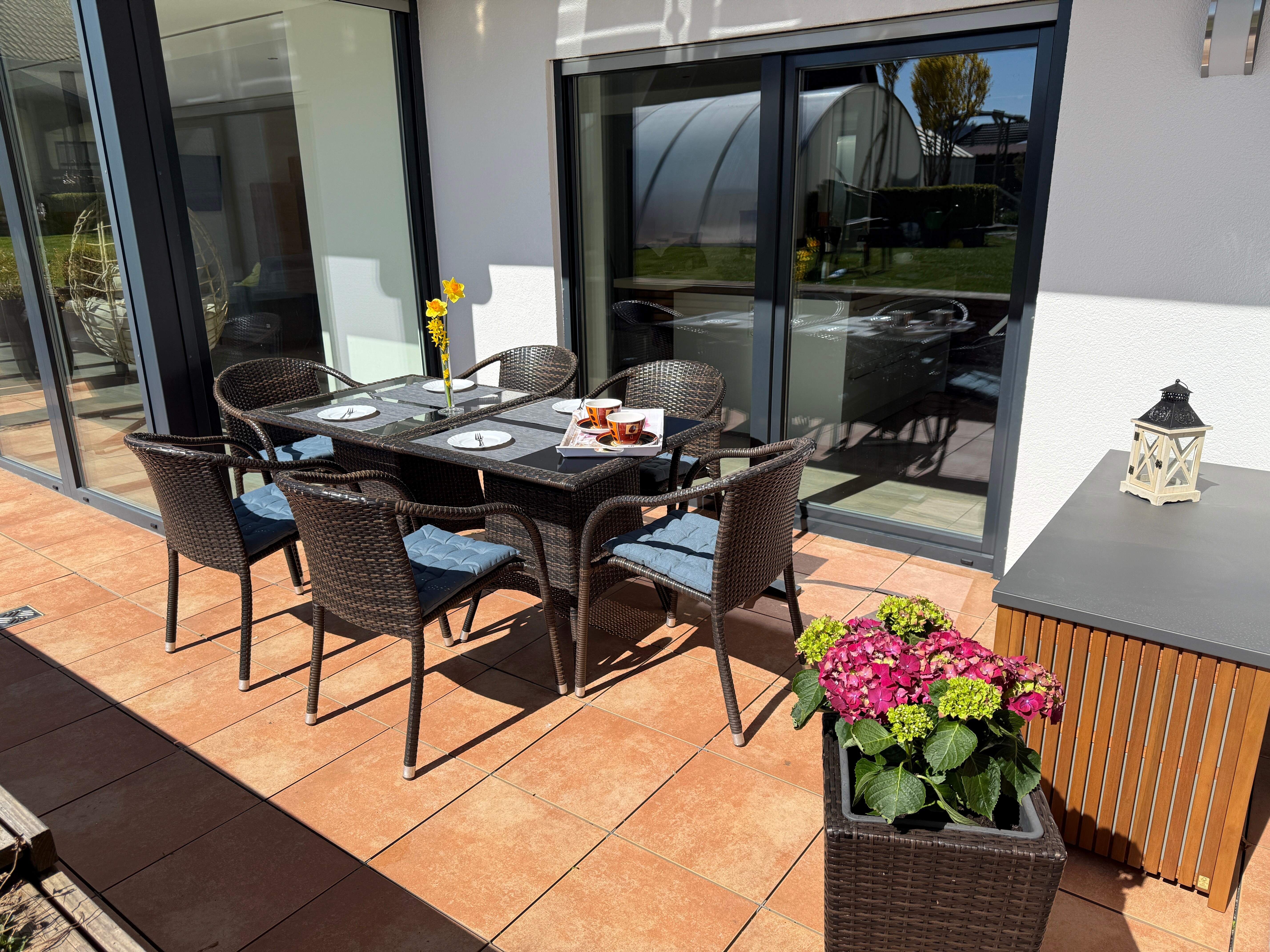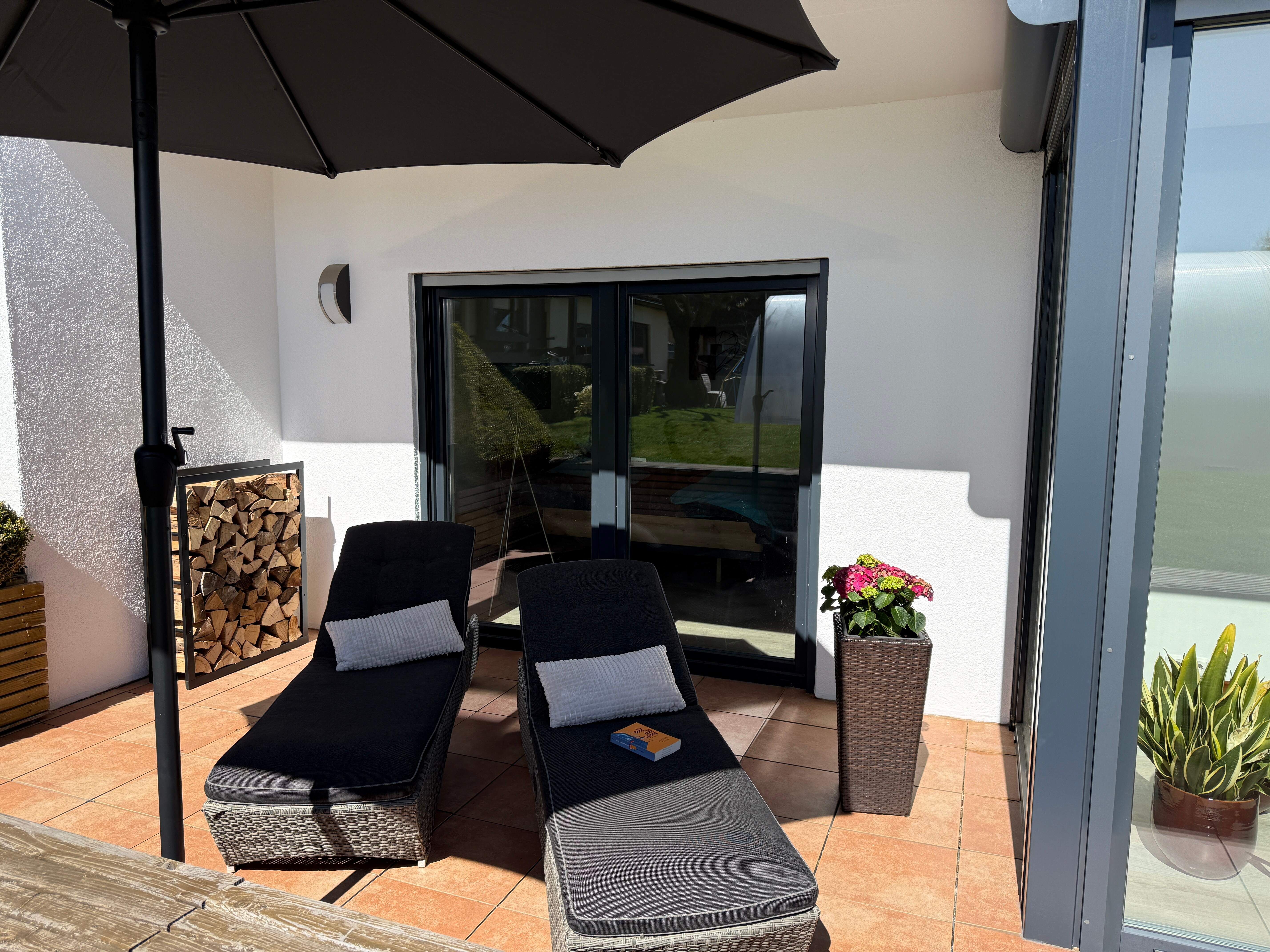 Das RhönLoft bietet zwei gemütliche Schlafzimmer mit je einem Doppelbett, die für eine erholsame Nacht sorgen. Eines der beiden Schlafzimmer bietet die Möglichkeit, die Betten getrennt zu stellen. Die große Terrasse lädt zum Verweilen ein und bietet Sitzmöglichkeiten, einen Gasgrill sowie Sonnenliegen für entspannte Stunden im Freien. Wir möchten Sie darauf hinweisen, dass der angrenzende Garten für unsere Gäste nicht zur Verfügung steht.