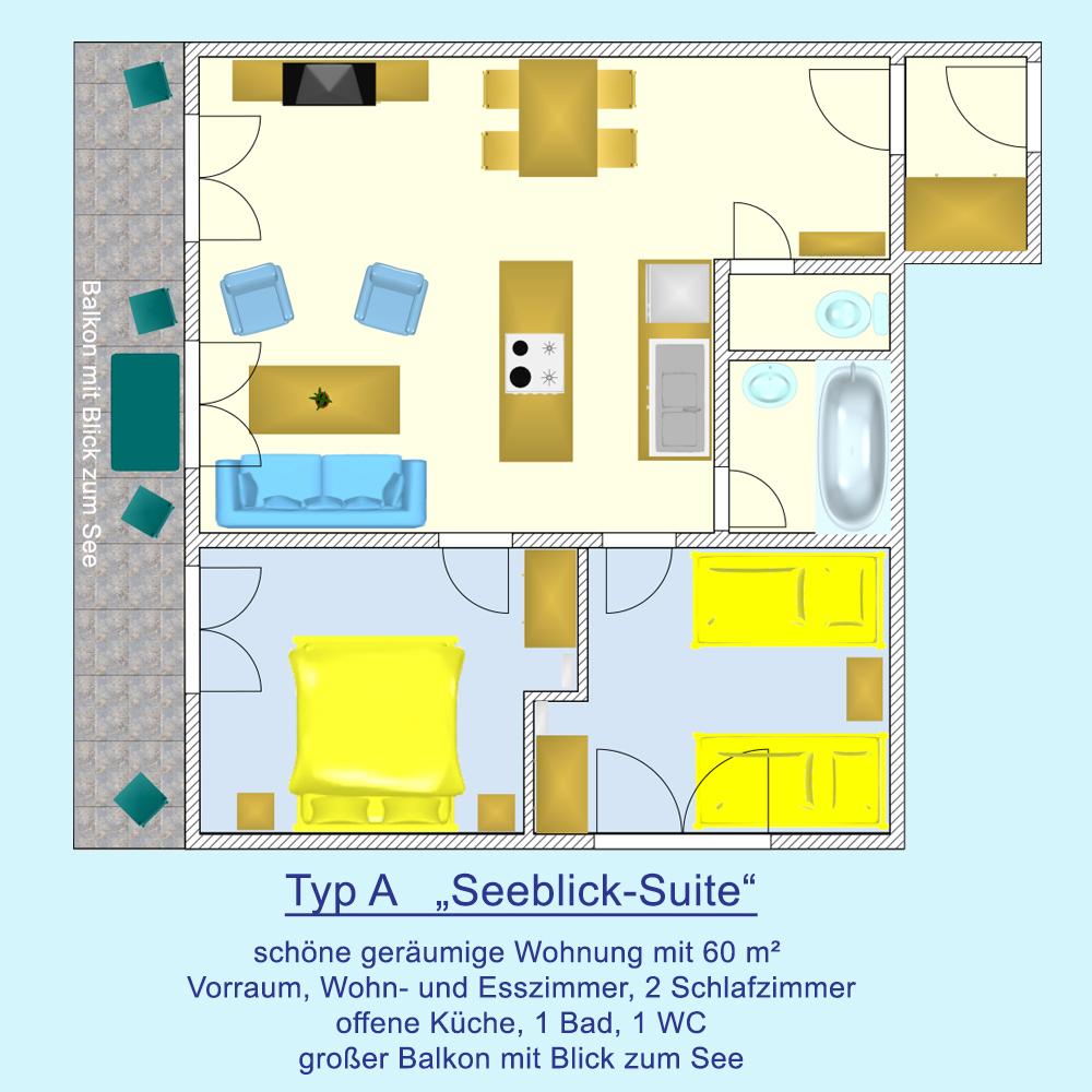 Große, komfortable Ferienwohnung (60 m²) mit großem Balkon und Seeblick.